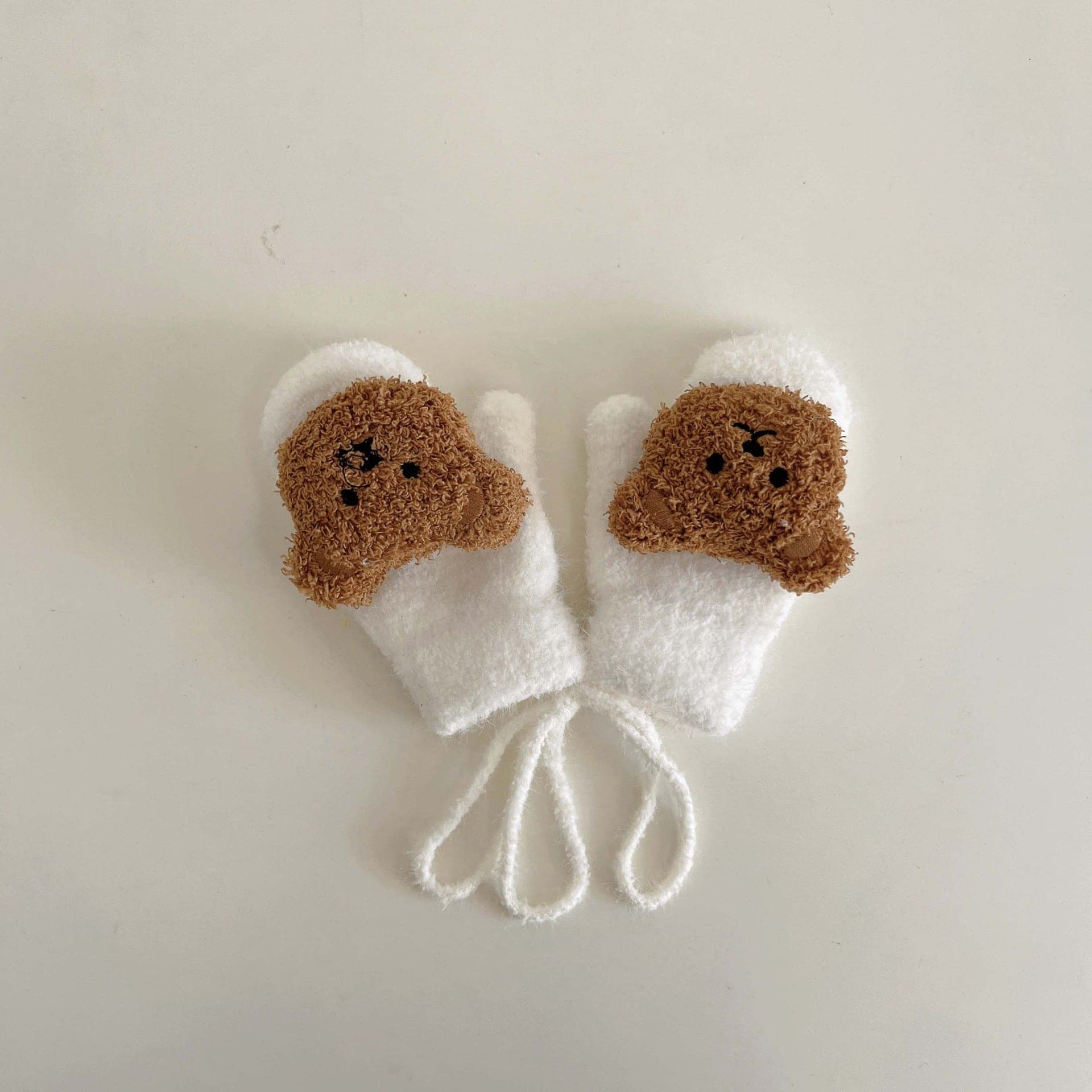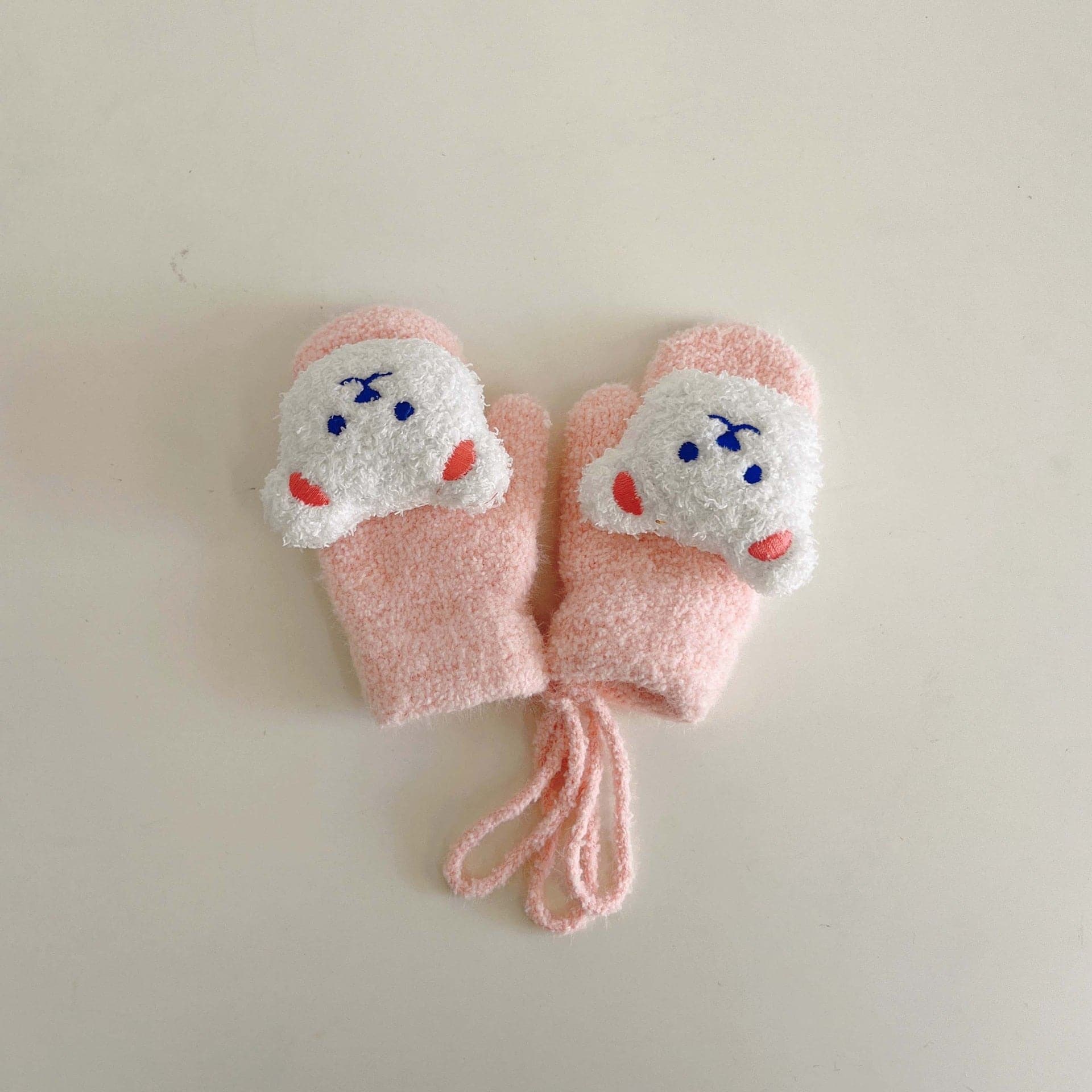 1-4Y Cartoon Bear Baby Mittens Winter Warm Kids Baby Girl Gloves Knitted Children Toddler Thick Teething Mitten Handschoen