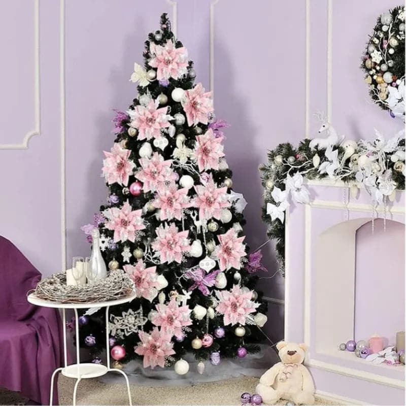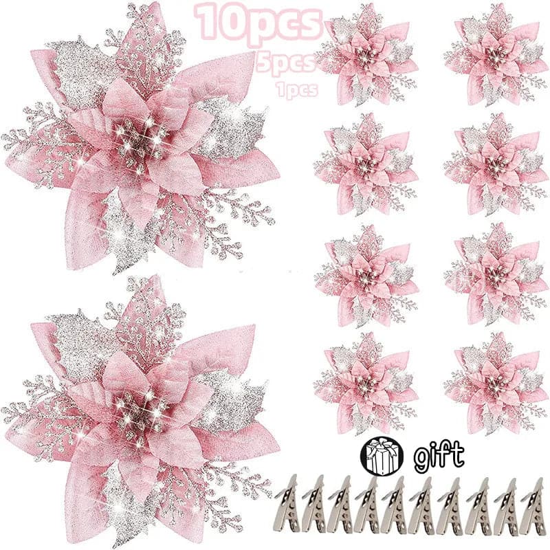 10/5/1pcs 14.5cm Glitter Artifical Christmas Flowers Christmas Tree Decoration Happy New Year Ornaments Xmas Fake Flowers natal