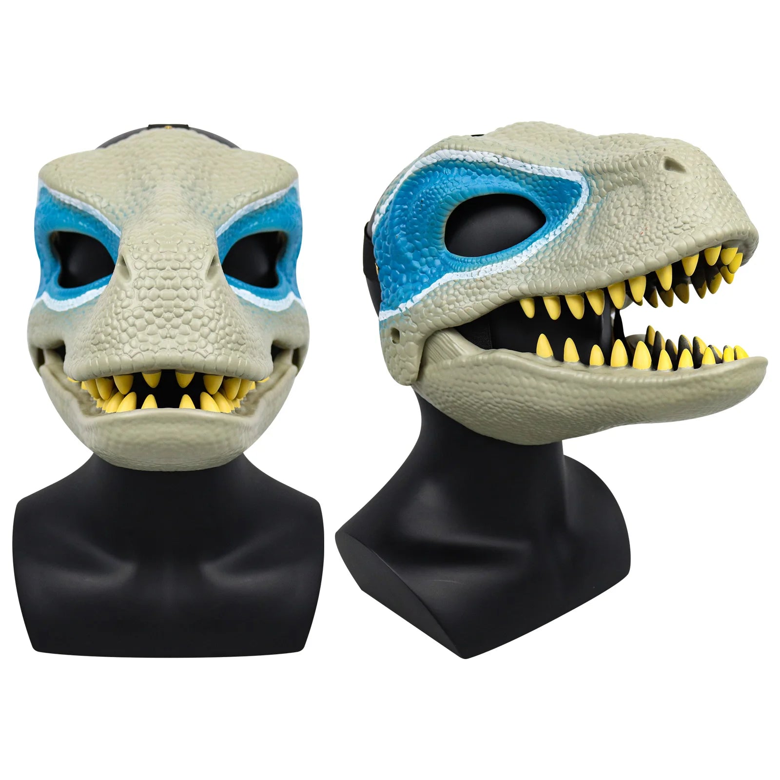 3D Dinosaur Mask Lifelike Raptor Dino Moving Jaw Dinosaur Mask High Quality PVC Headwear Halloween Children Toy Carnival Gift