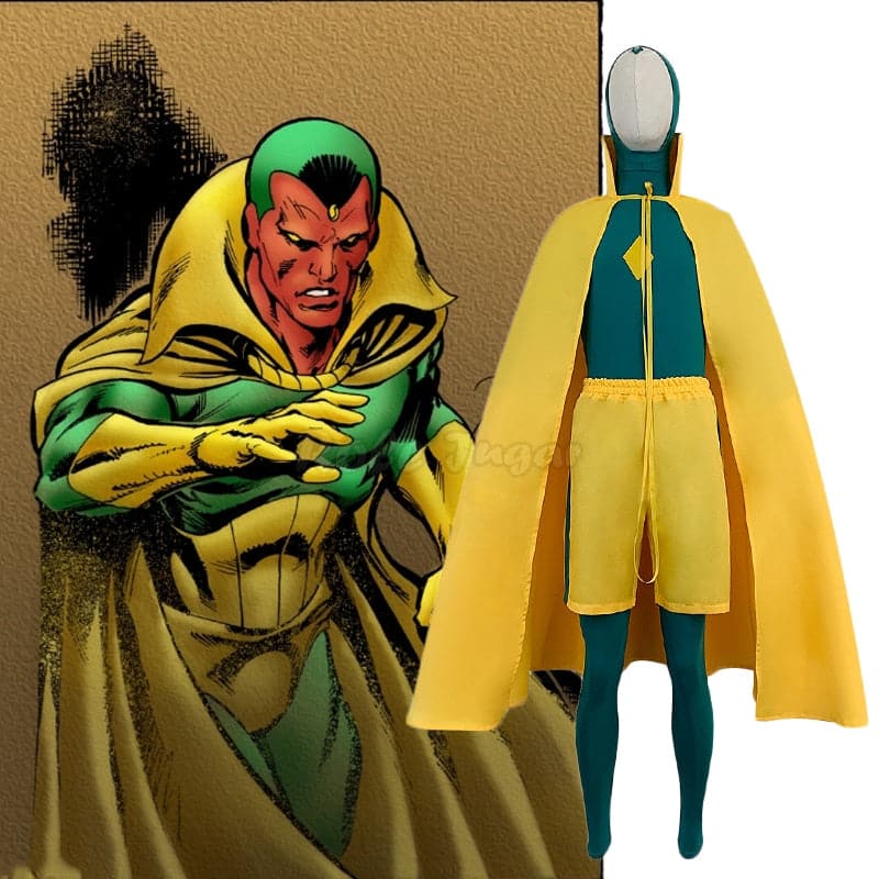 4pcs Movie Wanda Vision Cosplay Costume Superhero Vision Jumpsuit + Cloak + Shorts Sets Halloween Carnival Party Men Costumes