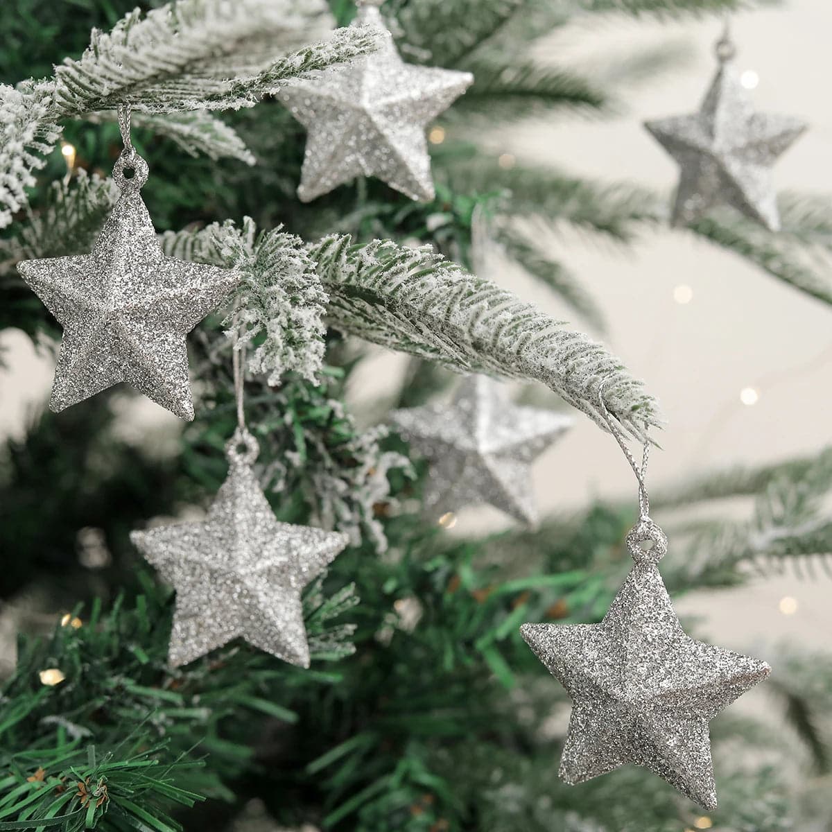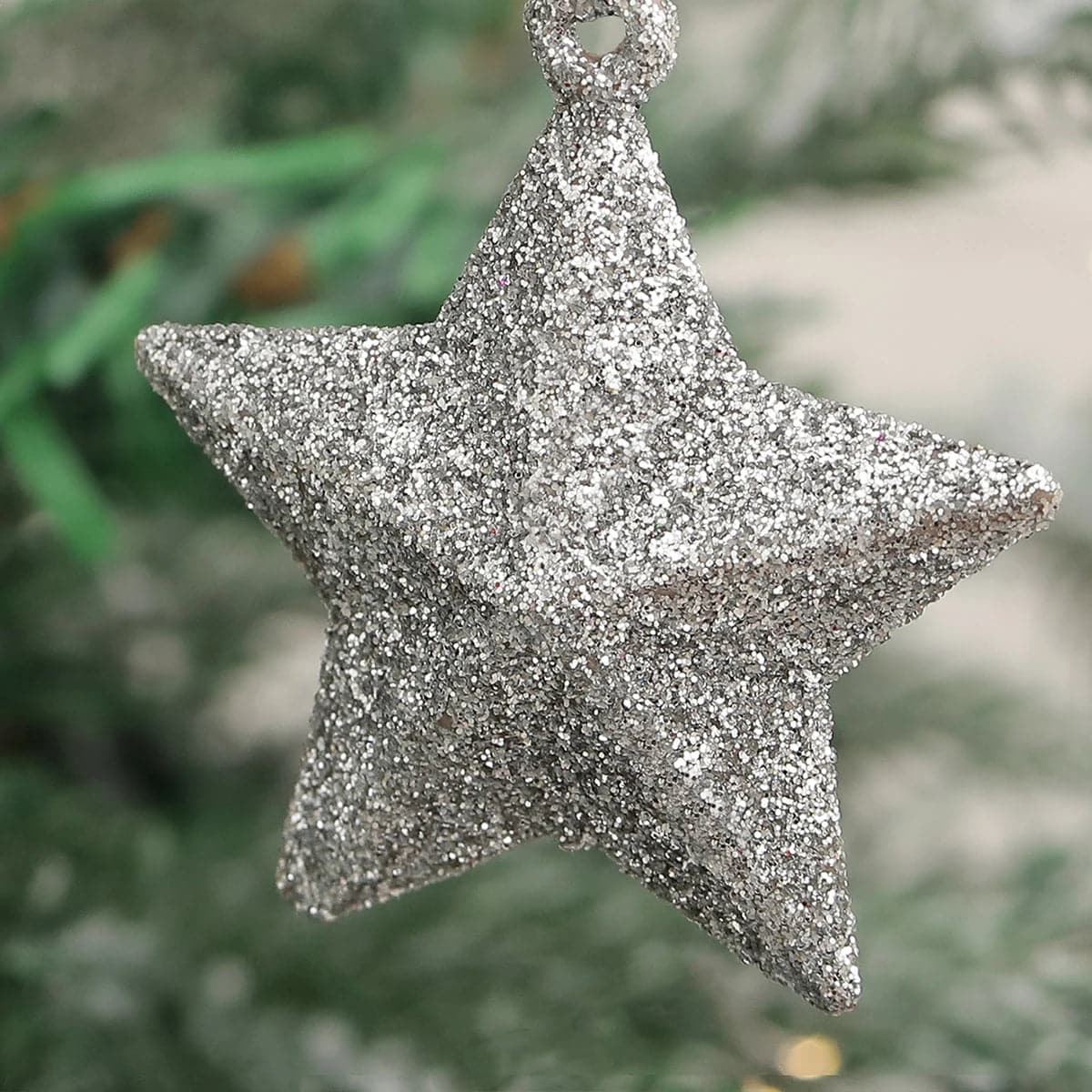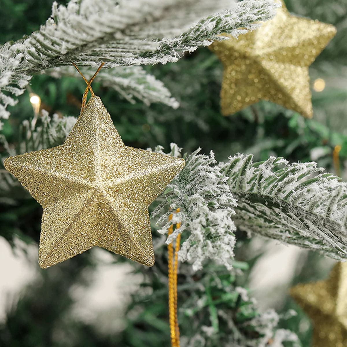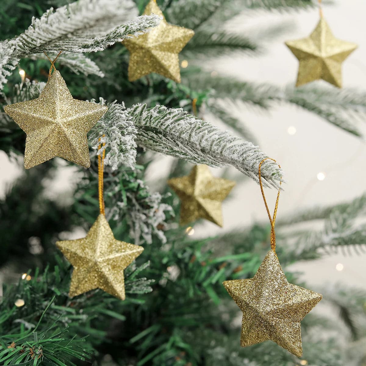 6pcs Decorative arrangement of Christmas tree trumpet glitter five-pointed star pendant