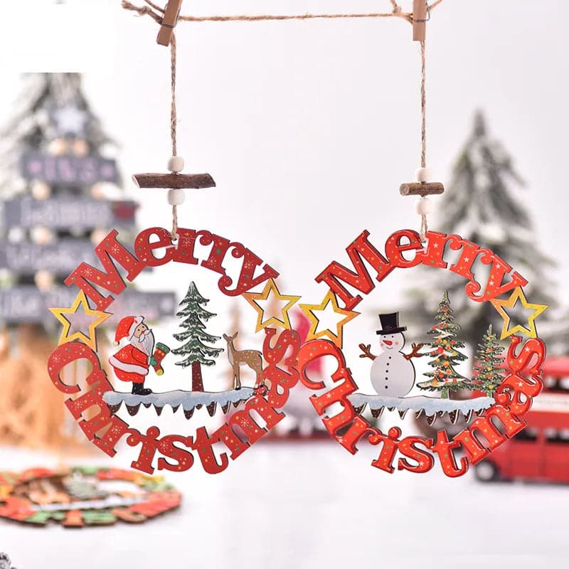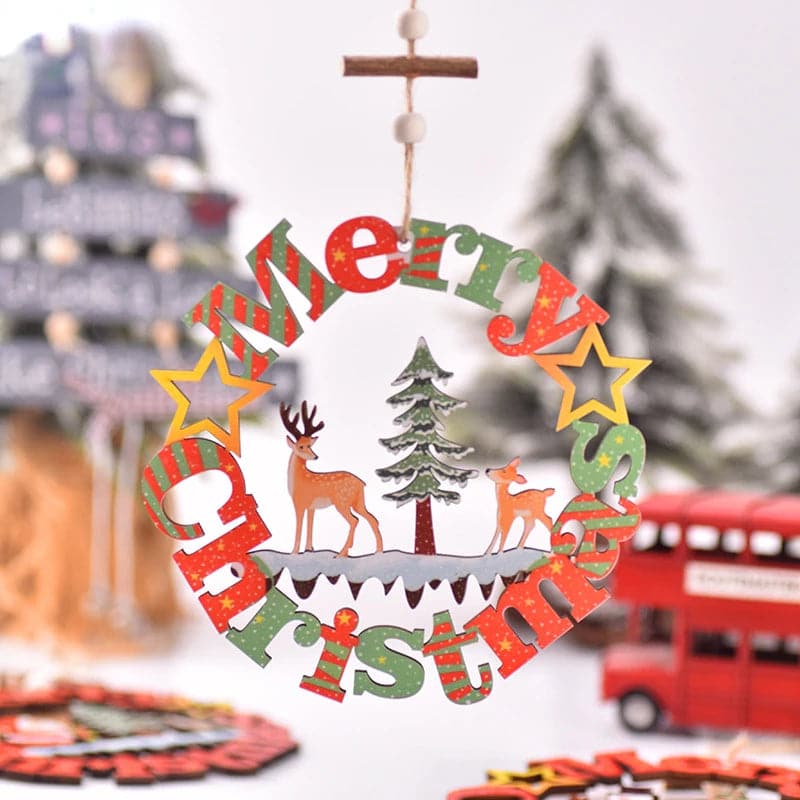 Christmas decorations Wooden pendants Christmas hollowed-out letters hanging decorations Christmas decorations elf on the shelf
