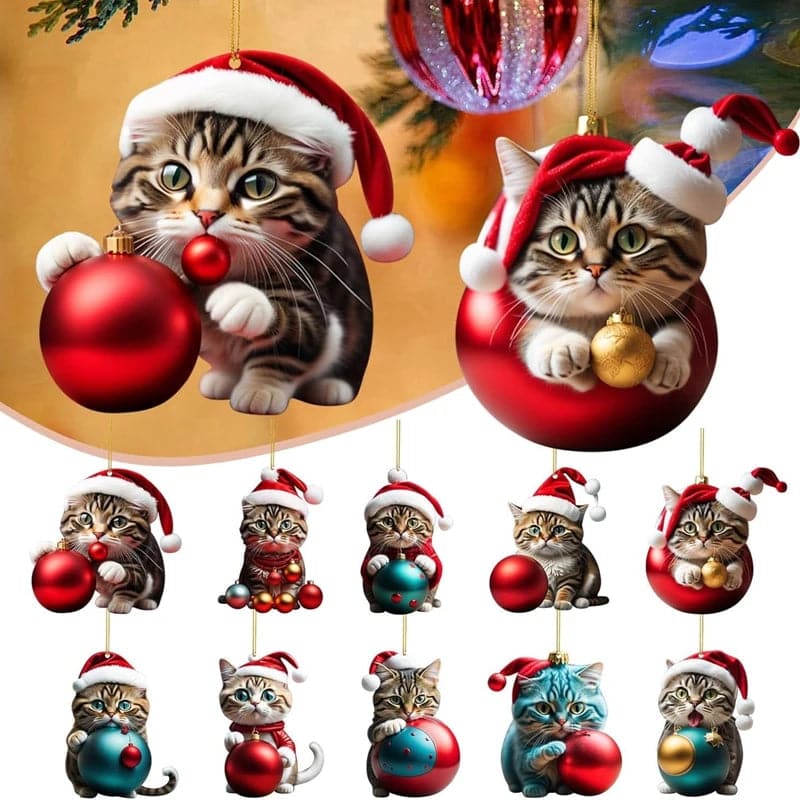 Christmas Tree Cat Pendant 2D Acrylic Christmas Cat Hanging Decoration Funny Christmas Cat Ornaments Party Decor Props