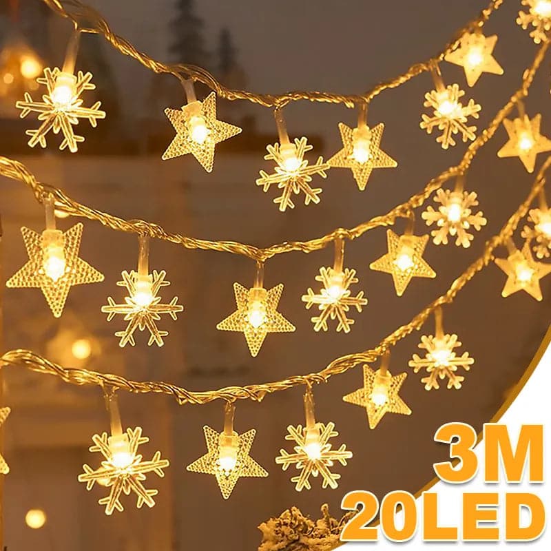 Christmas Tree Snowflake LED String Lights Xmas Tree Decor Fairy Lighting Strings Pendant Ornaments For Home Party New Year 2024