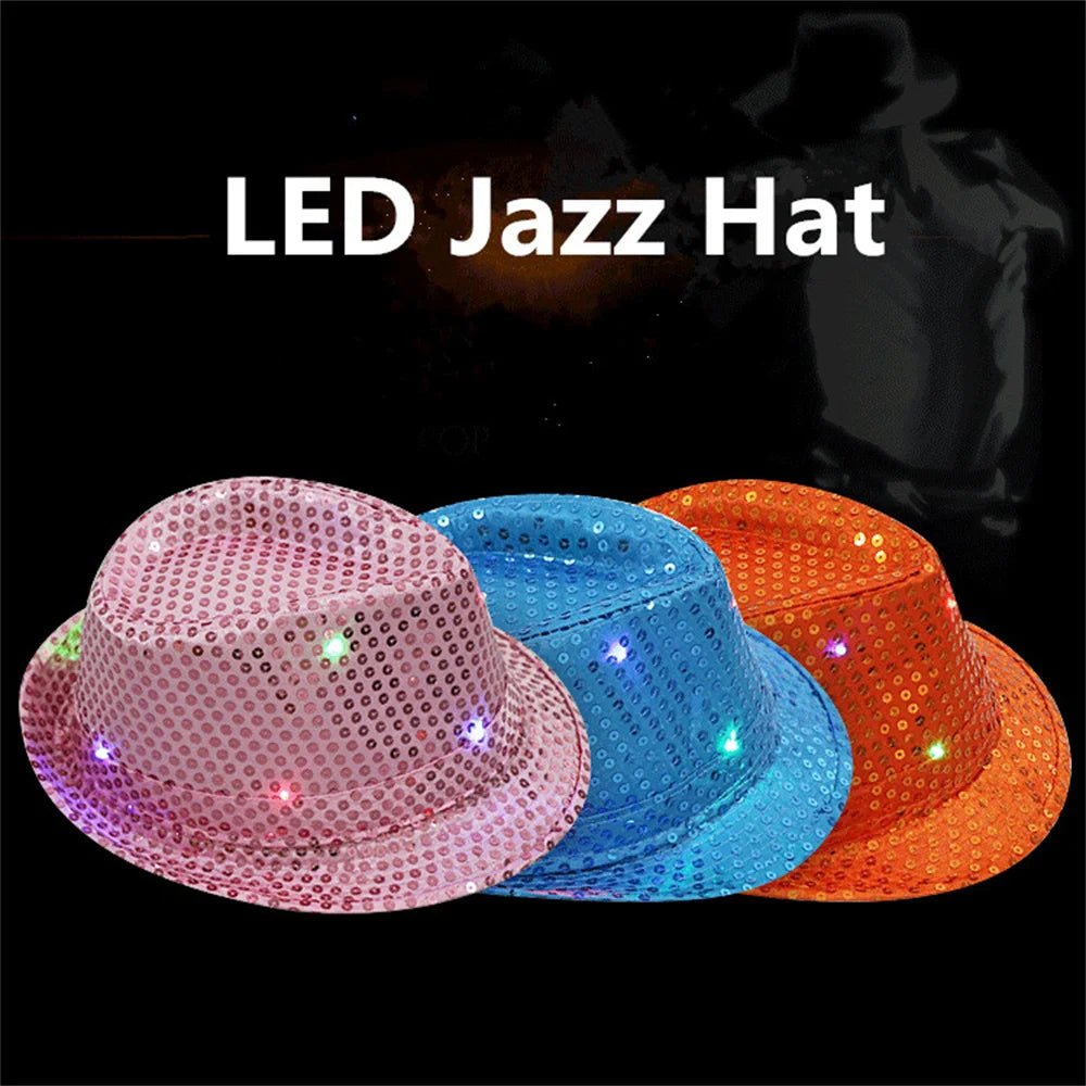 Creative Led Luminous Jazz Hat Party Carnival Light Up Sequin Hat Adult Glitter Festival Dress Up Cap For Men Women