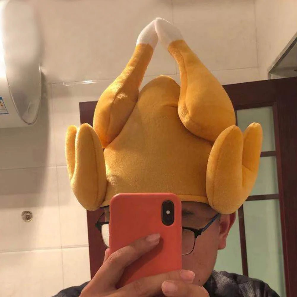 Funny Adult Hat Roasted Turkeys Hat Can/Can't Move Chicken Leg Hat Short Plush Party Holiday Costume Hat For Halloween Christmas