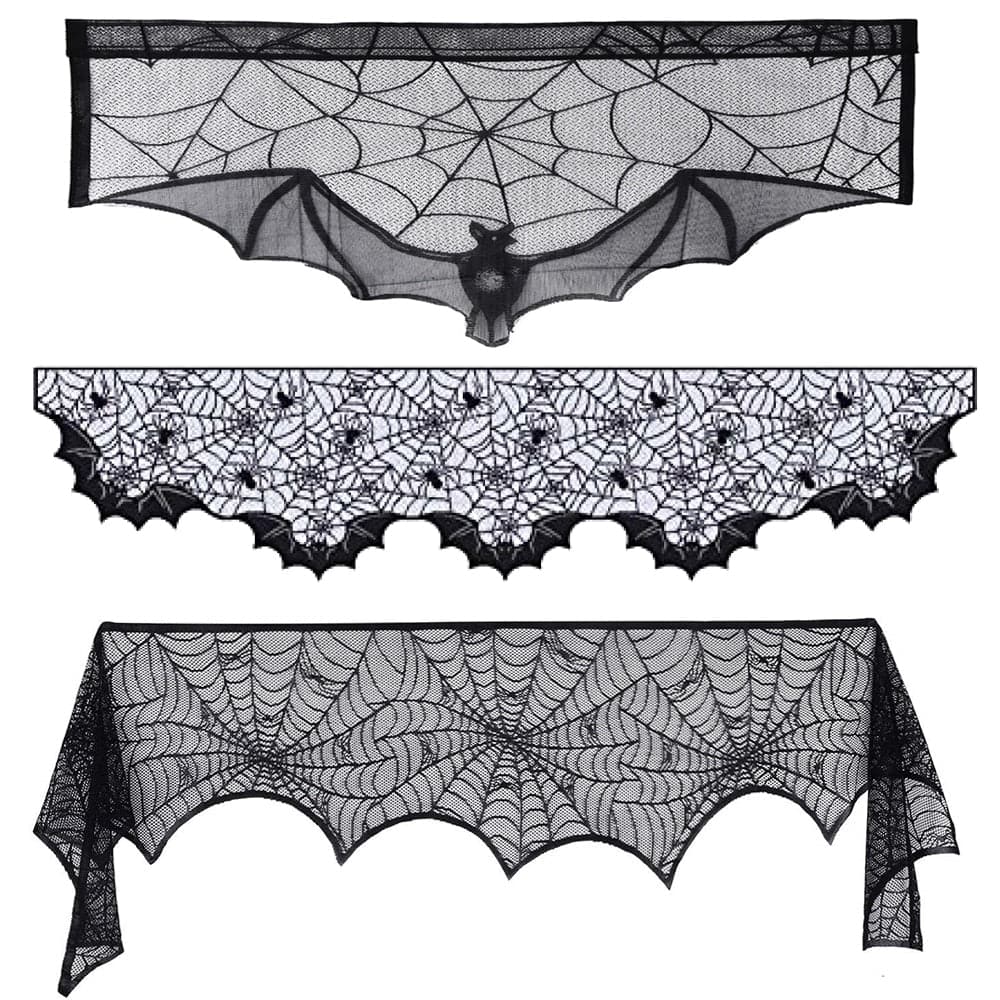 Halloween Lace Table Runner Black Spider Web Tablecloth Fireplace Cover Mantel Halloween Decoration for Home Cloth Cover Supply