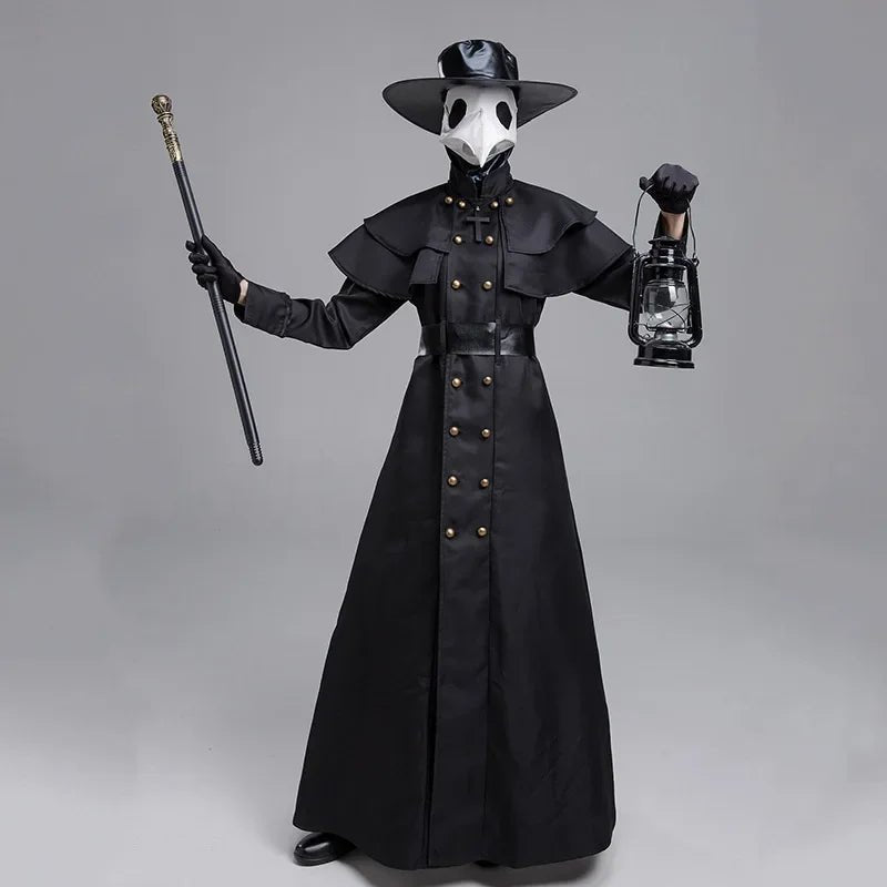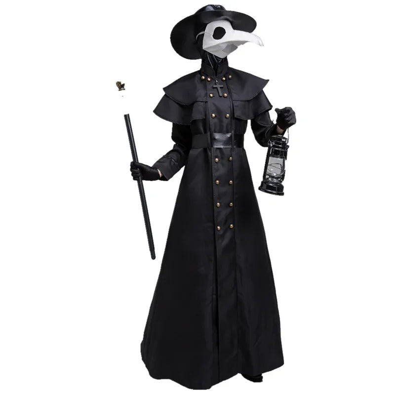 Halloween Medieval Hooded Robe Plague Doctor Costume Mask Hat for Men Monk Cosplay Steampunk Priest Horror Wizard Cloak Cape 5XL