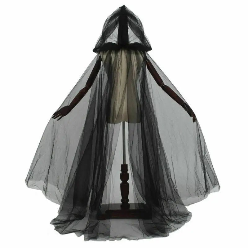 Halloween Mesh Cosplay Ghost Cosplay Hooded Cape Grim Reaper Witch Long Cloak Party Costume Halloween Costum Double Layer Mesh