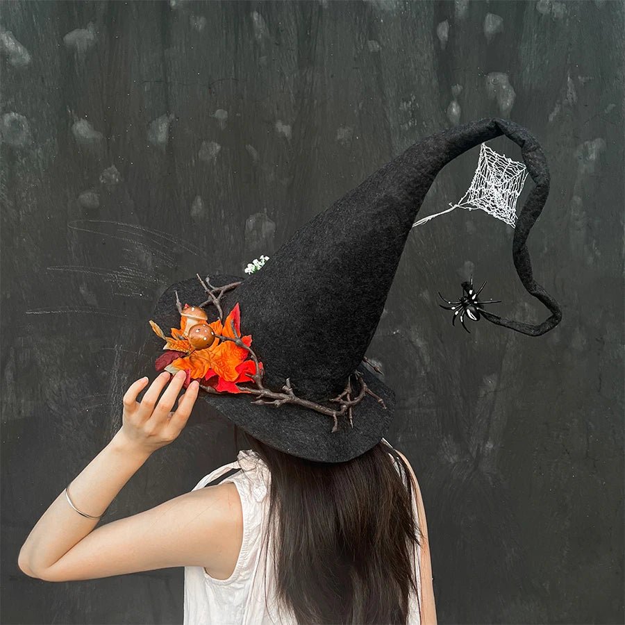 Halloween Witch Hat Cosplay Prop Dress Up Wicked Costume Accessory Spider Web Maple Leaf Hat Flower Mushroom Decor Felt Hat