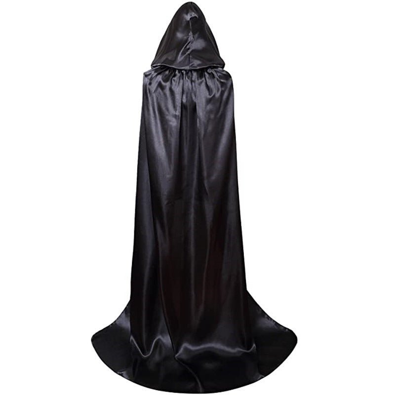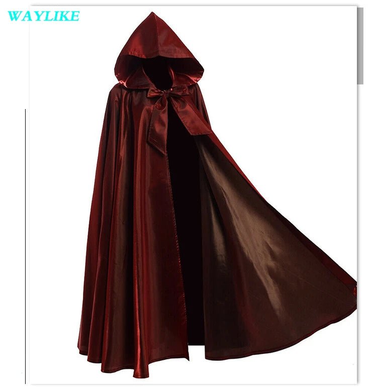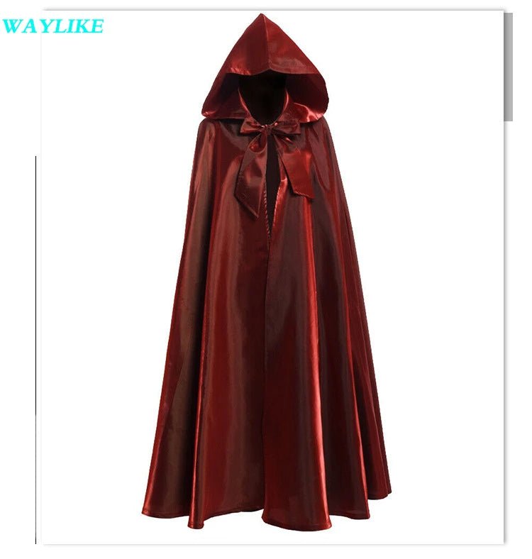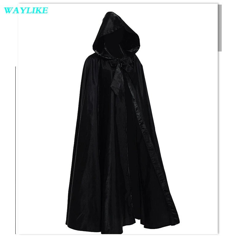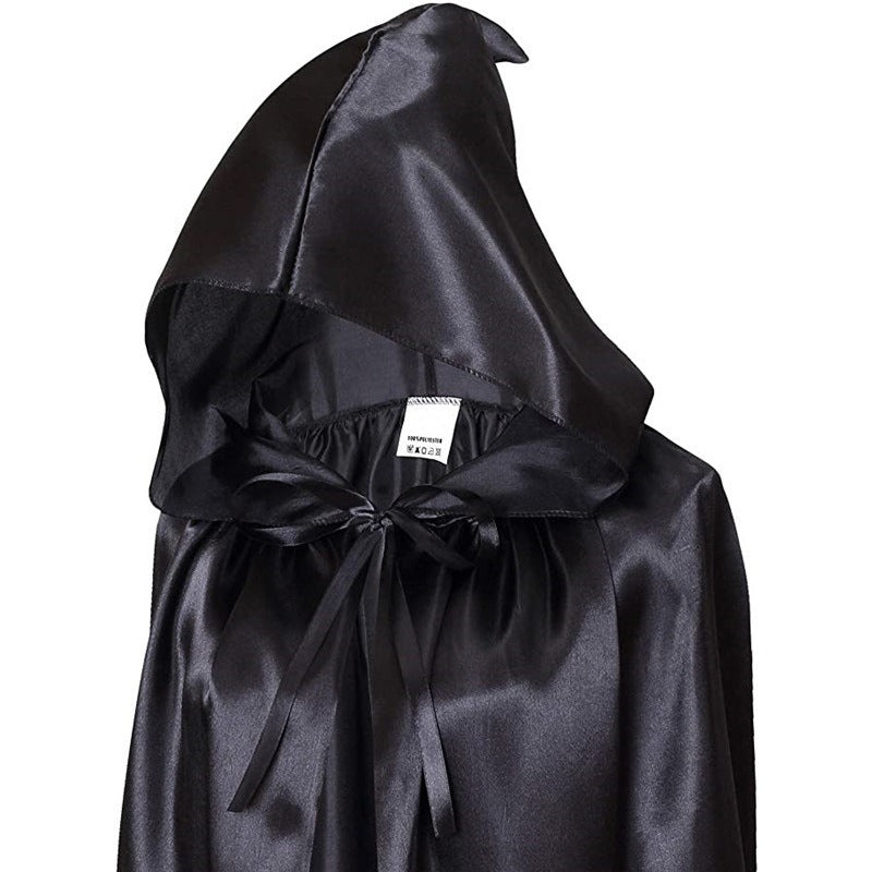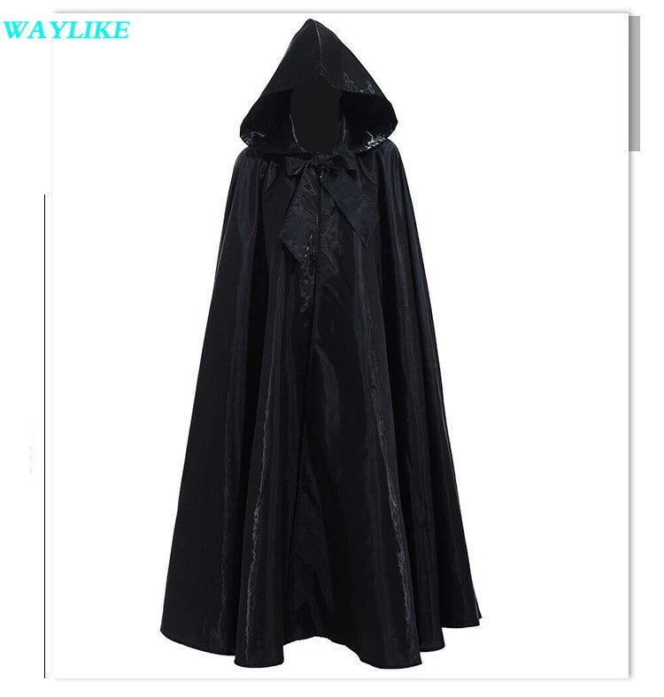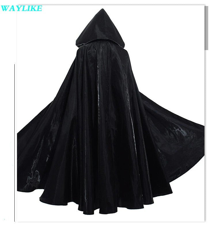 Halloween Witch Wizard Cosplay Costume Hood Cloak Adult Kids Satin Medieval Cape Shawl Vampire Devil Cosplay Clothing Long Robe