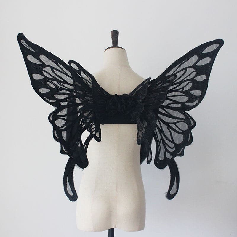 Handmade Lace Embroidery Butterfly Wings Shooting Props Lolita Black White Diffuse Exhibition Cosplay Party Back Decoration