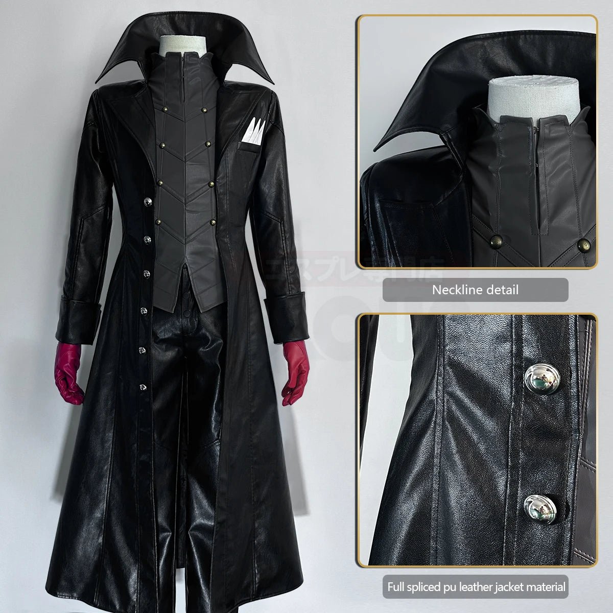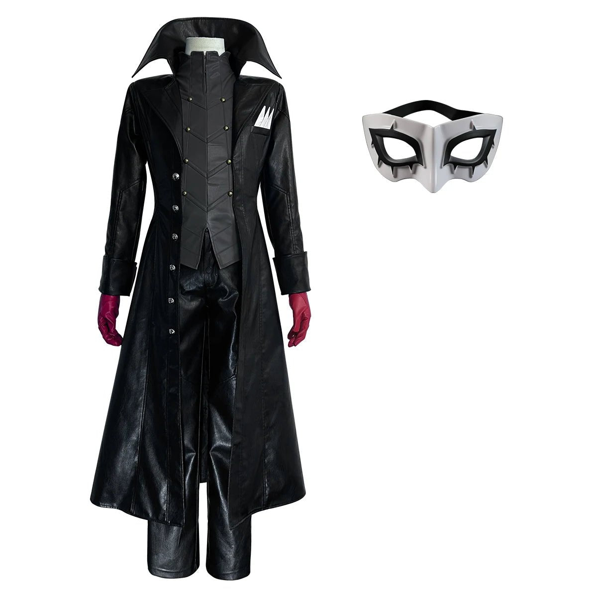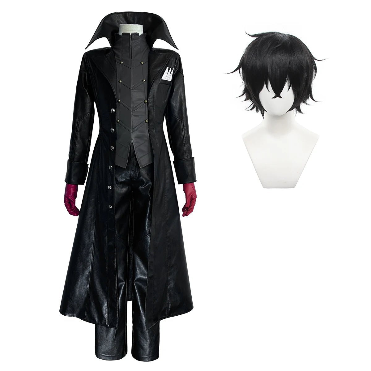 HOLOUN P5 Game Ren Amamiya Cosplay Costume Wig Mask Joker Faux Leather Coat Pants Vest Gloves Daily Wear Cos Convention Rose Net