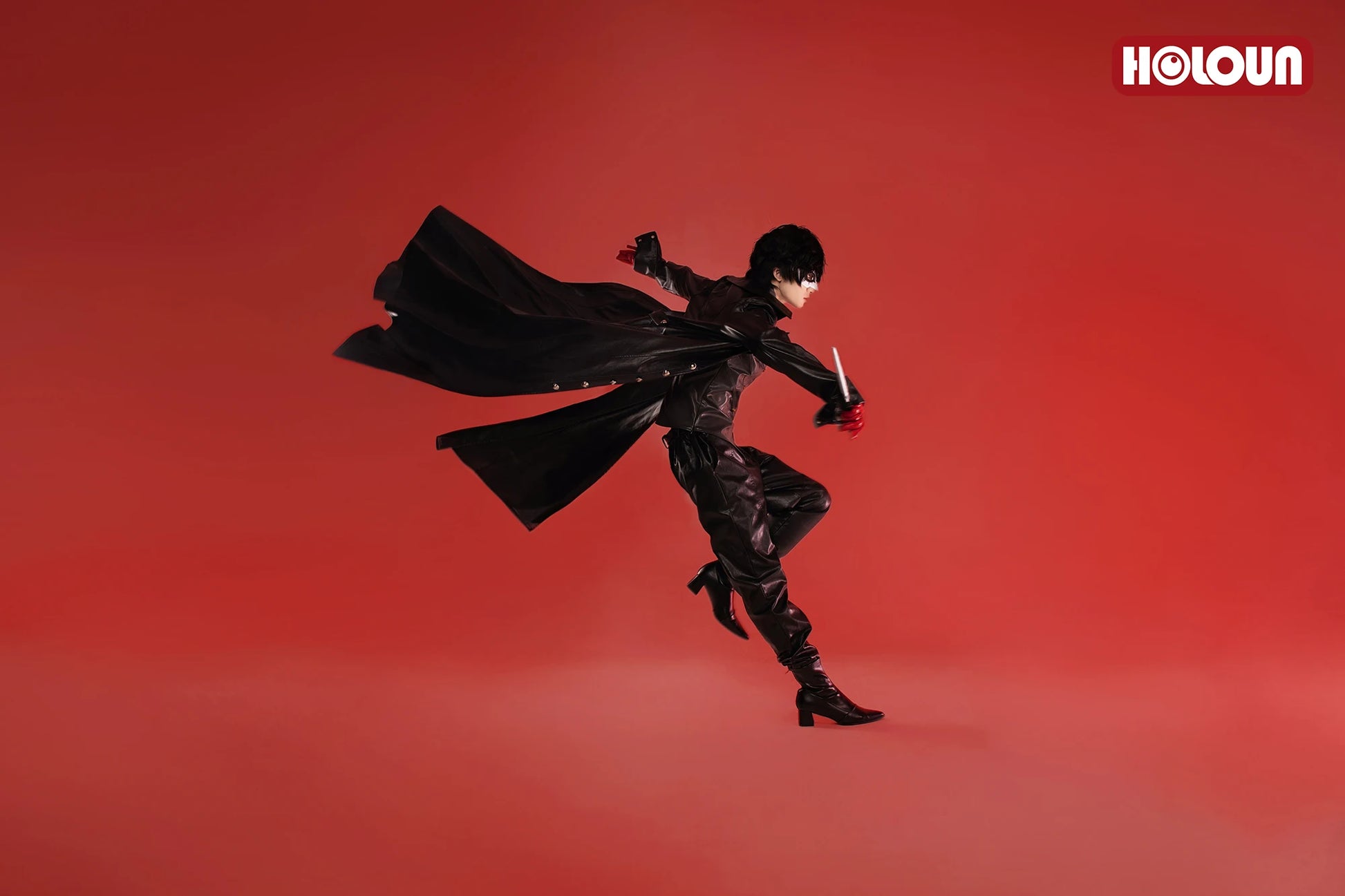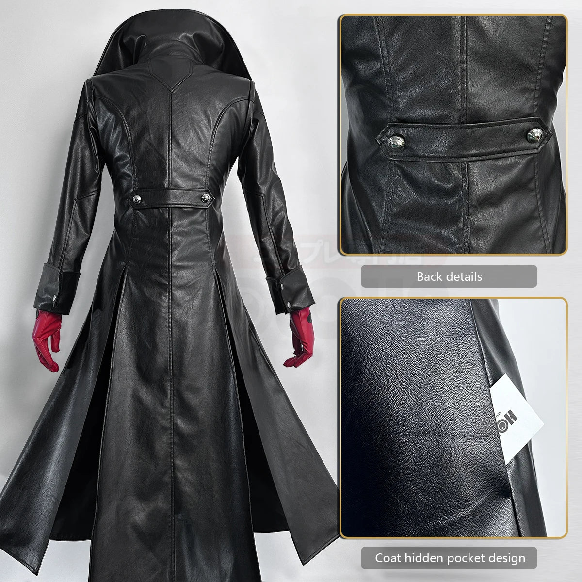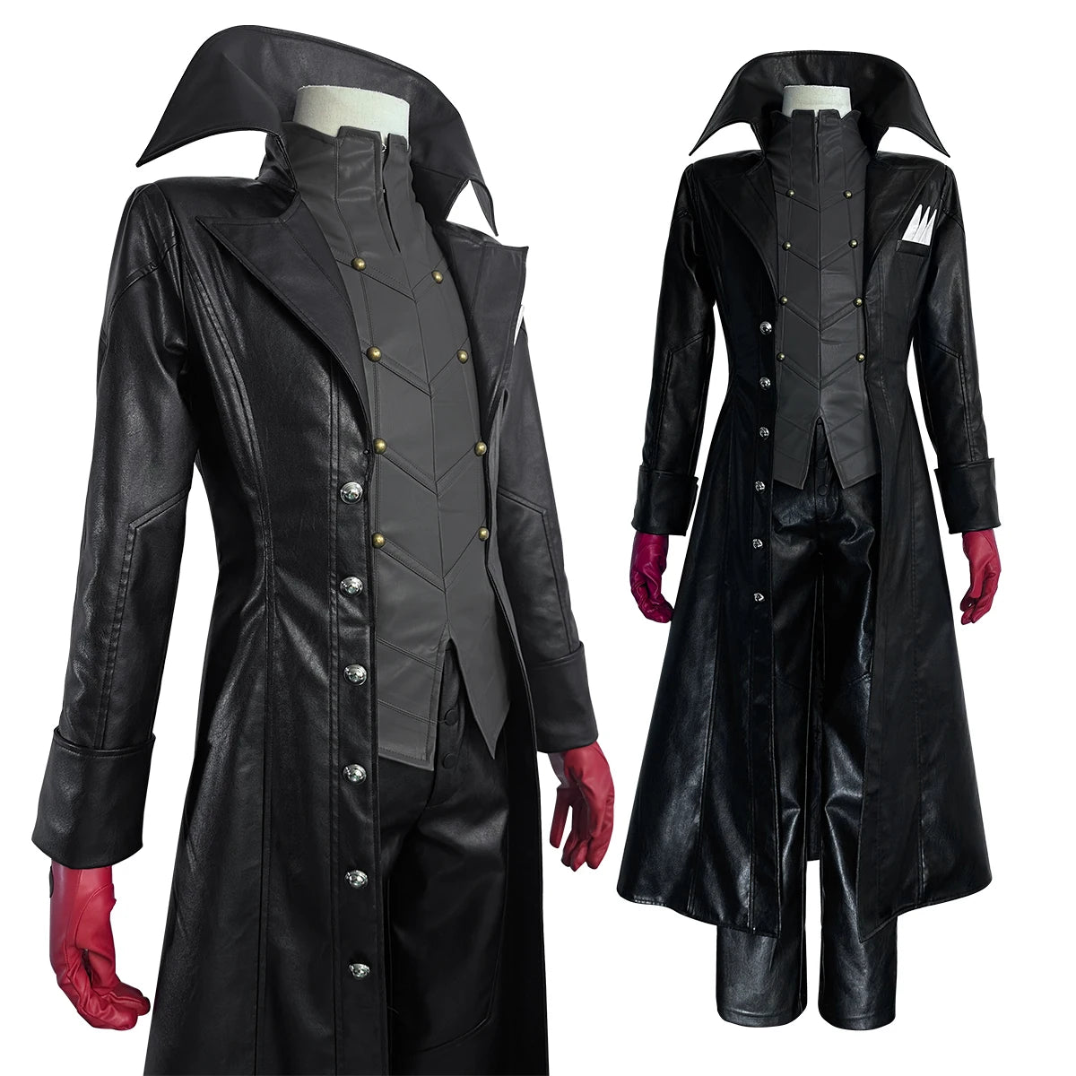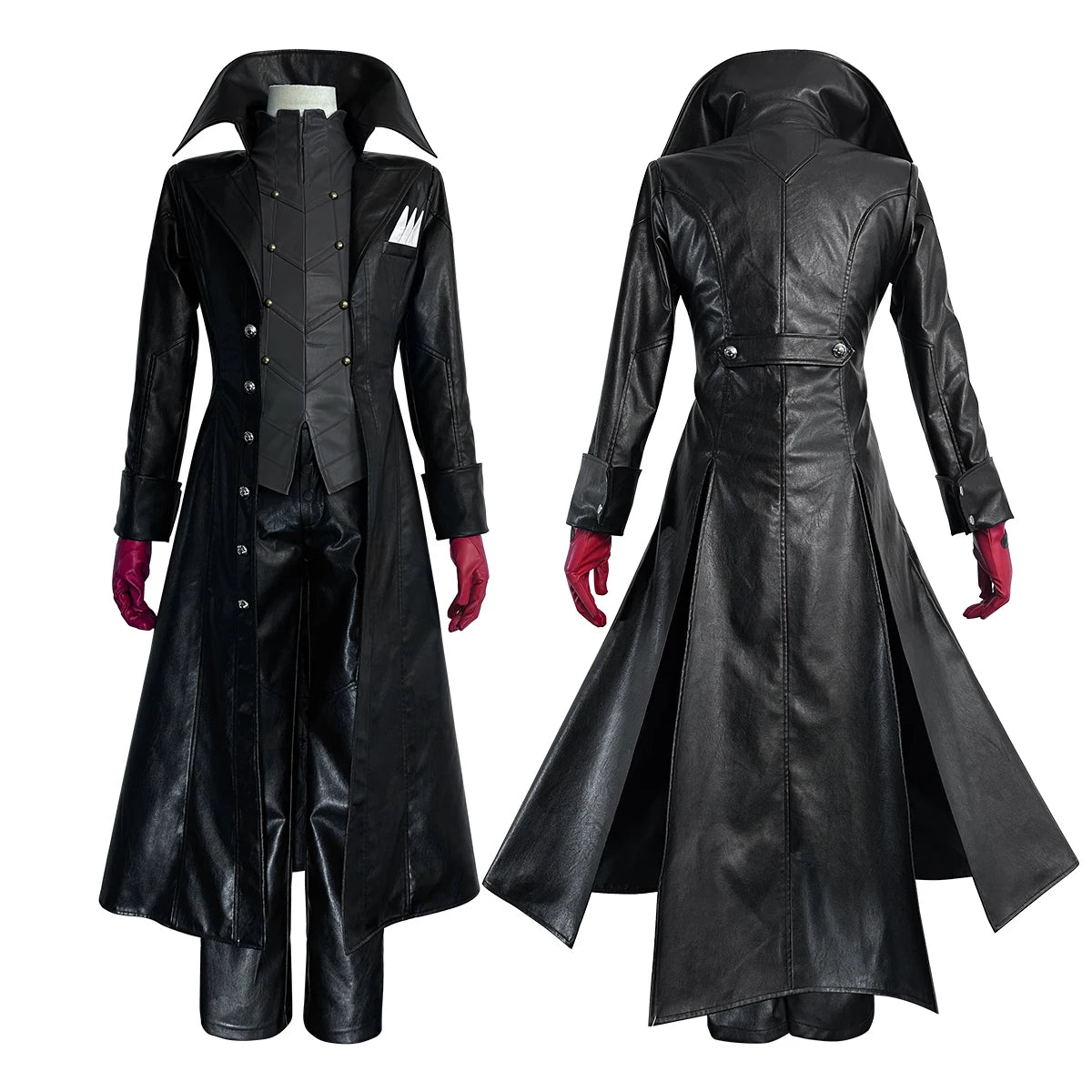HOLOUN P5 Game Ren Amamiya Cosplay Costume Wig Mask Joker Faux Leather Coat Pants Vest Gloves Daily Wear Cos Convention Rose Net