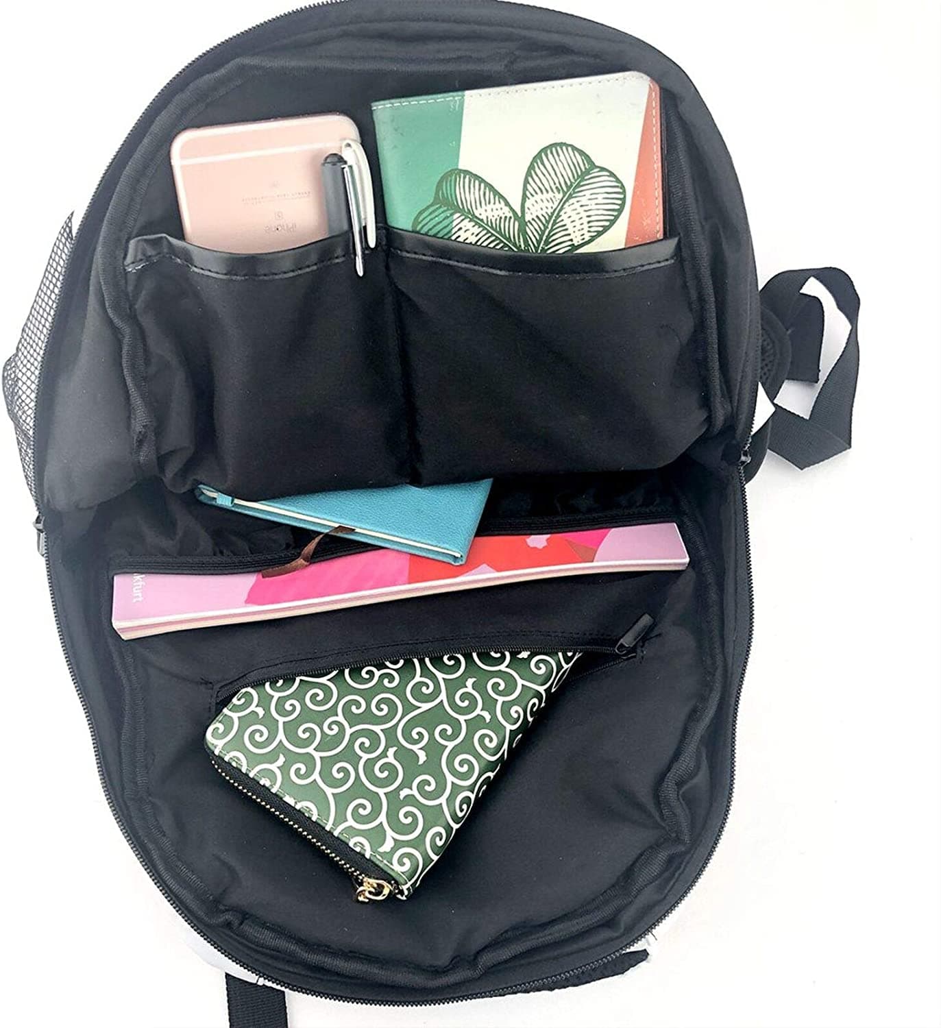 • A main volume pocket, 2 side pockets, a front zipper pocket, and 4 pockets inside. The empty bag can stand, and the bag type is stiff.