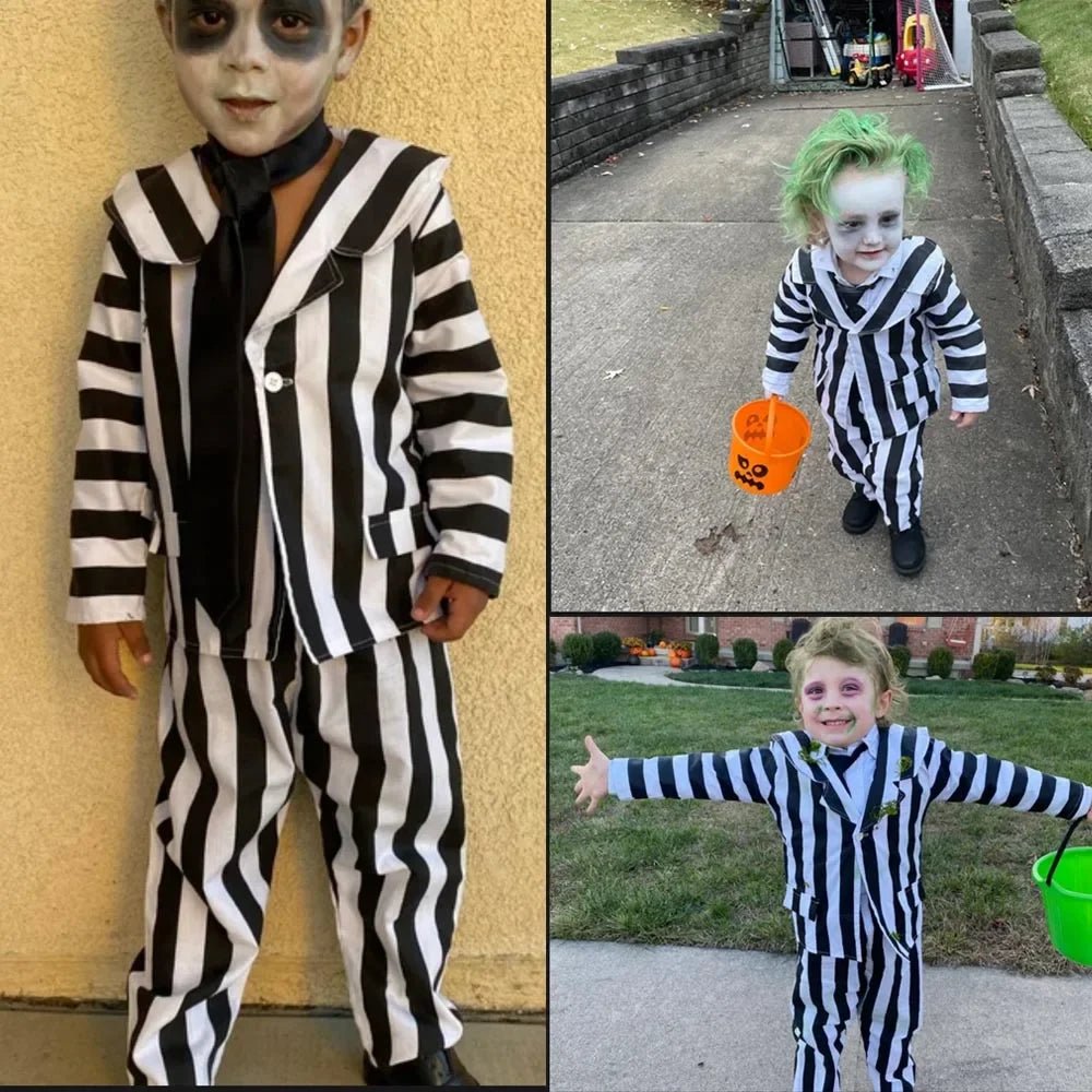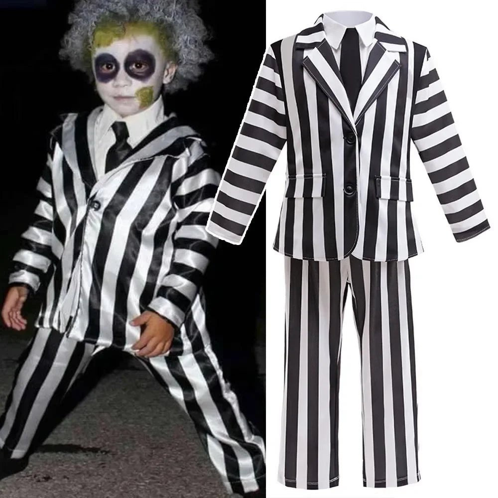 Kids boys Beetle 2 Coat Suit Cosplay Children Boys Girls Striped Top Pants Costume Halloween Carnival Dress Up Party Costume