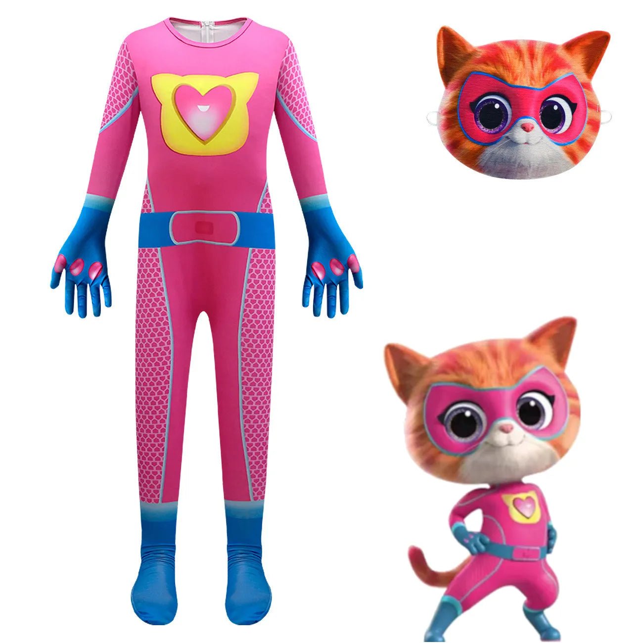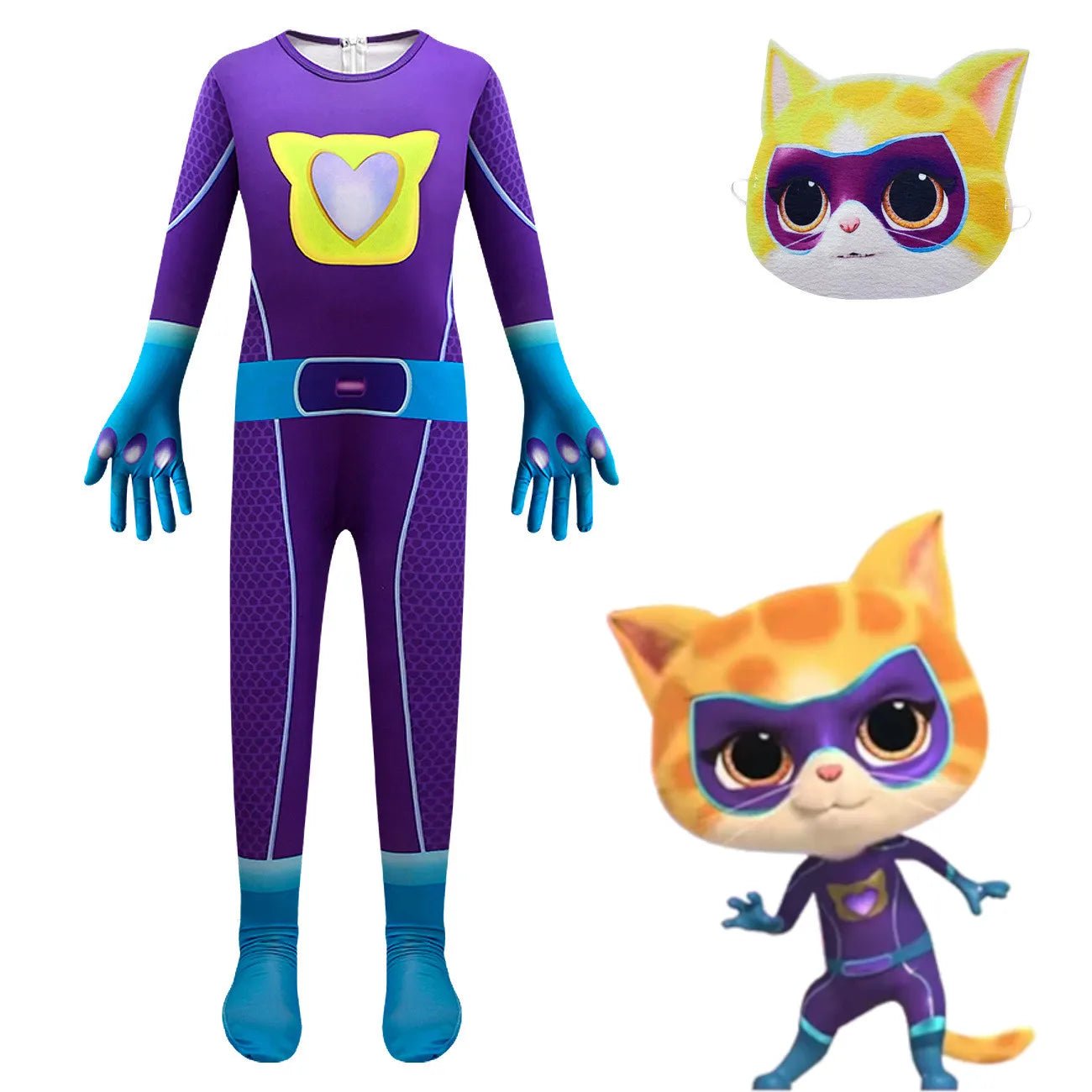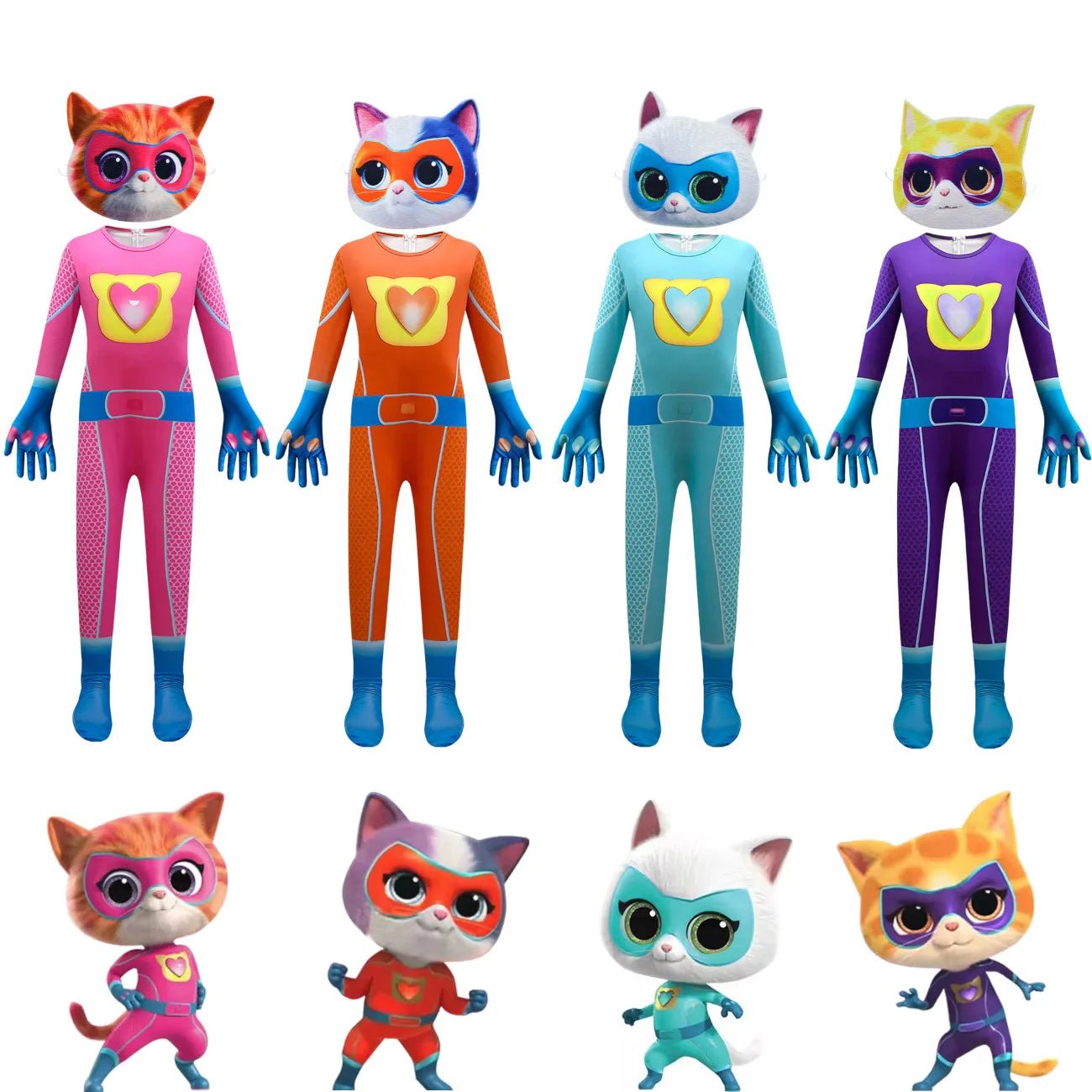 Kids Boys Girls Cartoon Anime SuperKitties Cats Orint Jumpsuit Mask Outfit Children Christmas Halloween Cosplay Costume