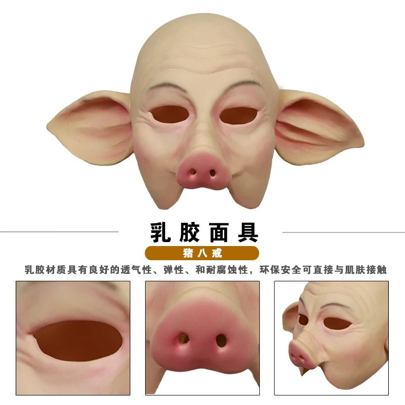 Latex Monk Pig Mask Funny Halloween Cosplay Prop Journey To The West Piggie Accessories Party Supplies