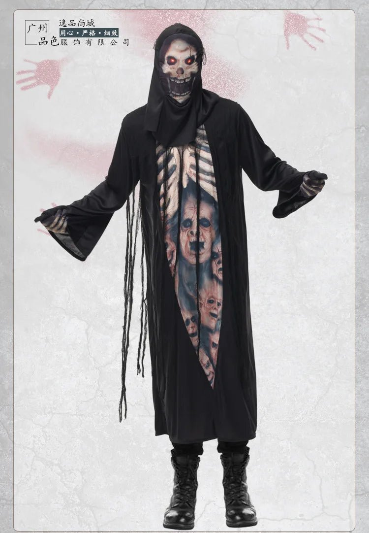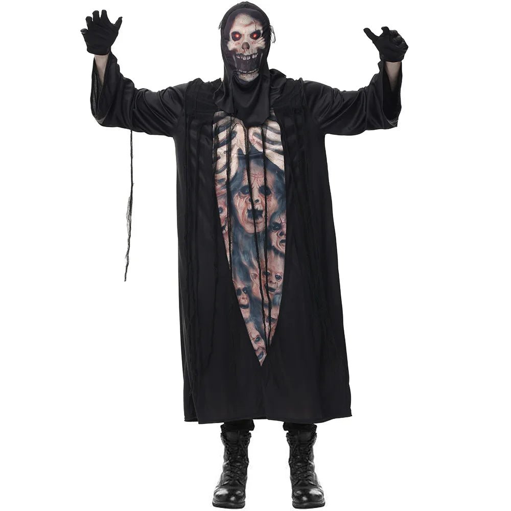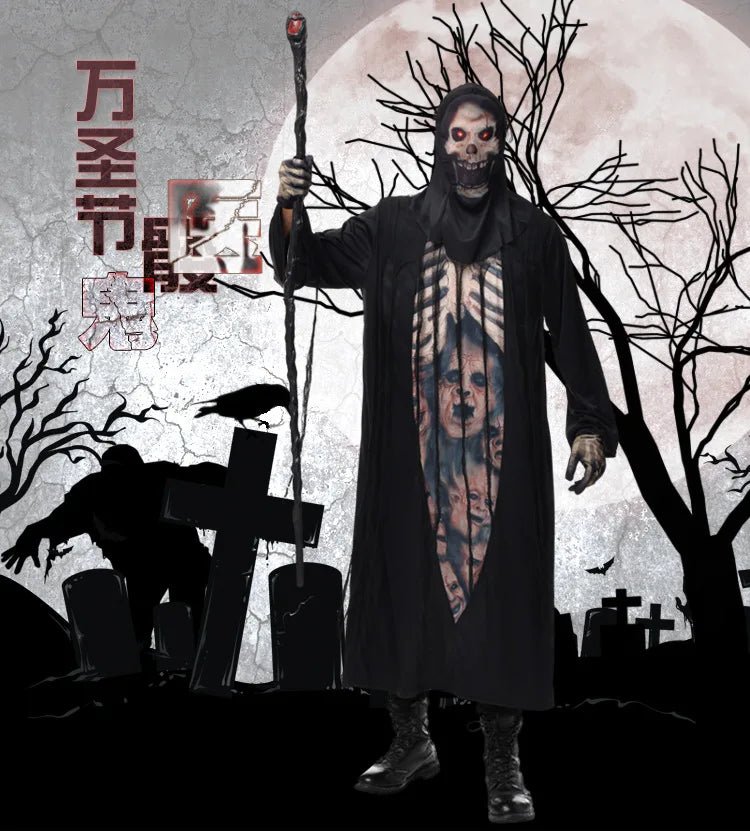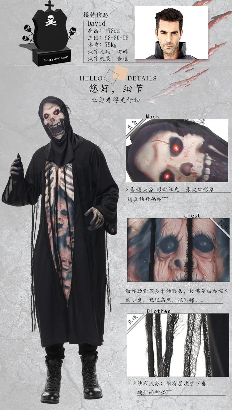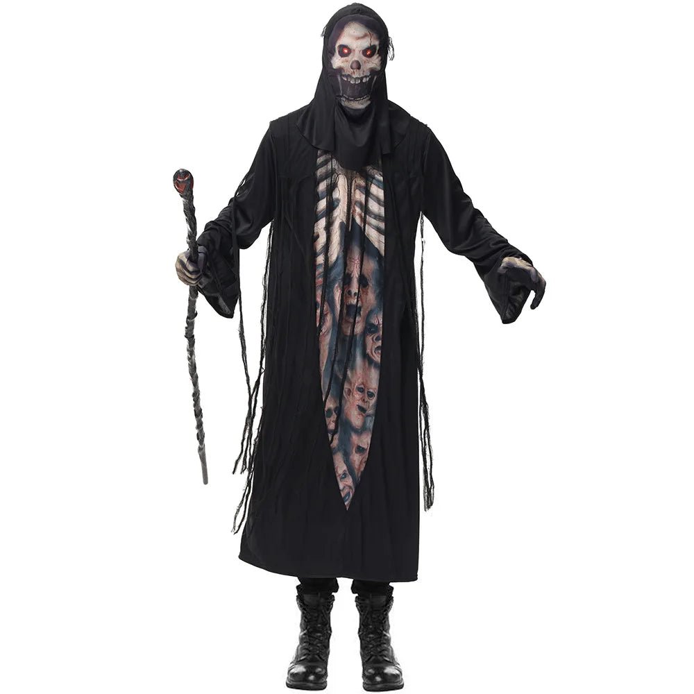 Men Halloween Necromancer Costumes Adult Azrael Evil Skeleton Robe Cosplay Carnival Purim Parade Nightclub Role Play Party Dress