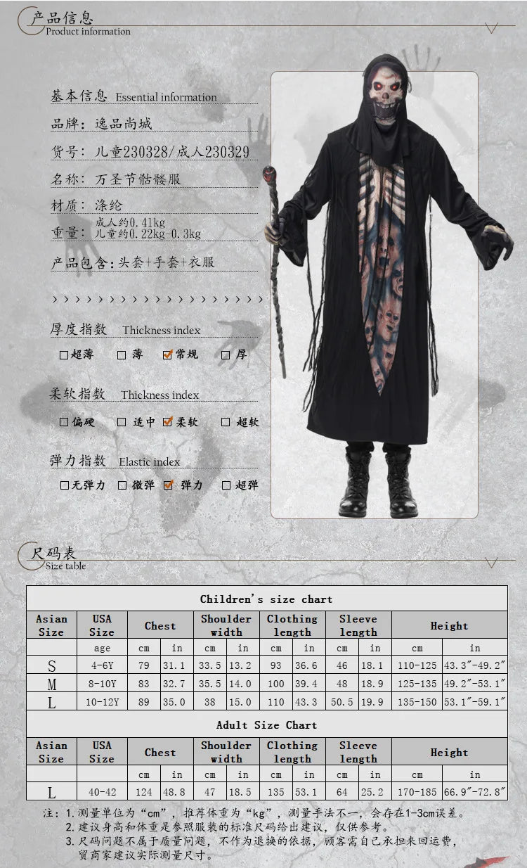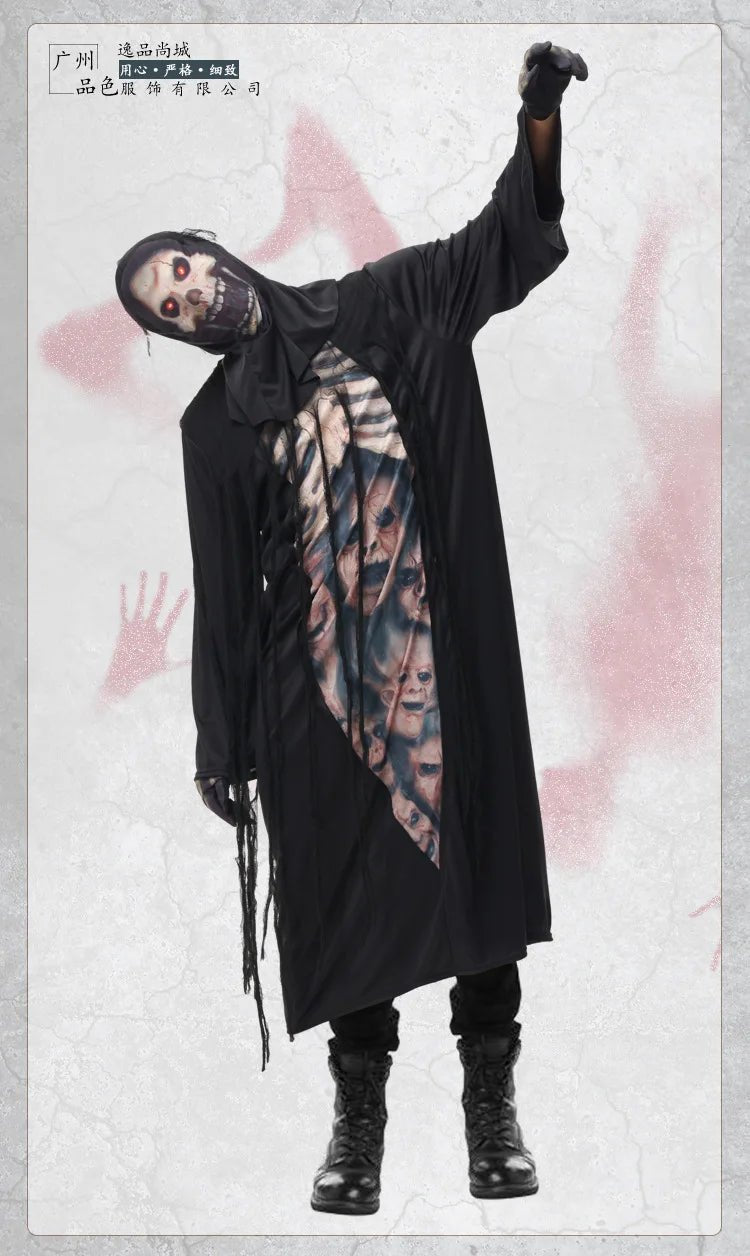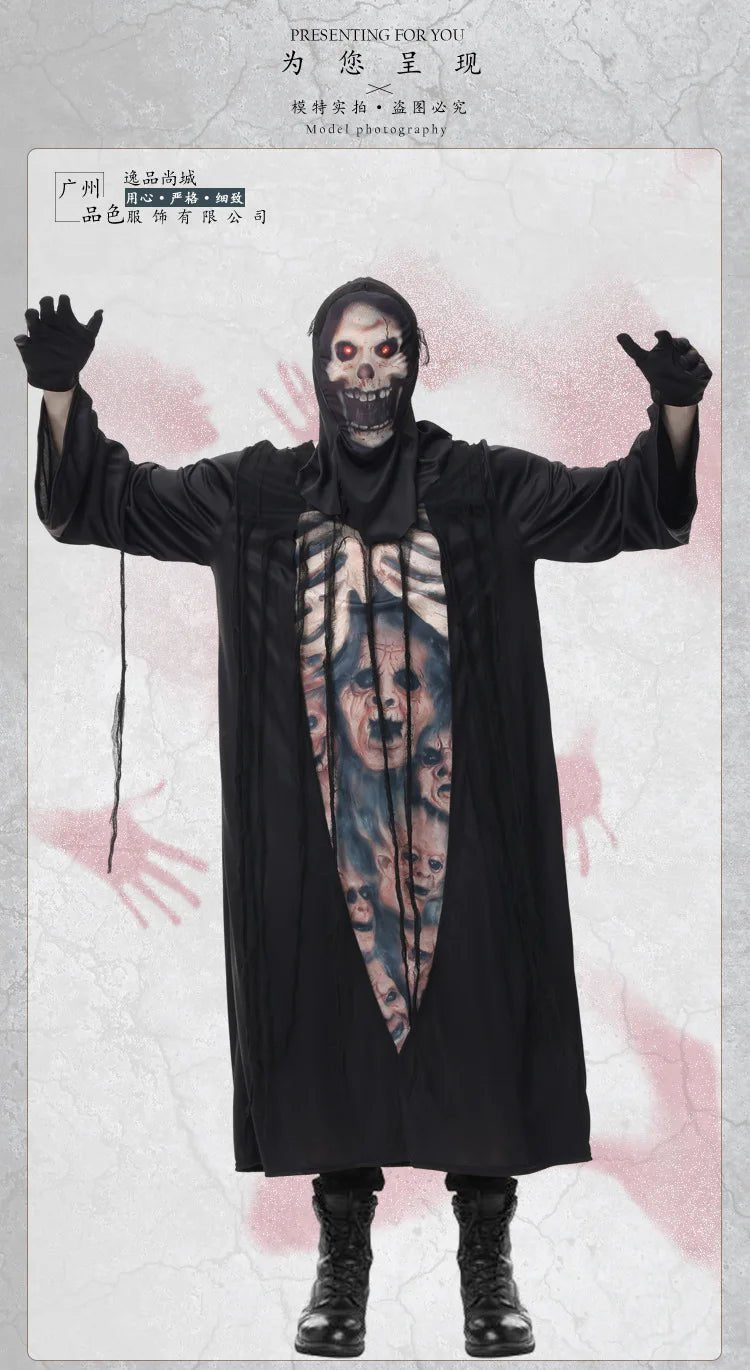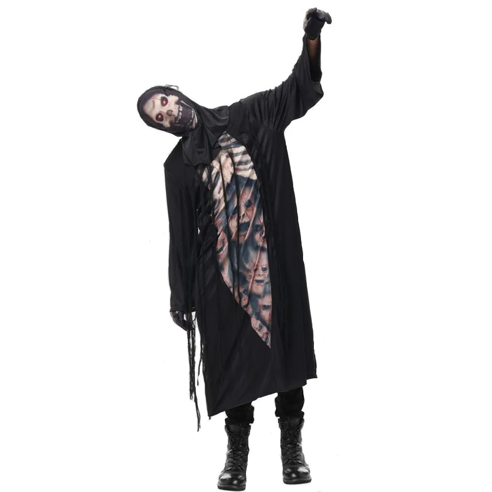 Men Halloween Necromancer Costumes Adult Azrael Evil Skeleton Robe Cosplay Carnival Purim Parade Nightclub Role Play Party Dress