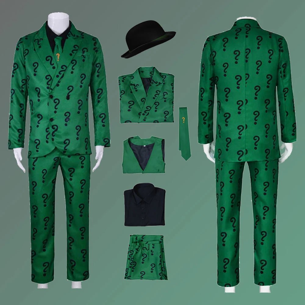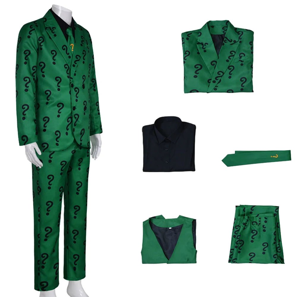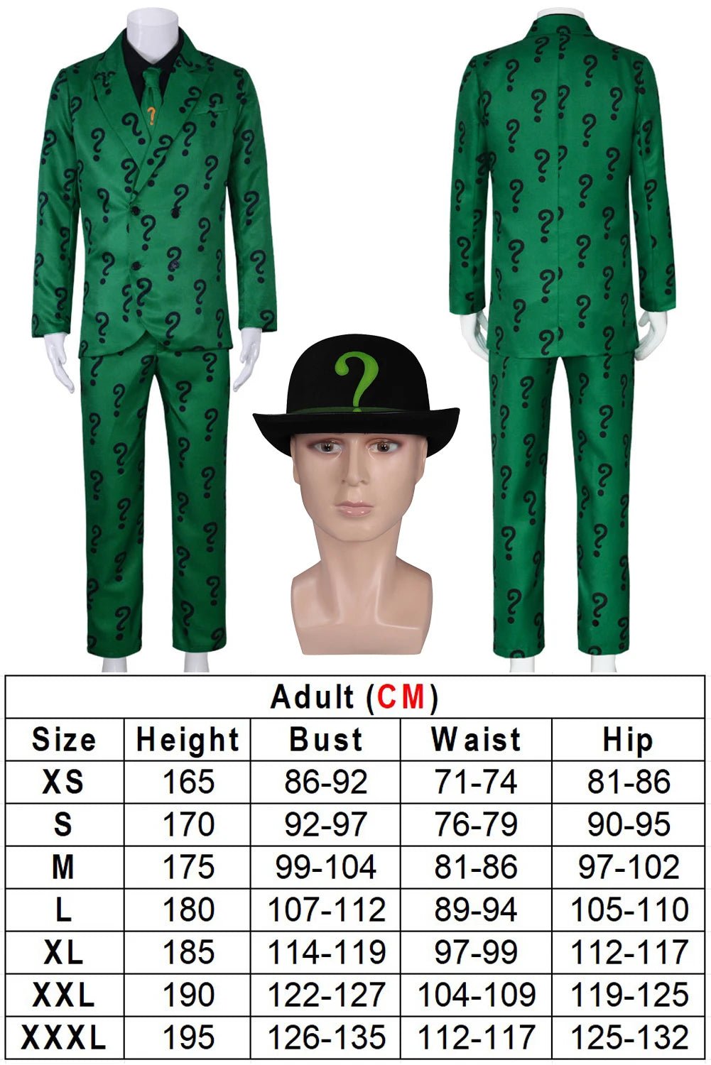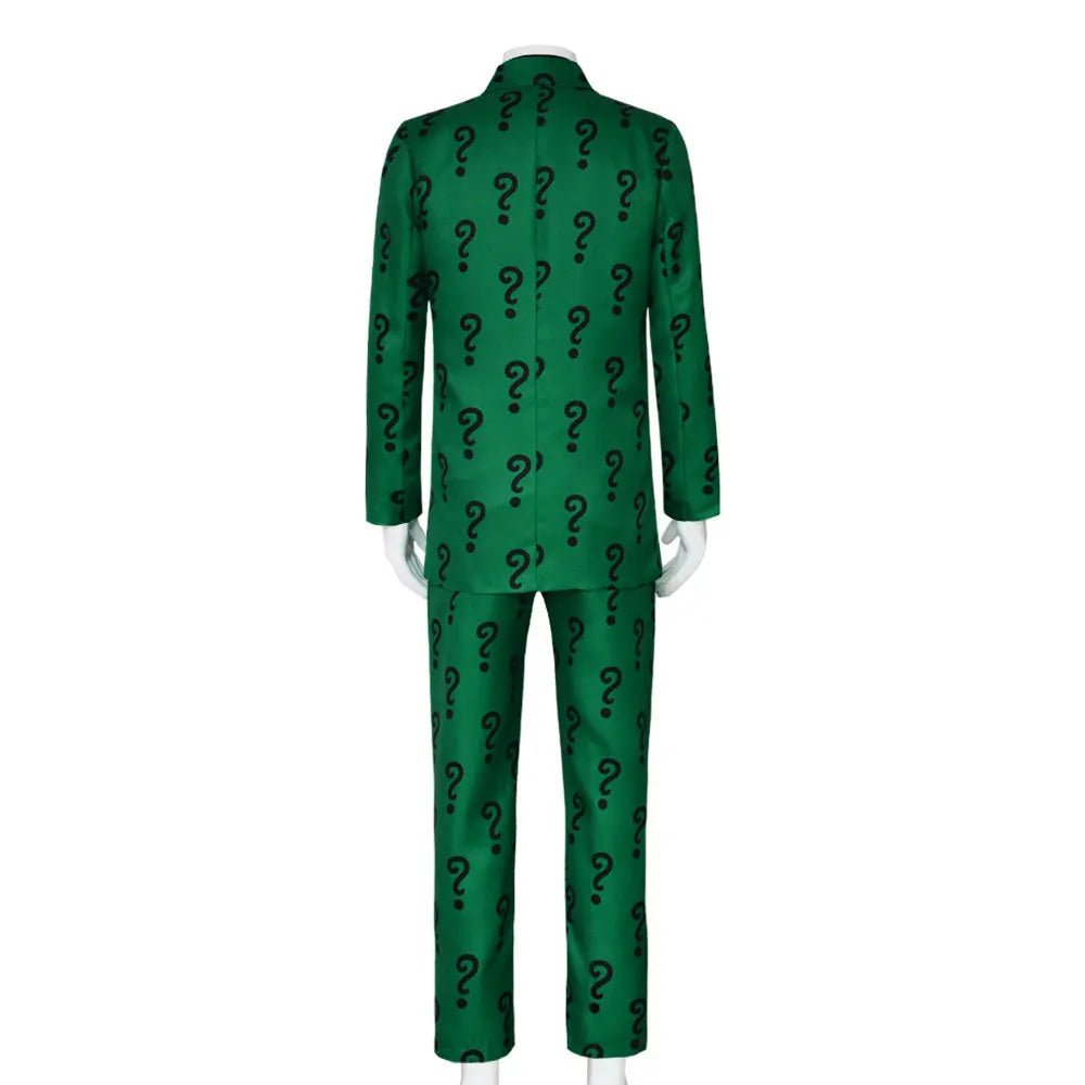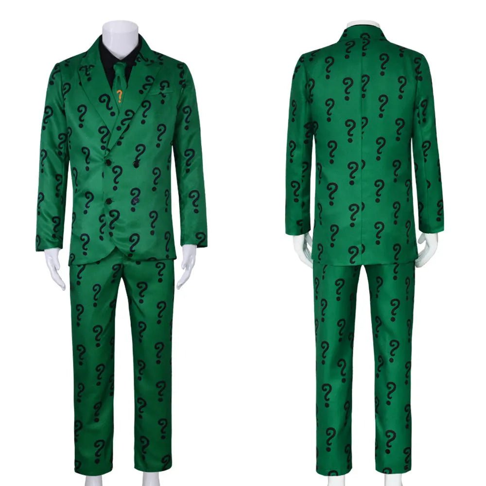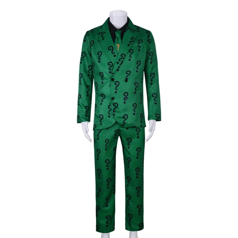 Men Riddler Cosplay Fantasy Movie Super Villain Costume Disguise Adult Boys Roleplay Fantasia Outfits Halloween Male Suits