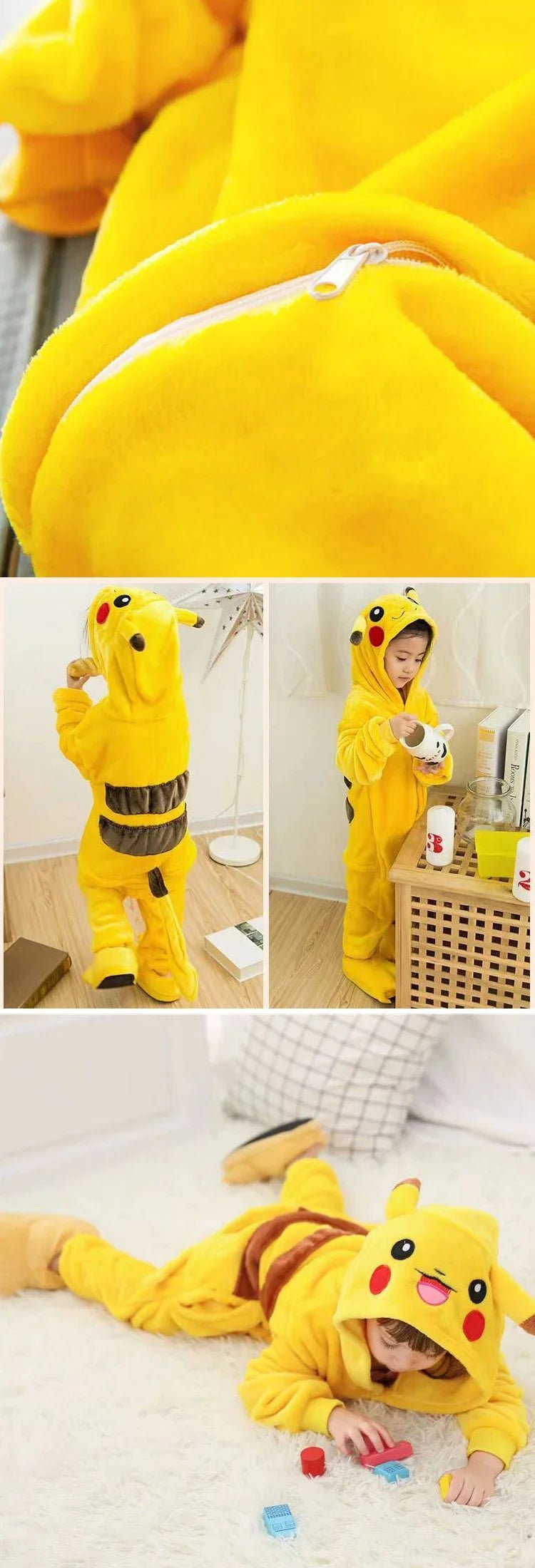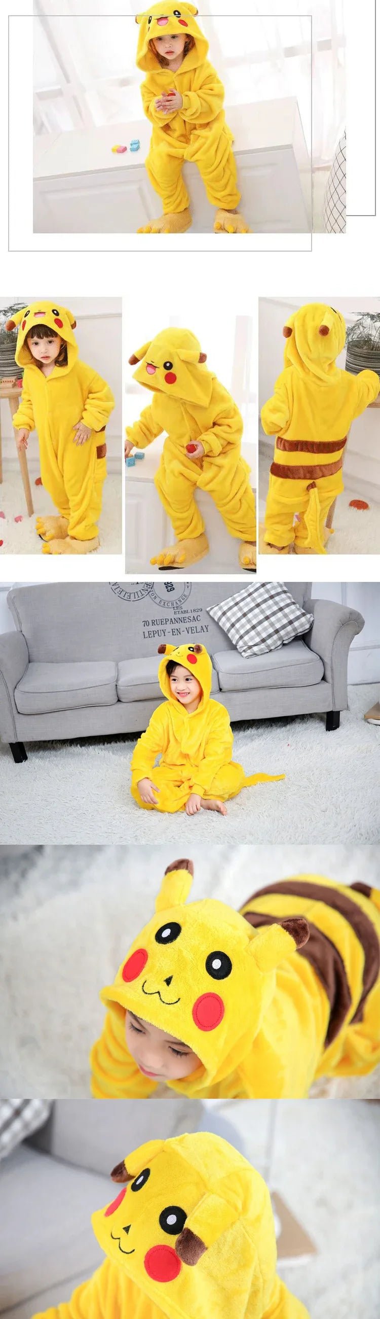MINISO Pikachu Kids One-pieces Home Suit Cartoon Cute Winter Keep Warm Pajamas Coral Velvet Comfortable Kawaii Party Sleepwear