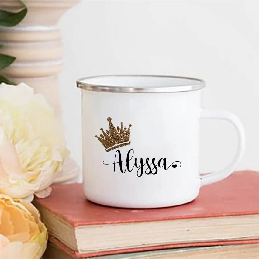 Personalized Crown Coffee Mug - Custom Enamel Mugs