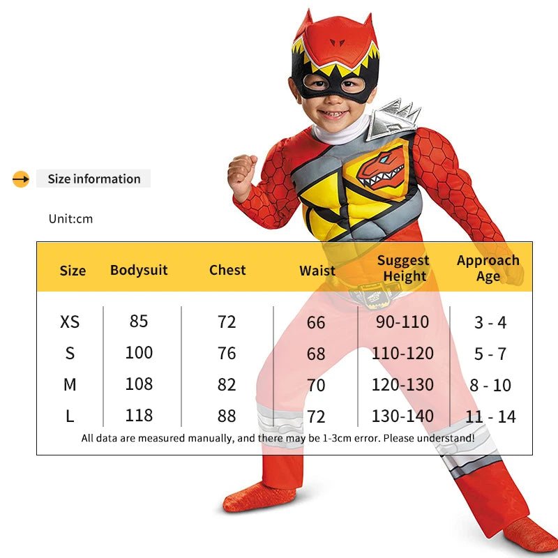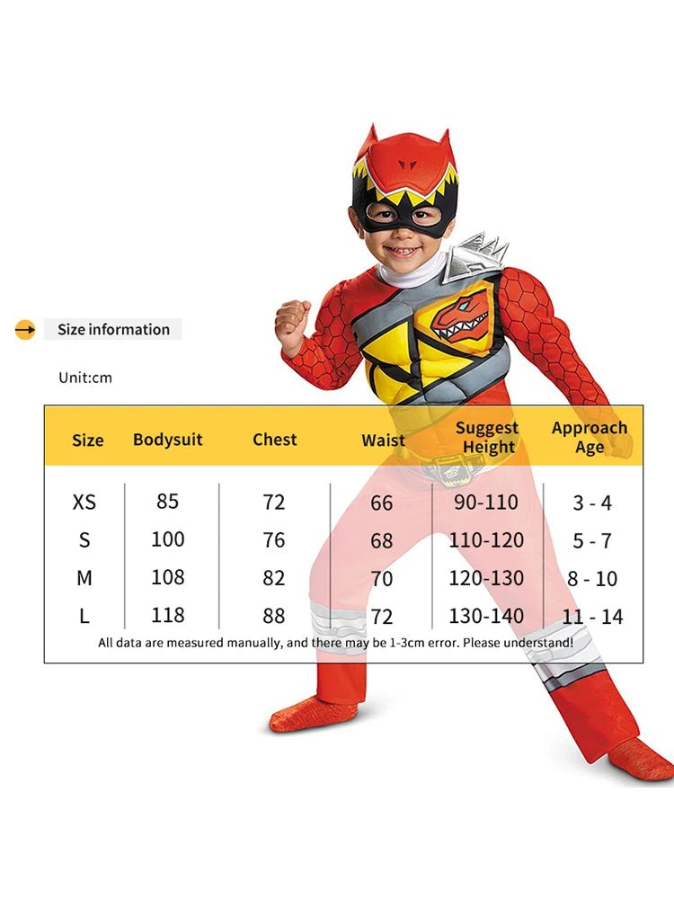 Red Power Rangers Dinosaur Charge Boys Muscle Costume Fancy Dress Halloween Carnival Party Costumes For Kids Size XS To L