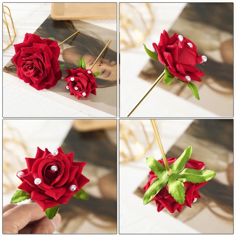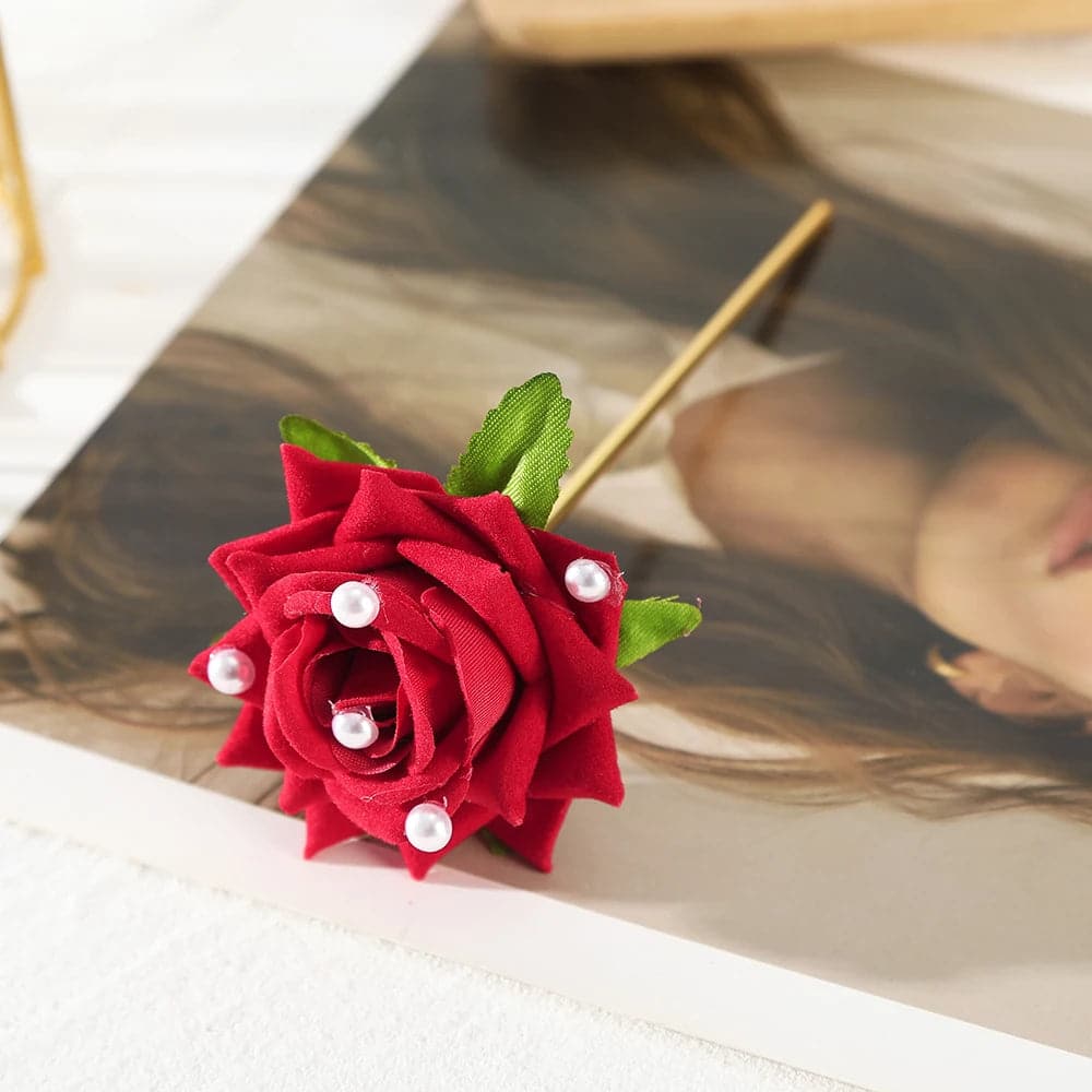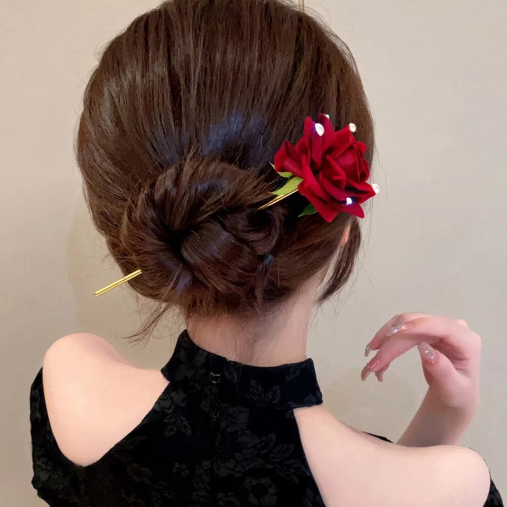 Red Rose Flower Hair Sticks For Women Romantic Festival Hair Clips Girls Fashion Elegant Ponytail Hairpin Hair Accessories