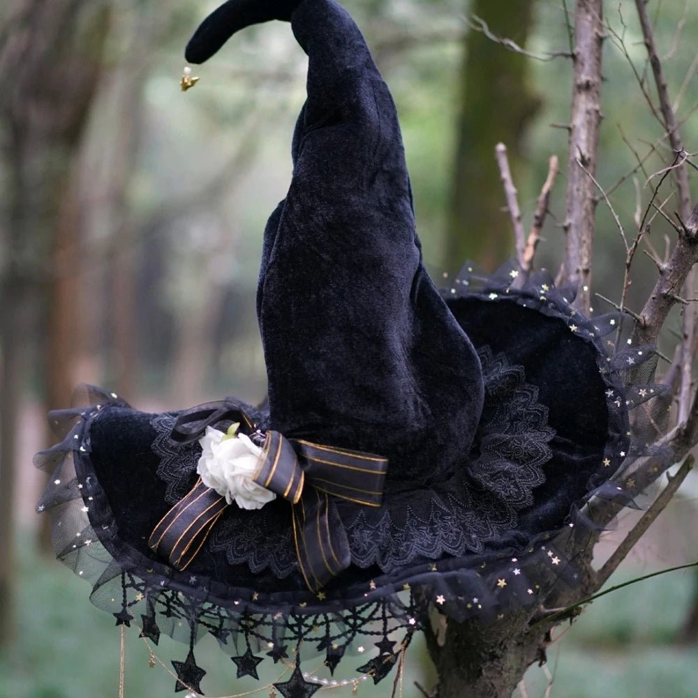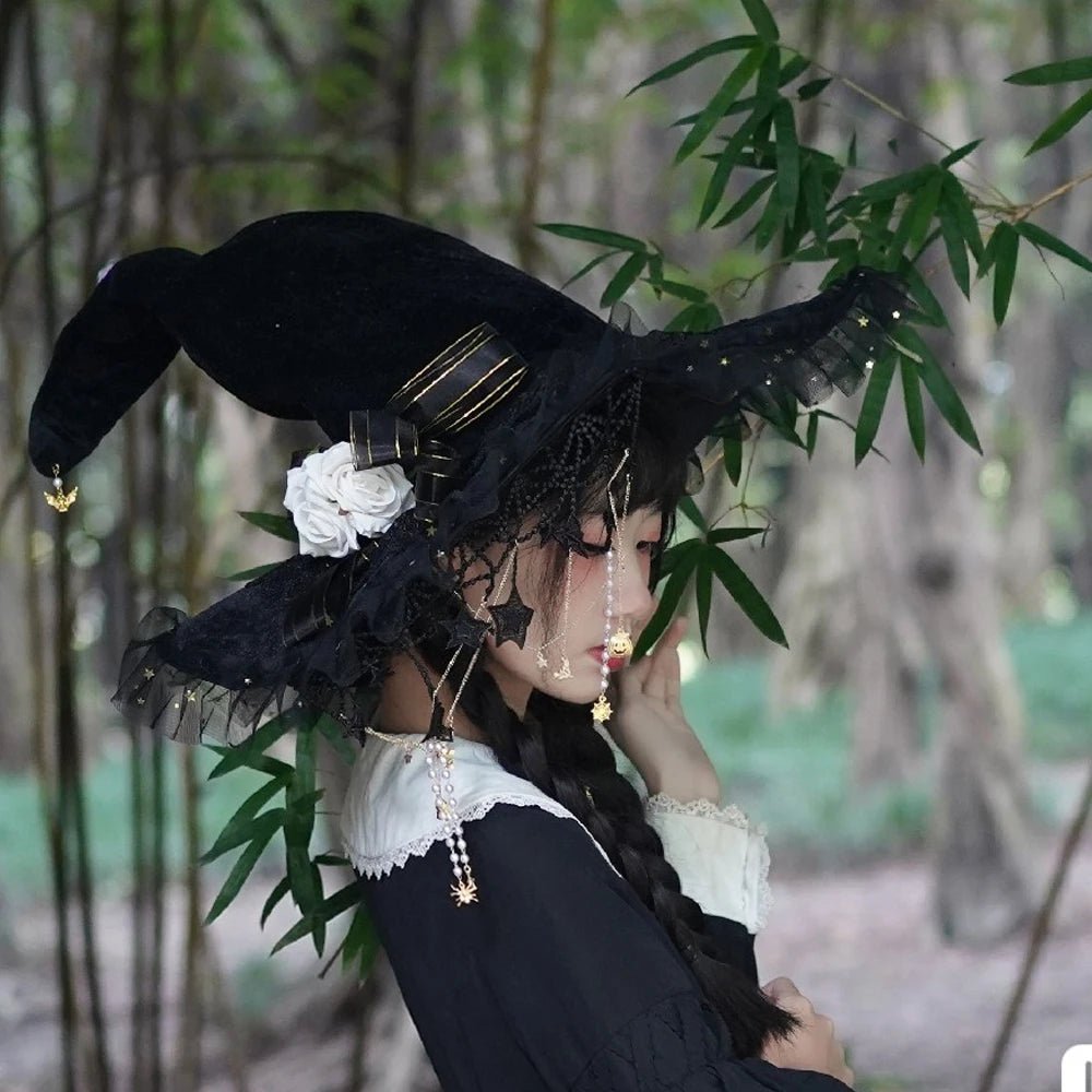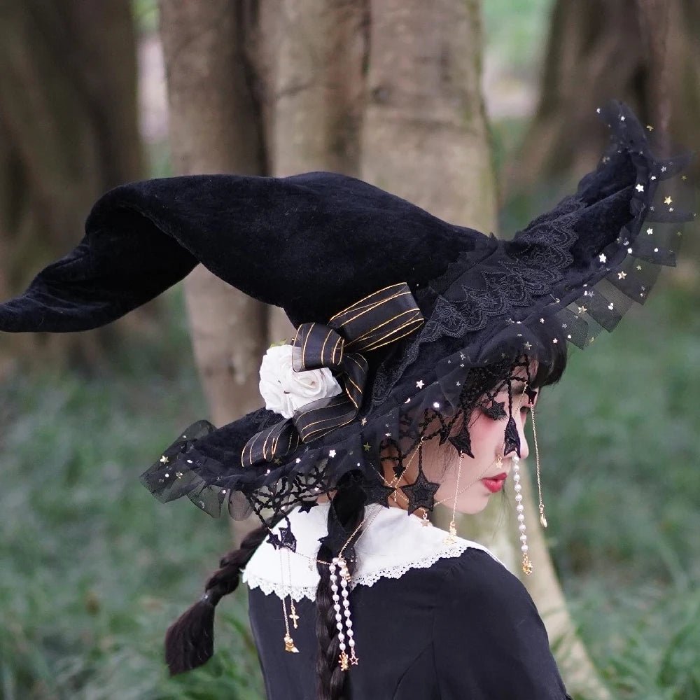 Retro Witch Hats Masquerade Bandage Bow Wizard Hat Adult Gothic Lolita Cosplay Costume Accessories Halloween Party Decor Gift
