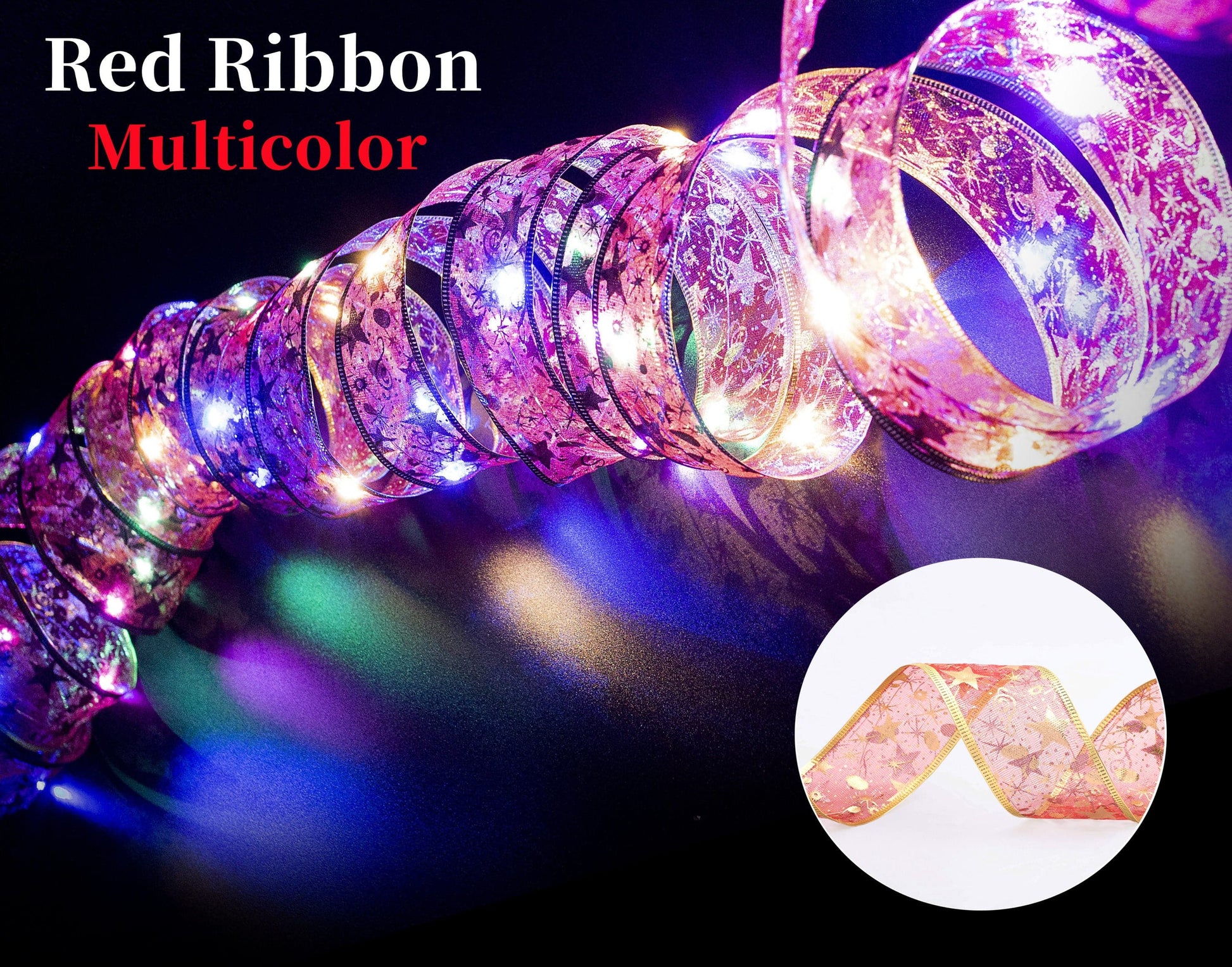 Christmas Ribbon Fairy Light Christmas Decoration DIY Bows String Light Tree Ornaments For Home 2023 Xmas Decor New Year Navidad