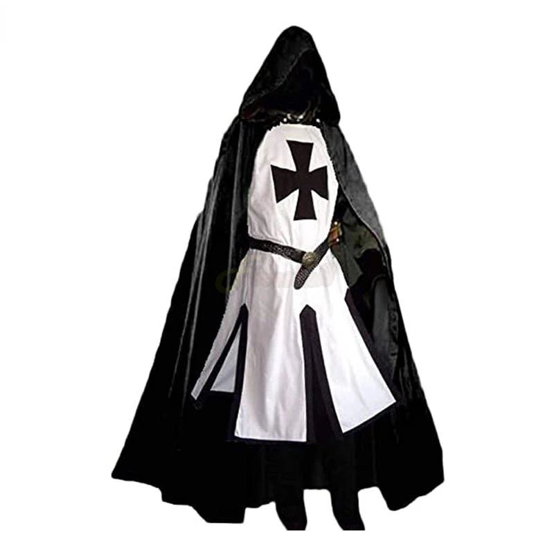 S-4XL Mens Medieval Crusader Knights Templar Tunic Cosplay Costumes Renaissance Halloween Surcoat Warrior Black Plague Cloak Top
