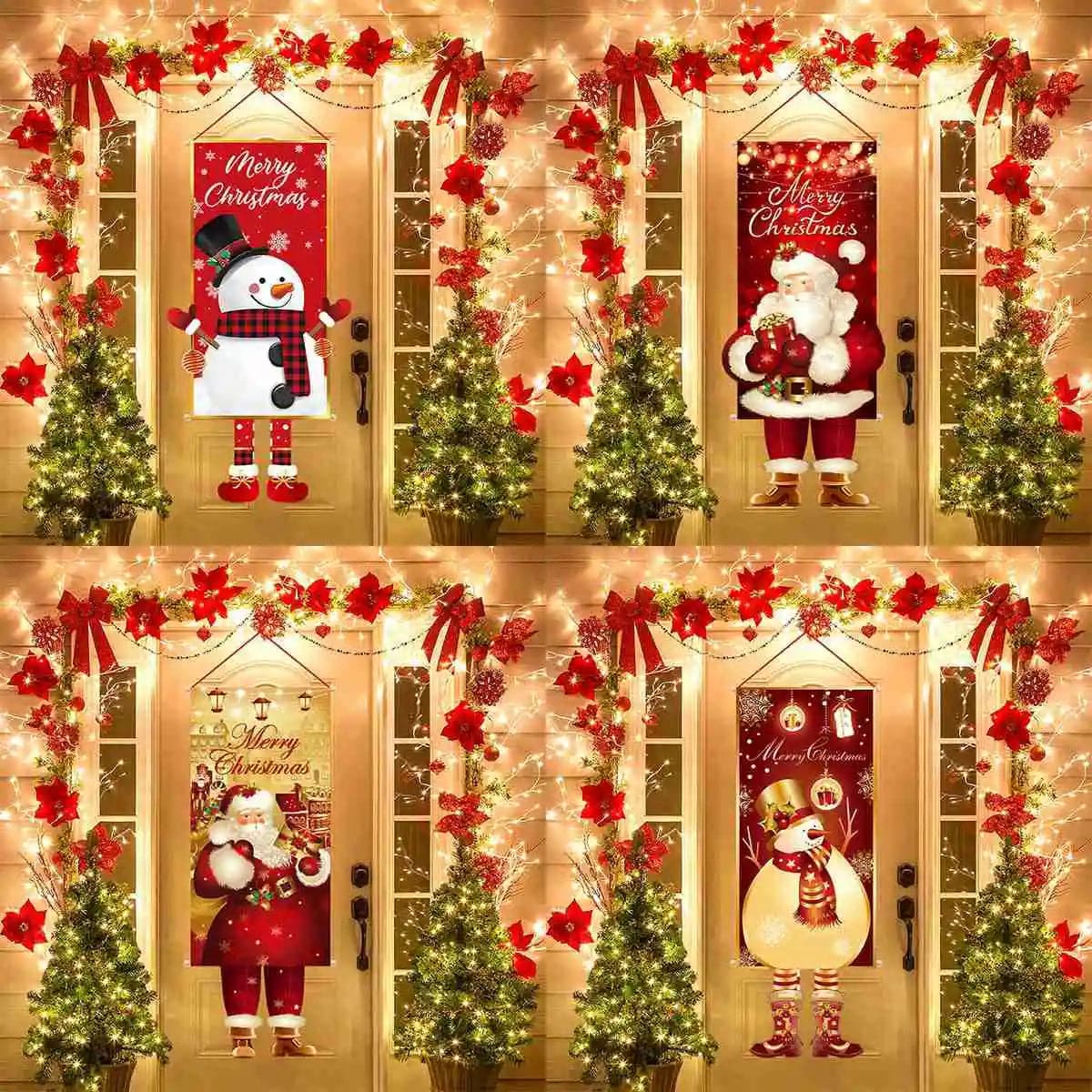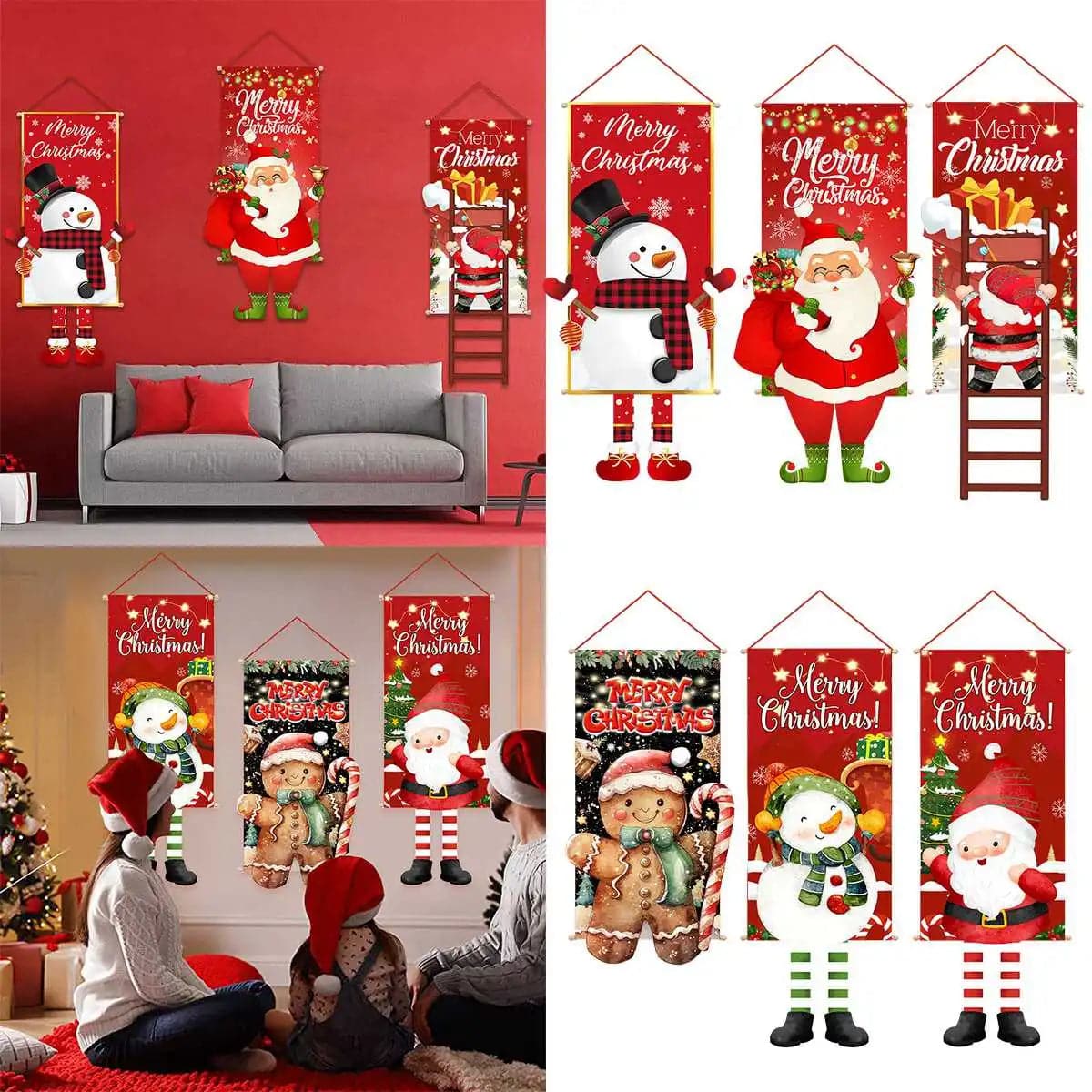 Santa Claus Hanging Flag Merry Christmas Decorations For Home 2023 Xmas Gifts Christmas Ornament Navidad Natal New Year 2024