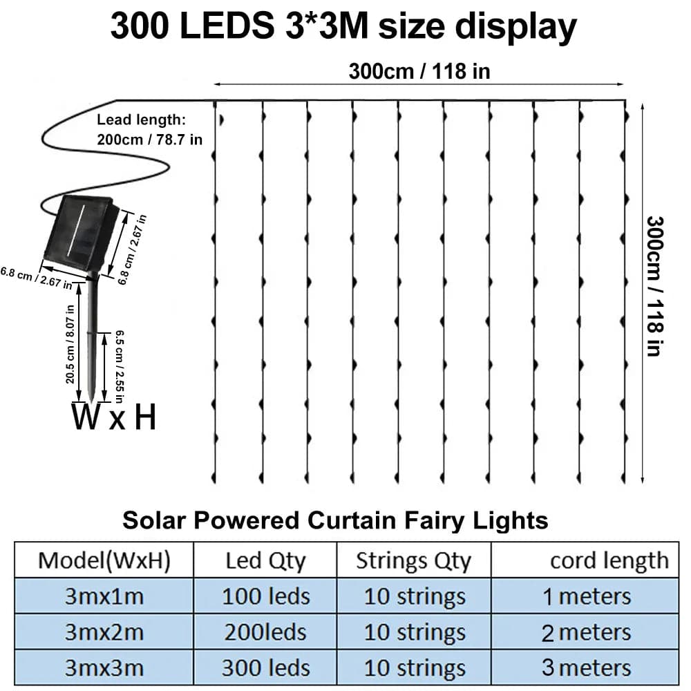 Solar Curtain Light LED Outdoor Waterproof 300leds Garland Decoration String Lights Yard Christmas Fairy Garland String Lights