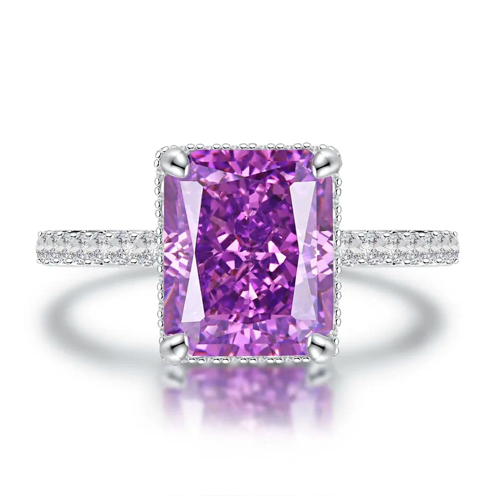 Sterling Silver Purple Diamond Ring - Moissanite Birthstone Fine Jewelry