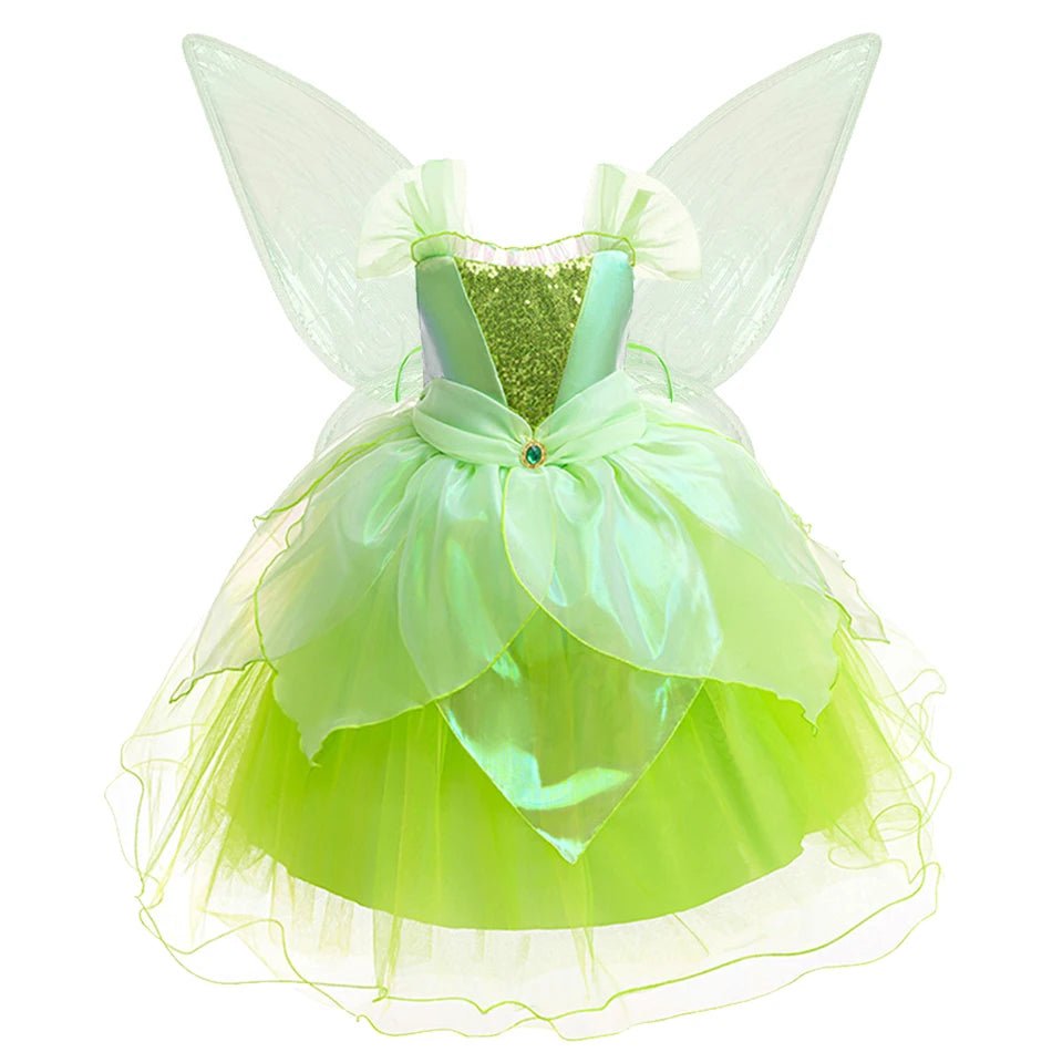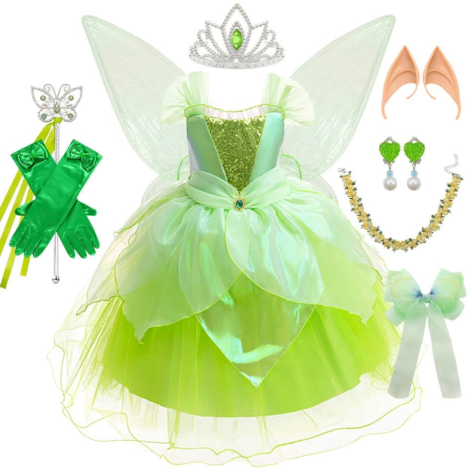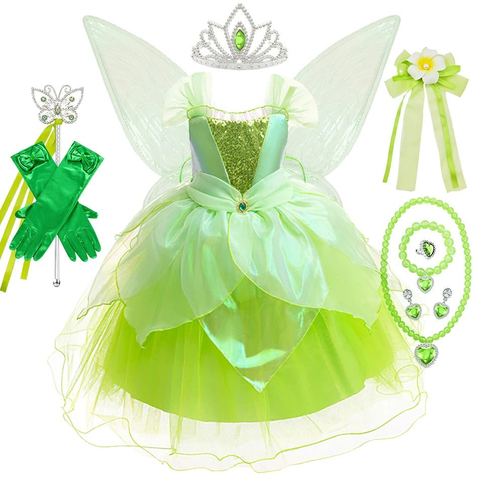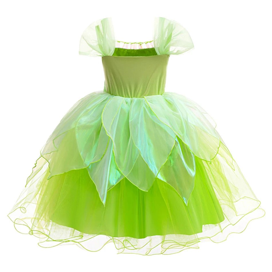 Tinker Bell Girls Fairy Princess Dress Kid Cosplay Elf Costume Tinkerbell Halloween Carnival Party Clothes Fantasy Green Vestido
