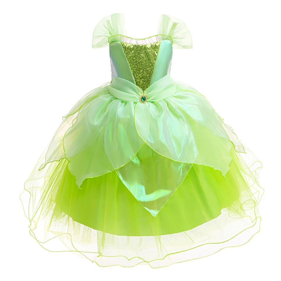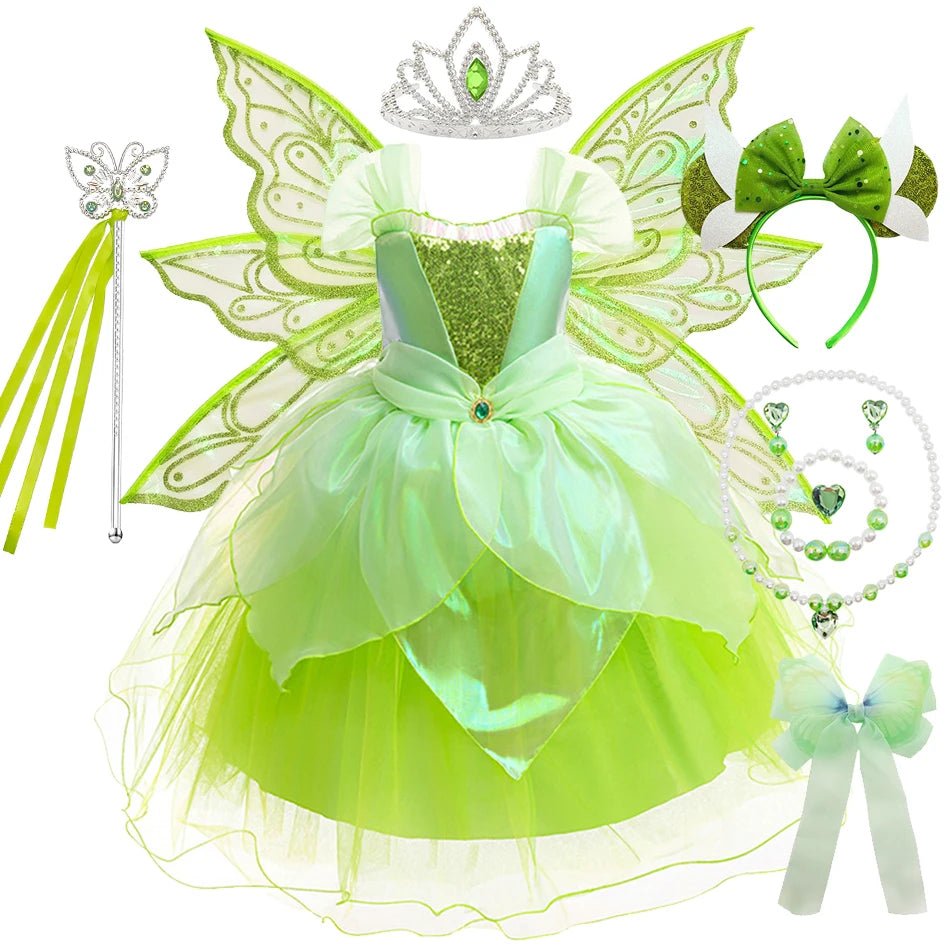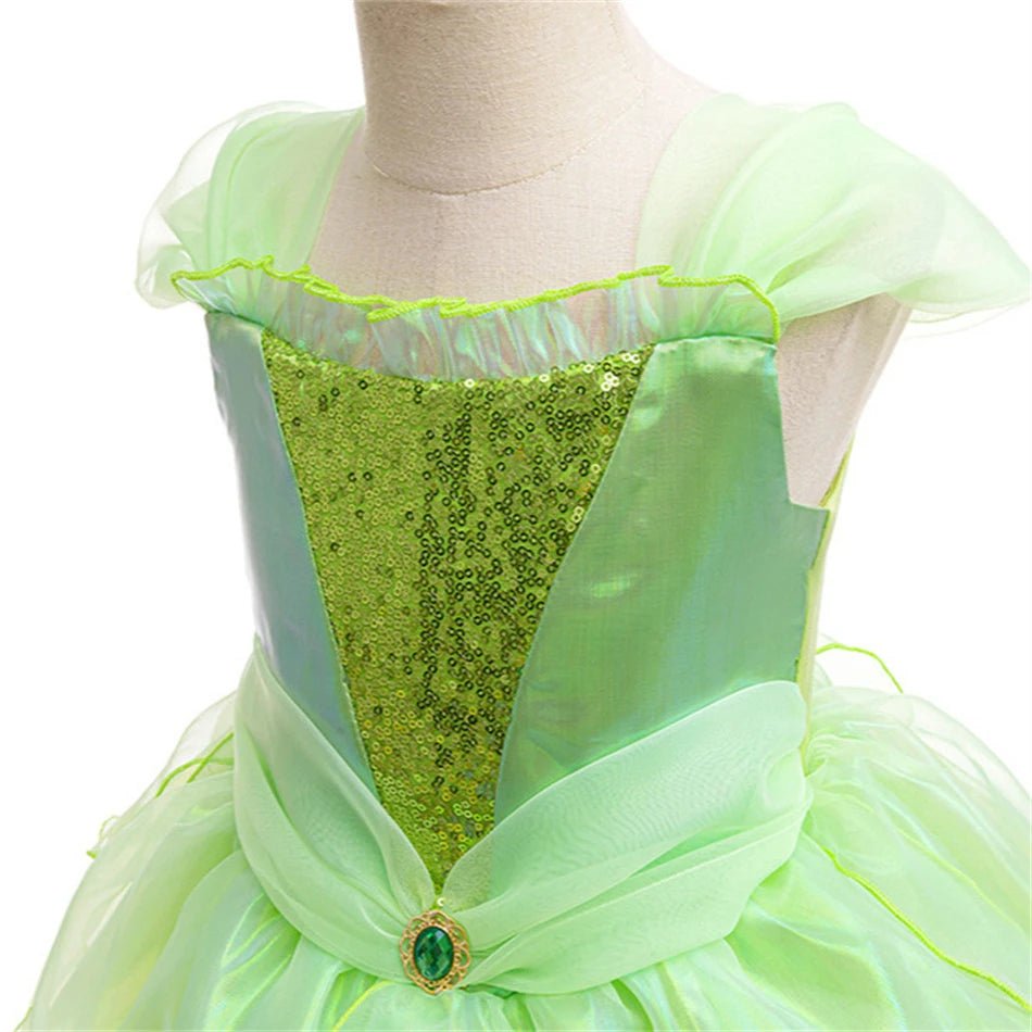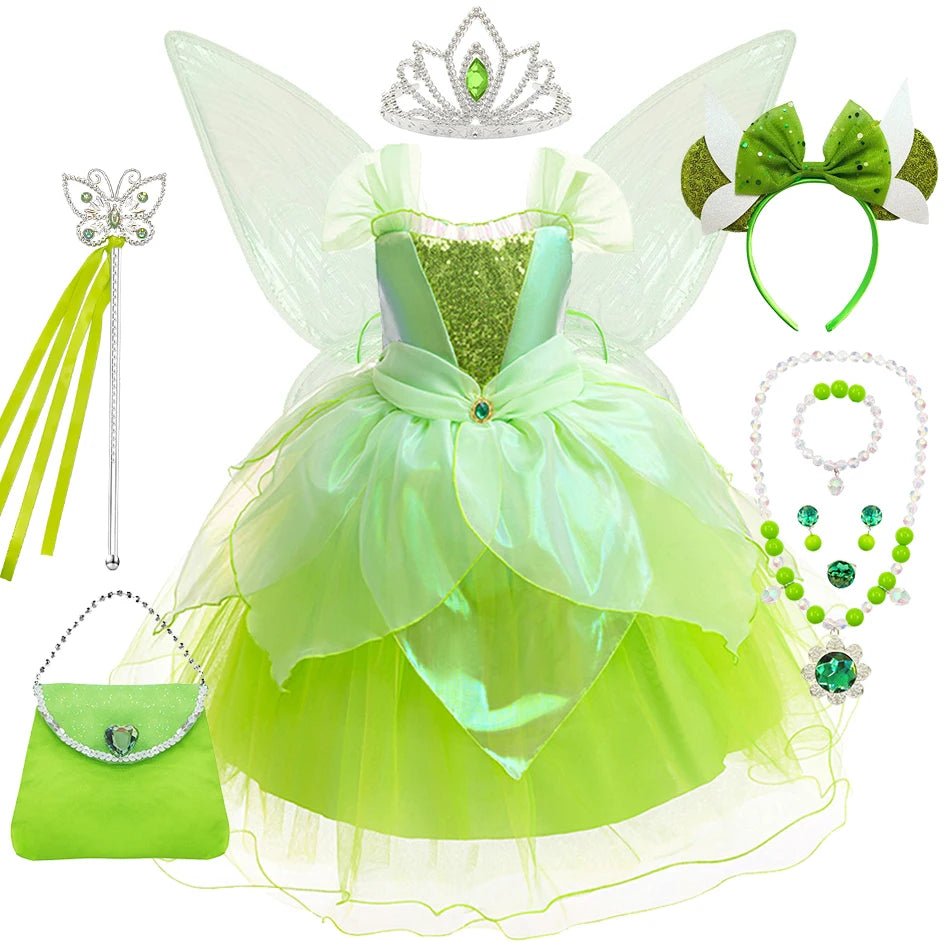 Tinker Bell Girls Fairy Princess Dress Kid Cosplay Elf Costume Tinkerbell Halloween Carnival Party Clothes Fantasy Green Vestido