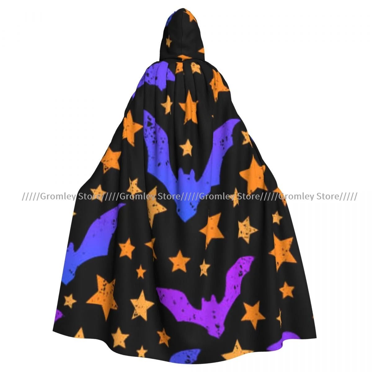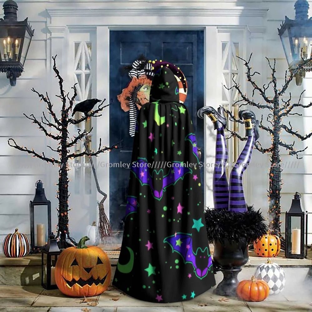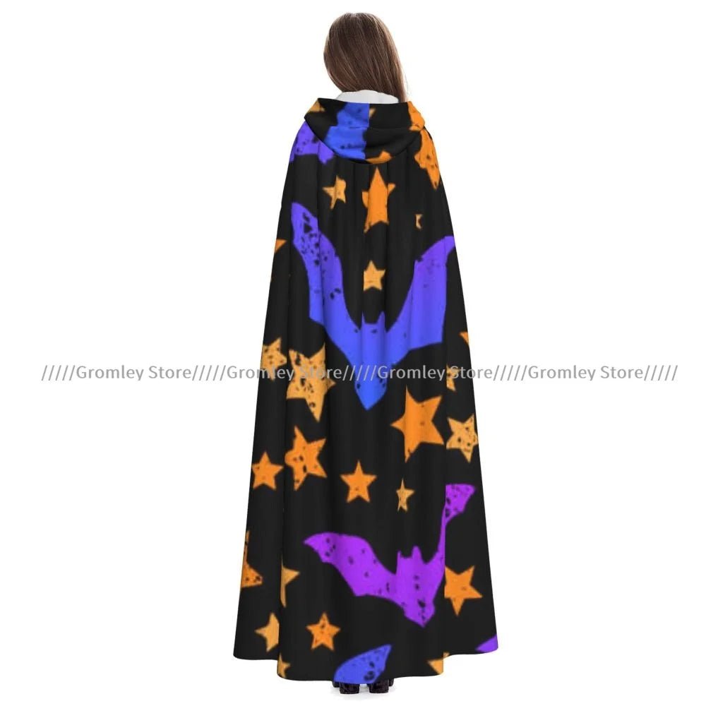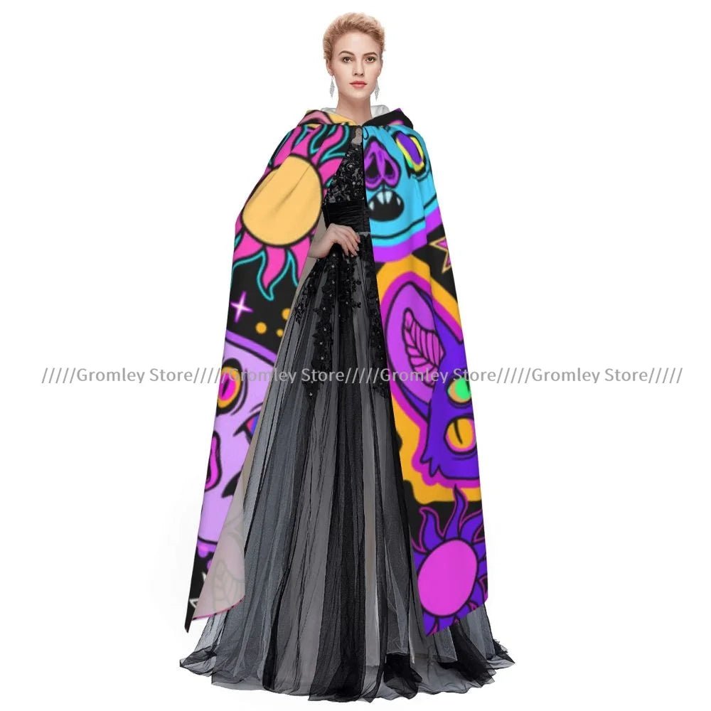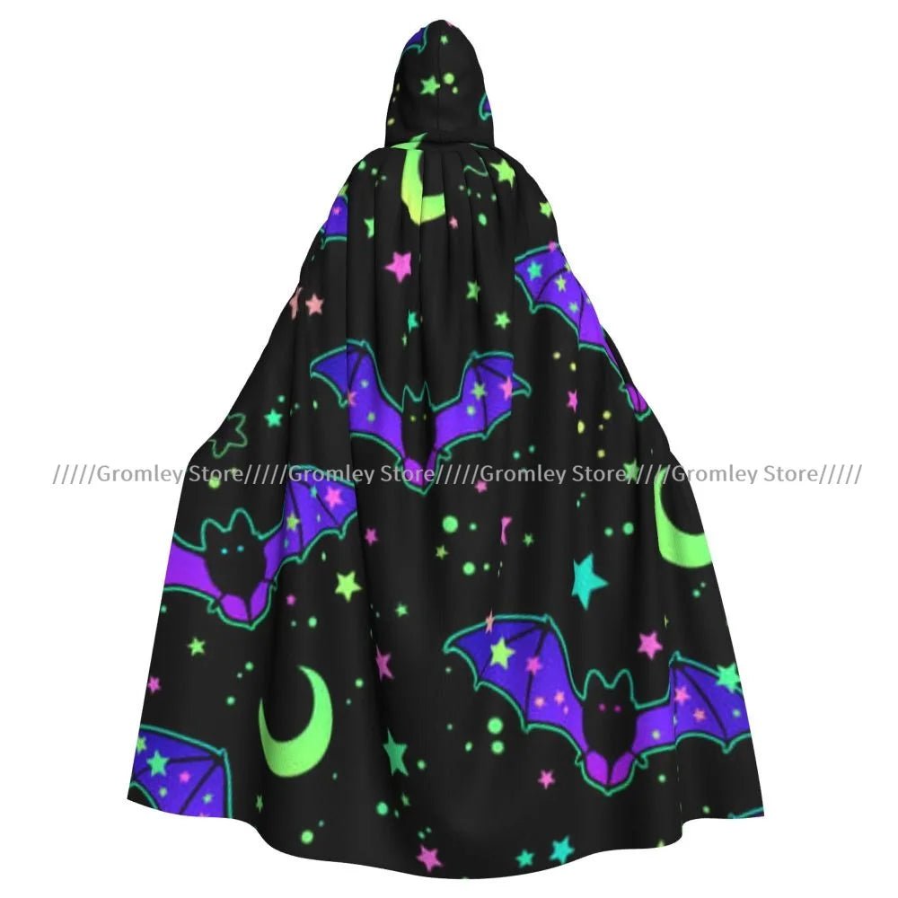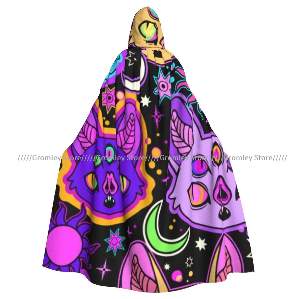Unisex Halloween Cloak Funny Psychedelic Bats Cape Hooded Medieval Costume Witch Wicca Vampire
