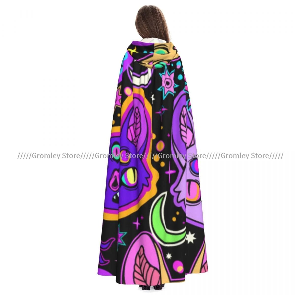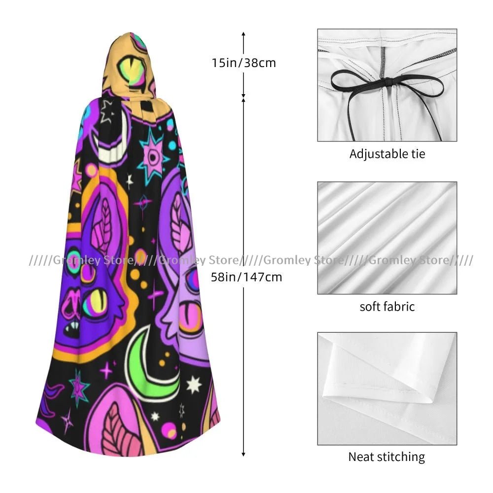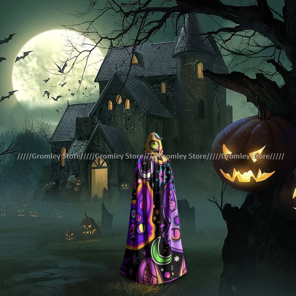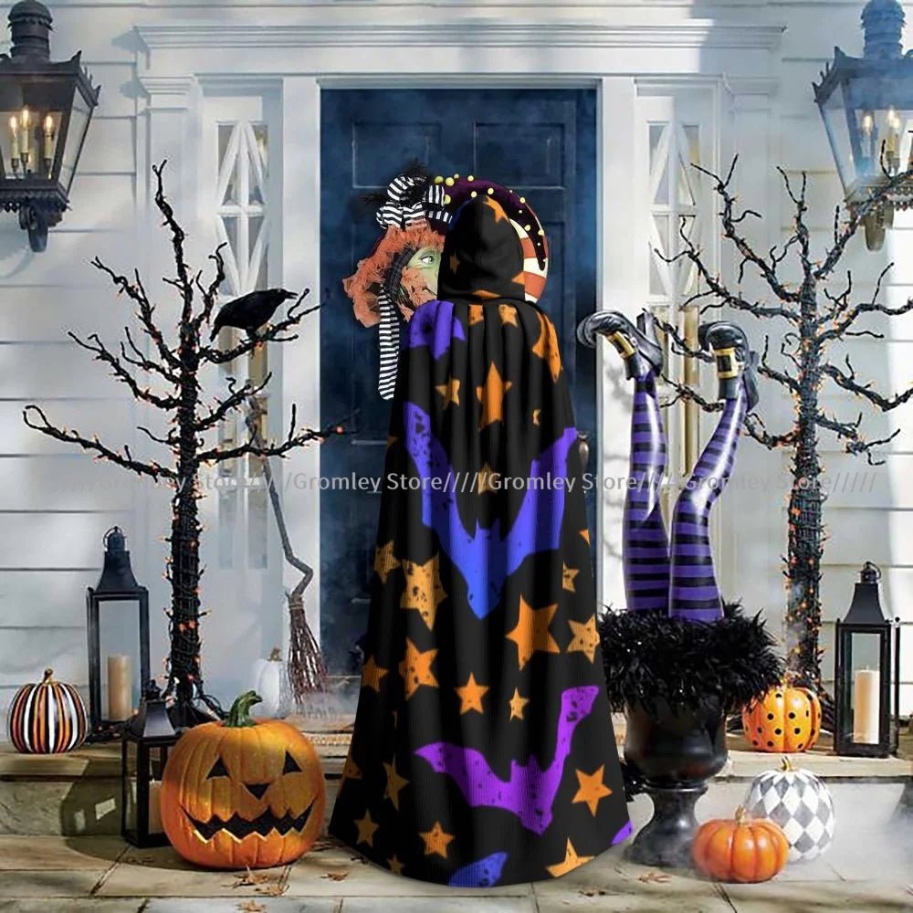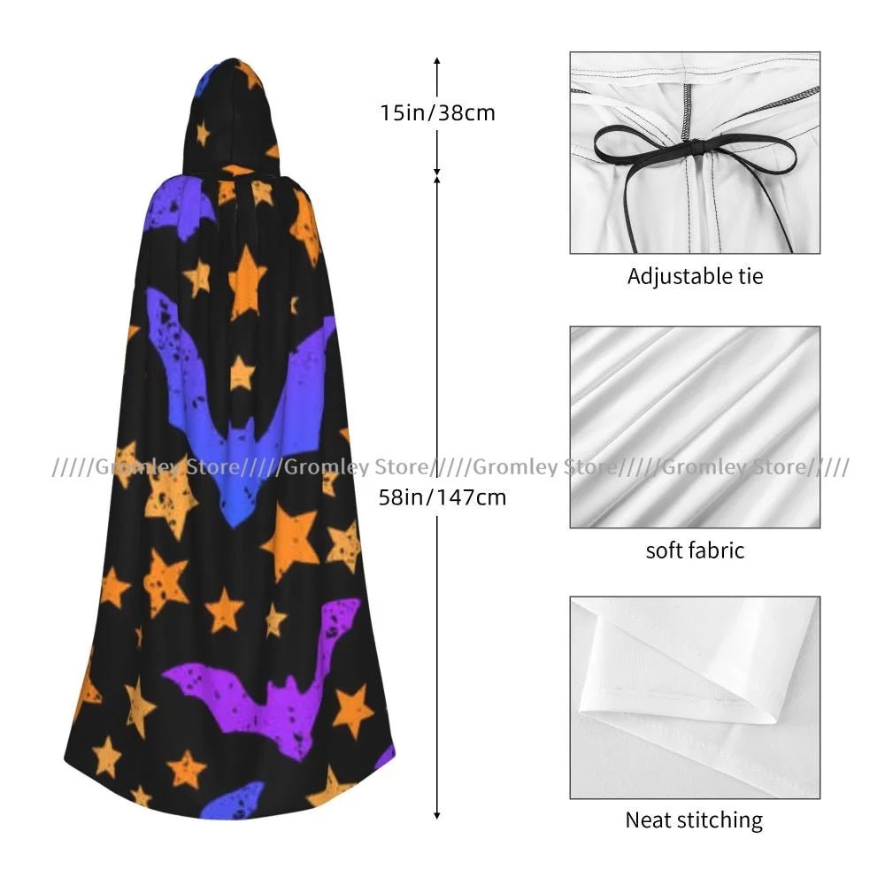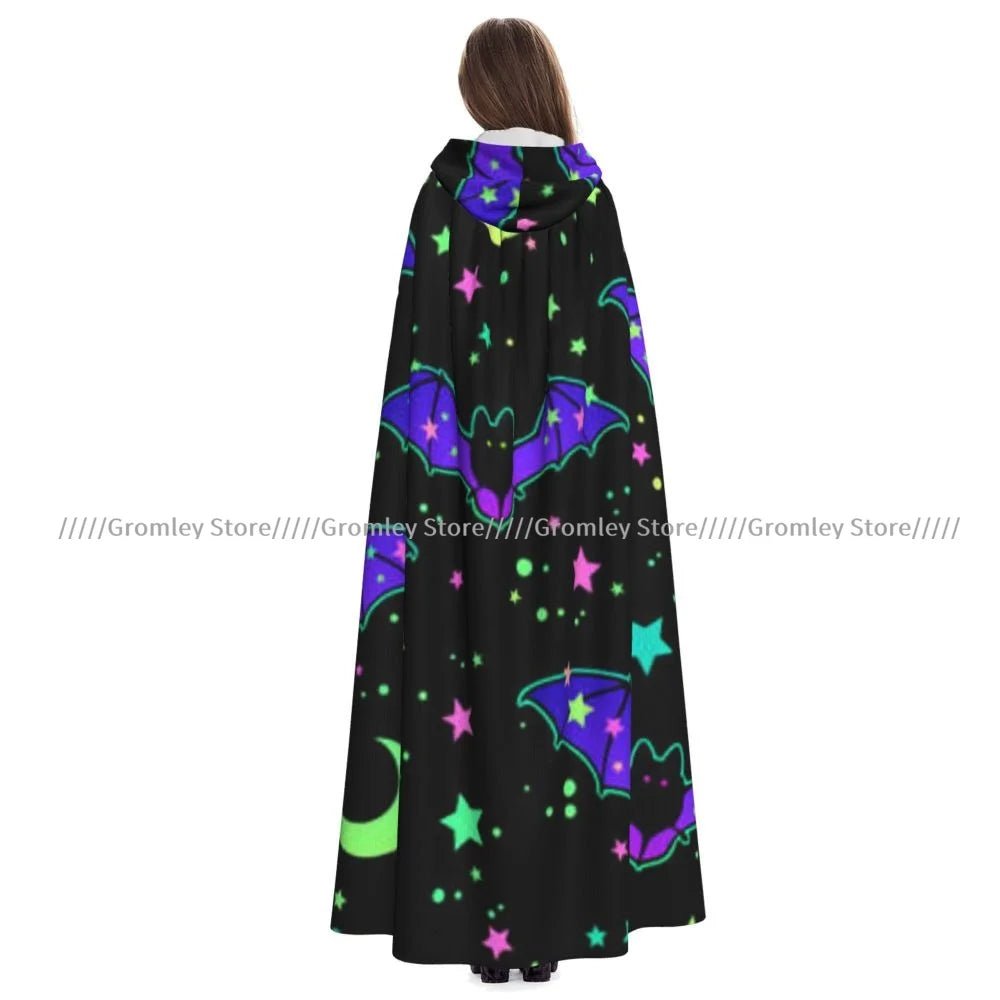 Unisex Halloween Cloak Funny Psychedelic Bats Cape Hooded Medieval Costume Witch Wicca Vampire