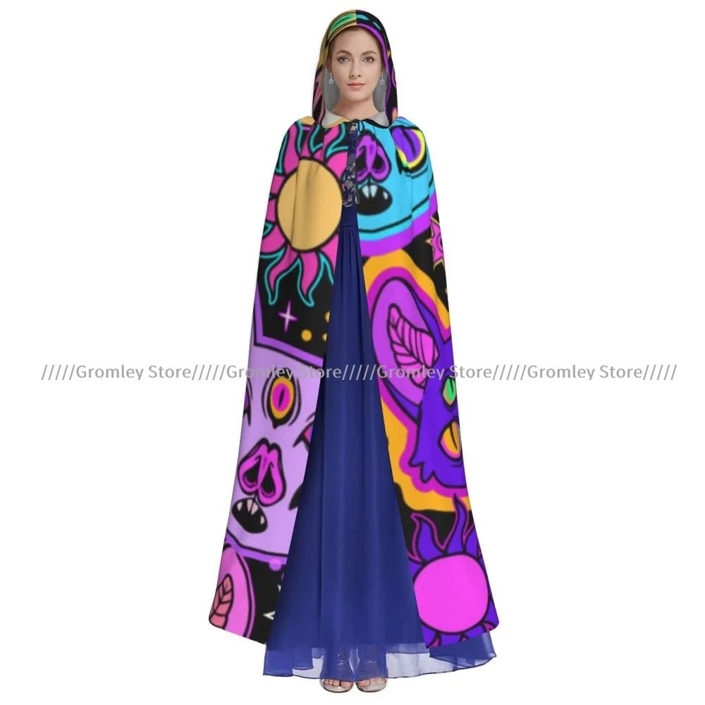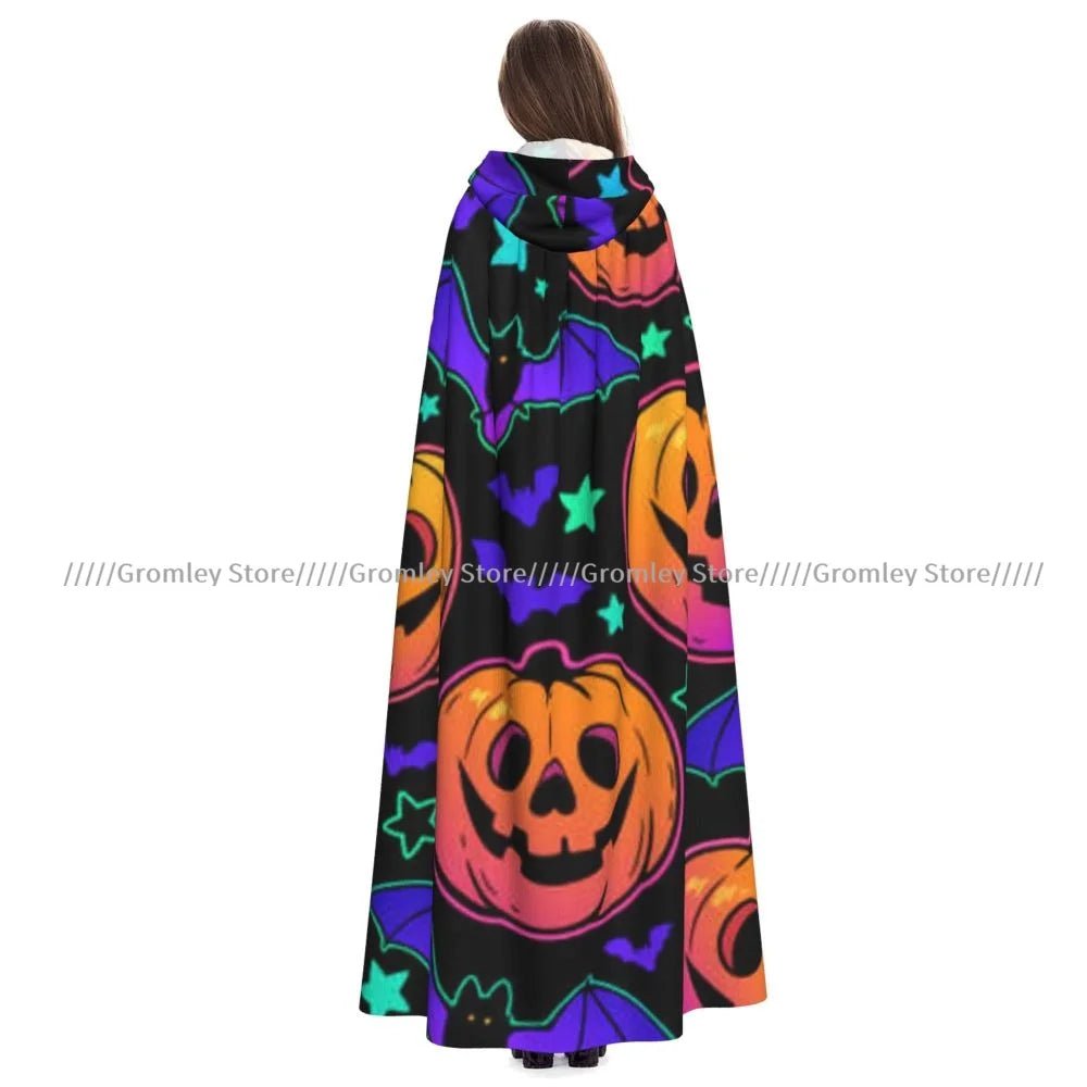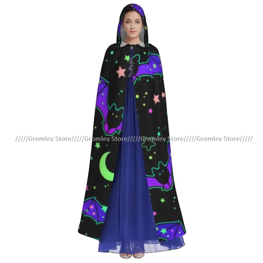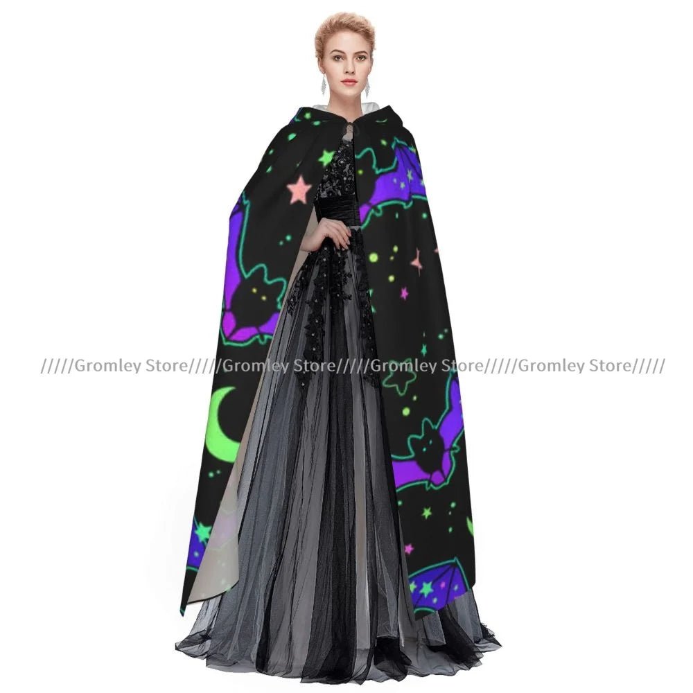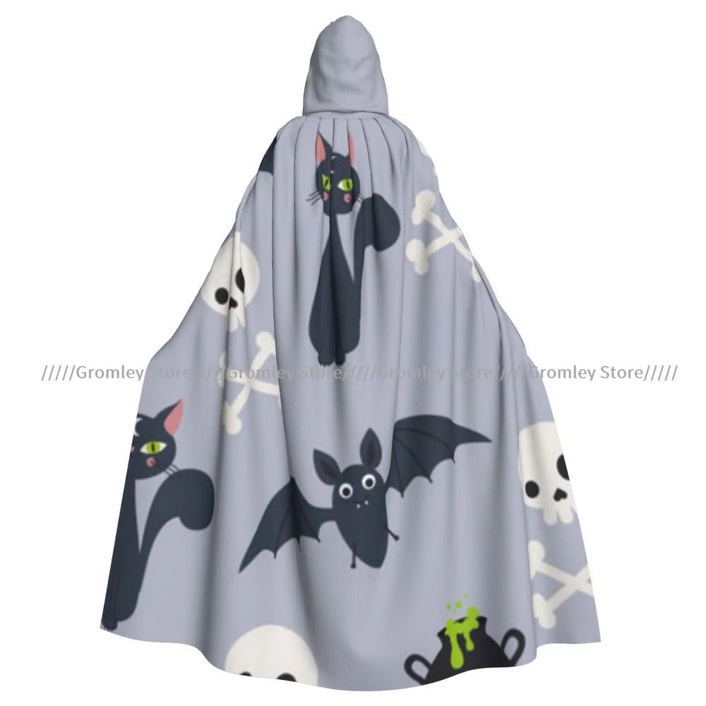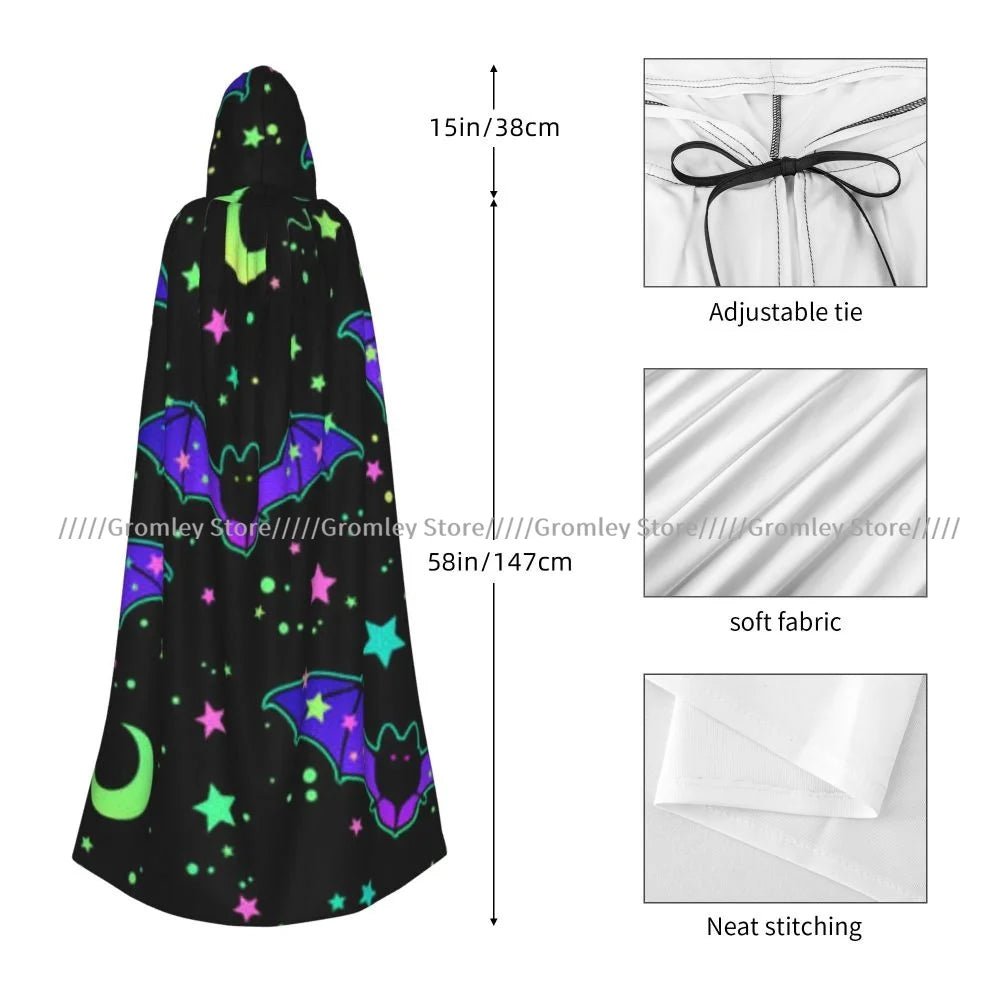 Unisex Halloween Cloak Funny Psychedelic Bats Cape Hooded Medieval Costume Witch Wicca Vampire