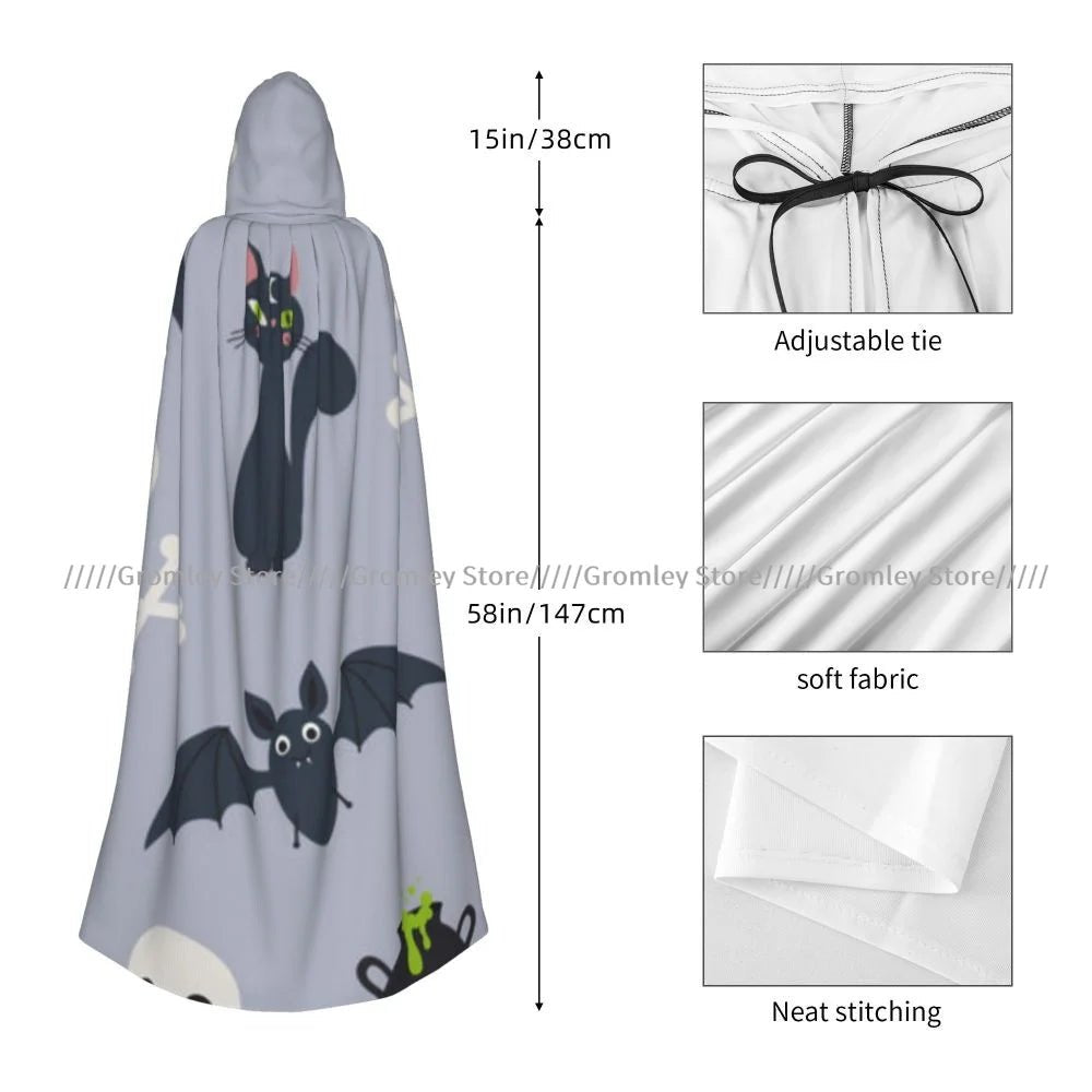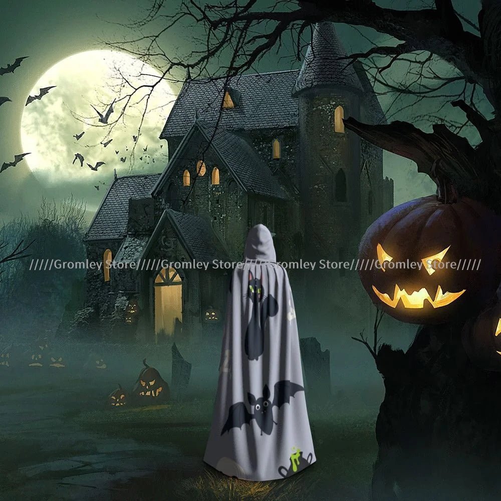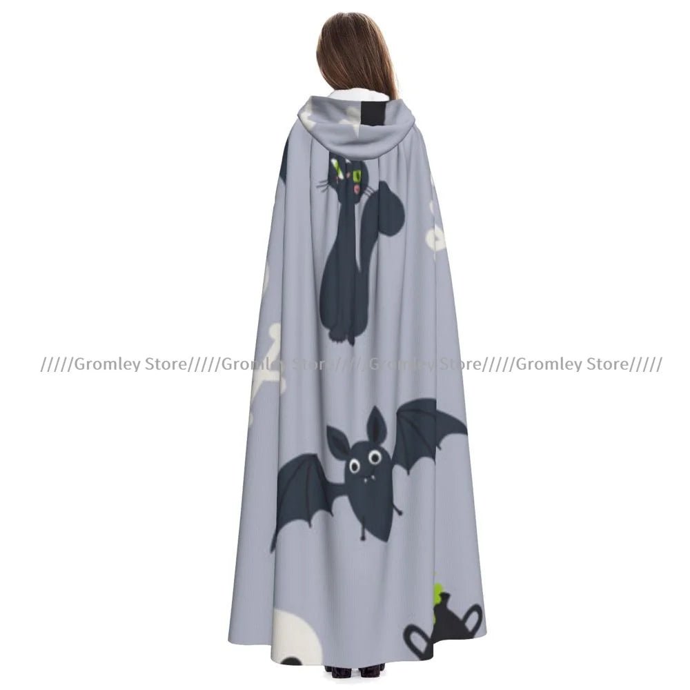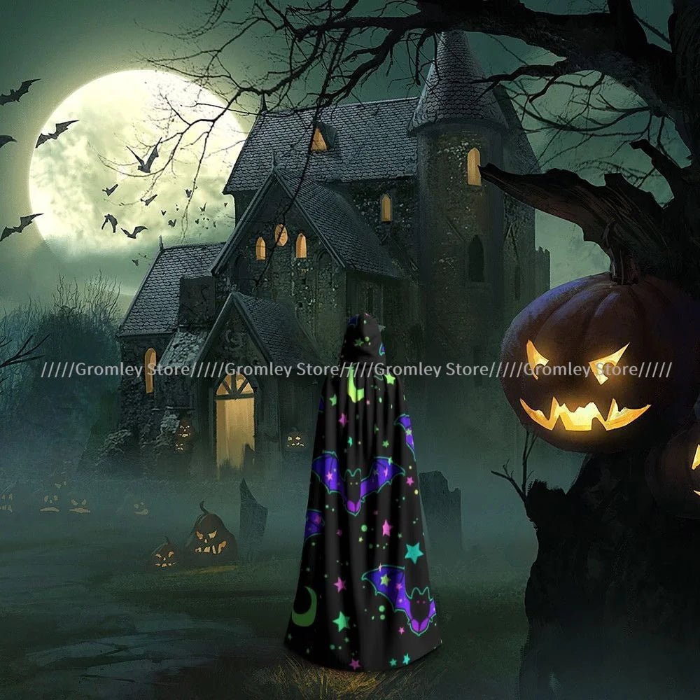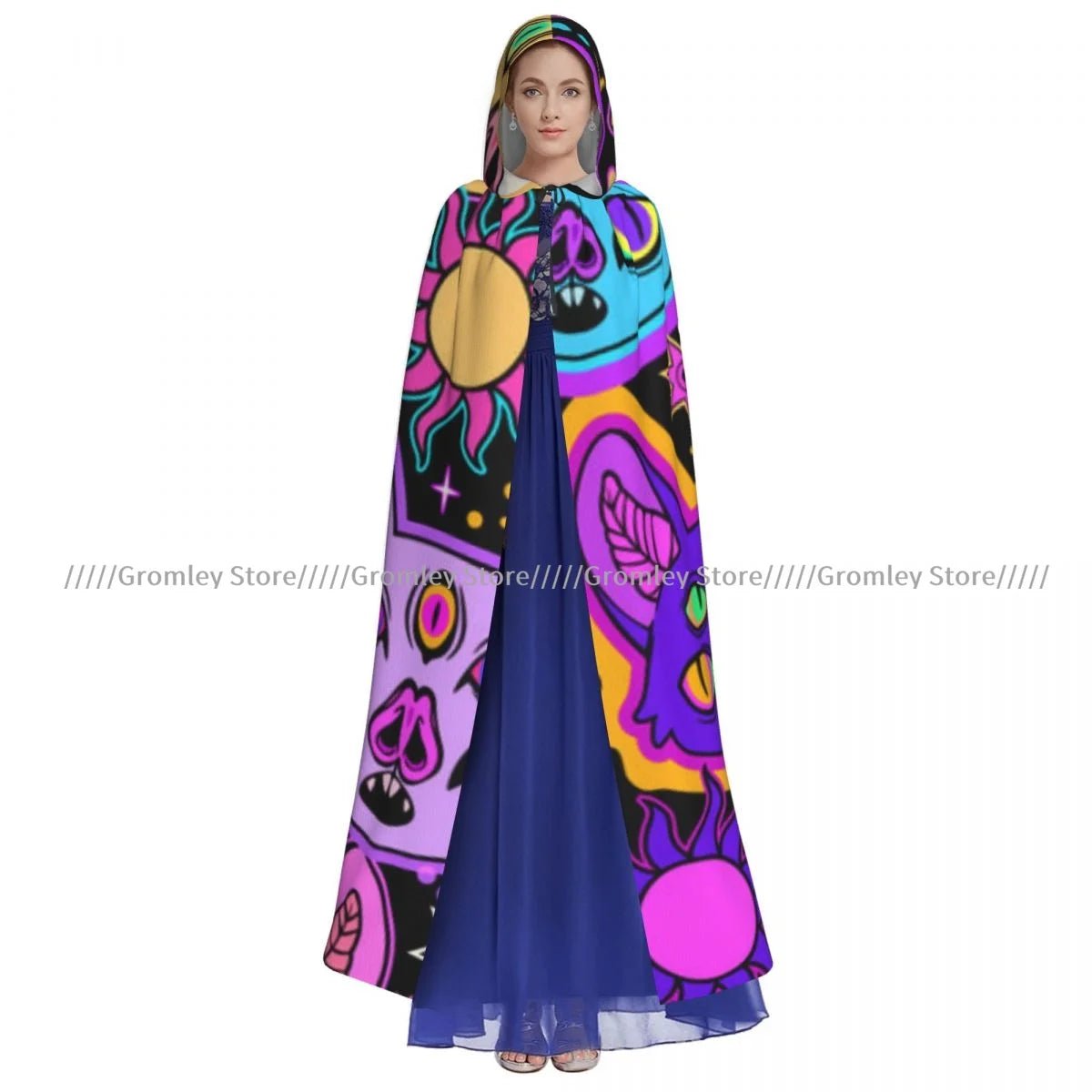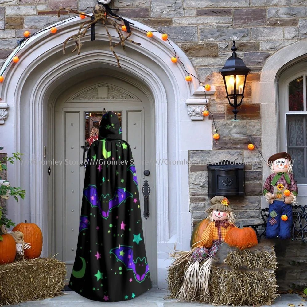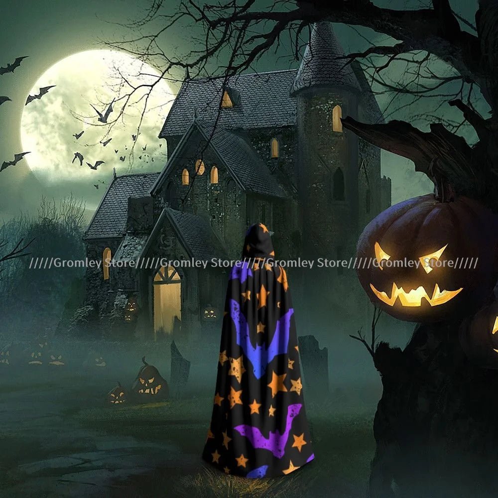 Unisex Halloween Cloak Funny Psychedelic Bats Cape Hooded Medieval Costume Witch Wicca Vampire