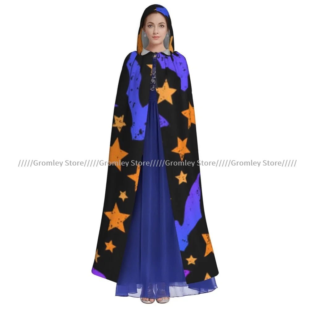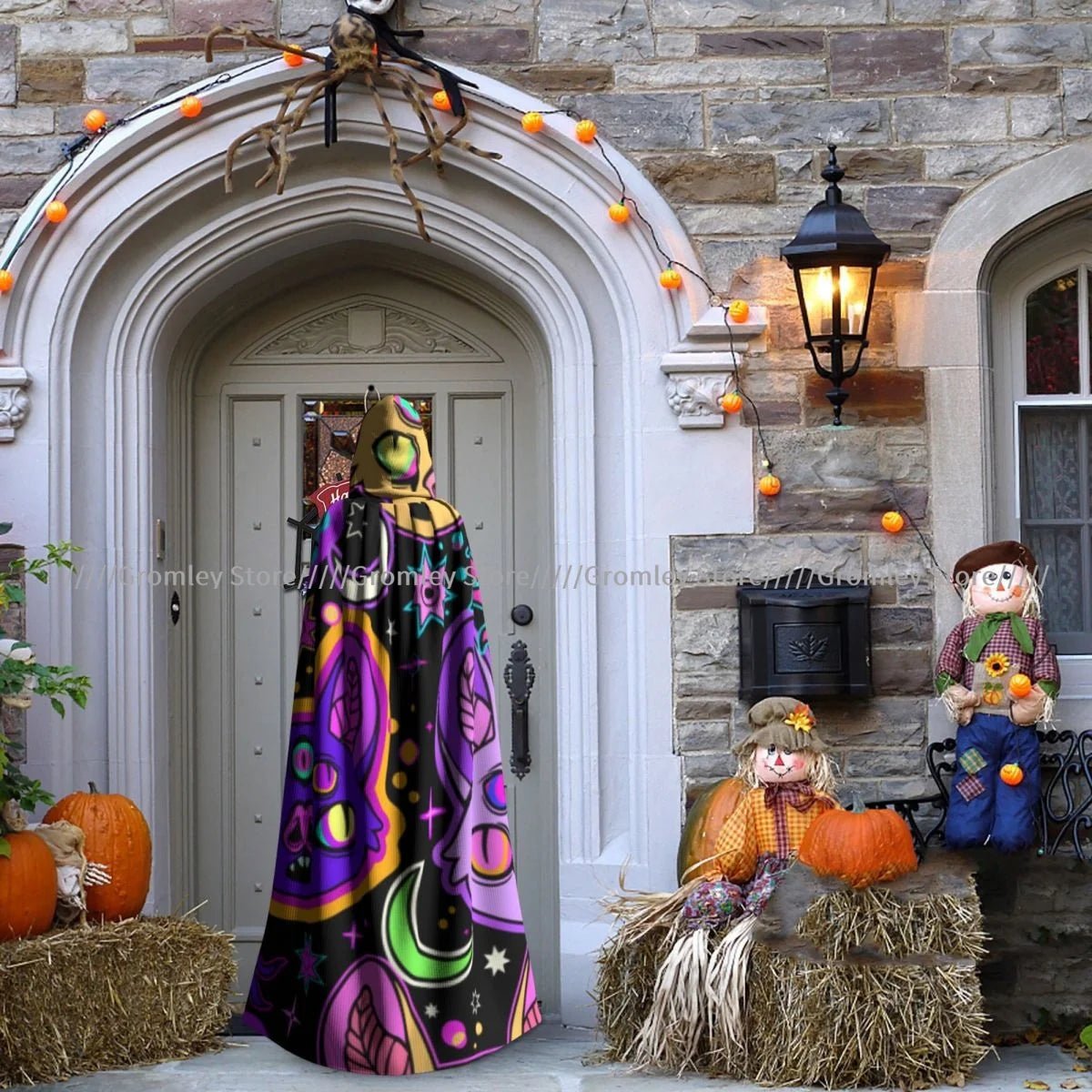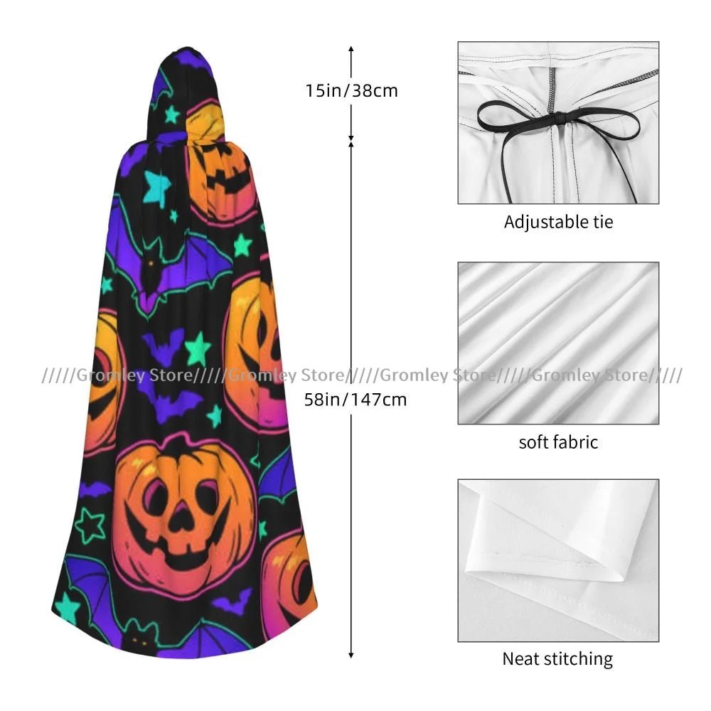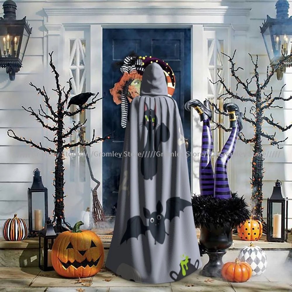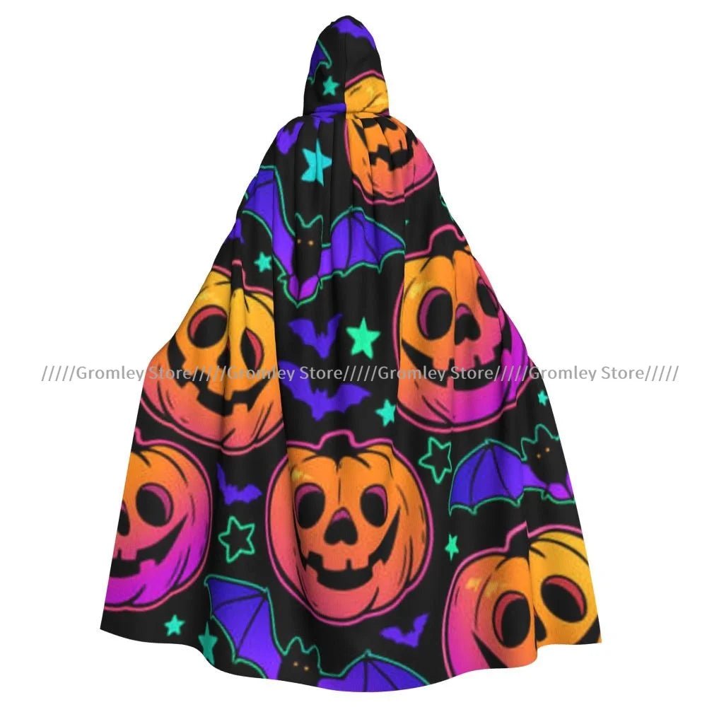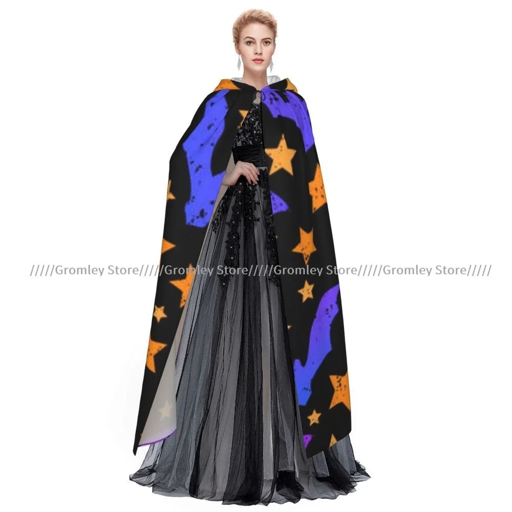 Unisex Halloween Cloak Funny Psychedelic Bats Cape Hooded Medieval Costume Witch Wicca Vampire