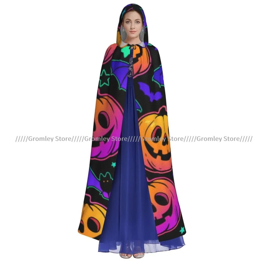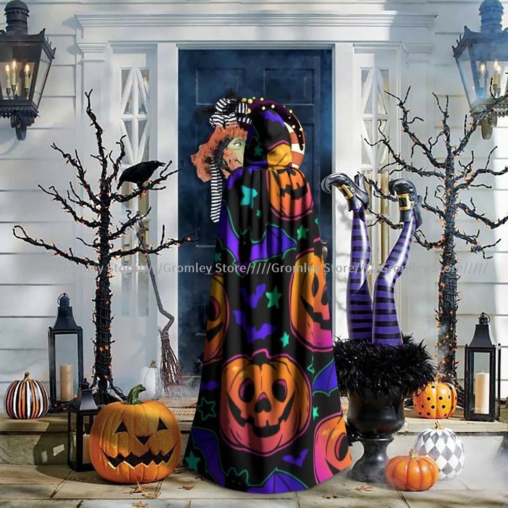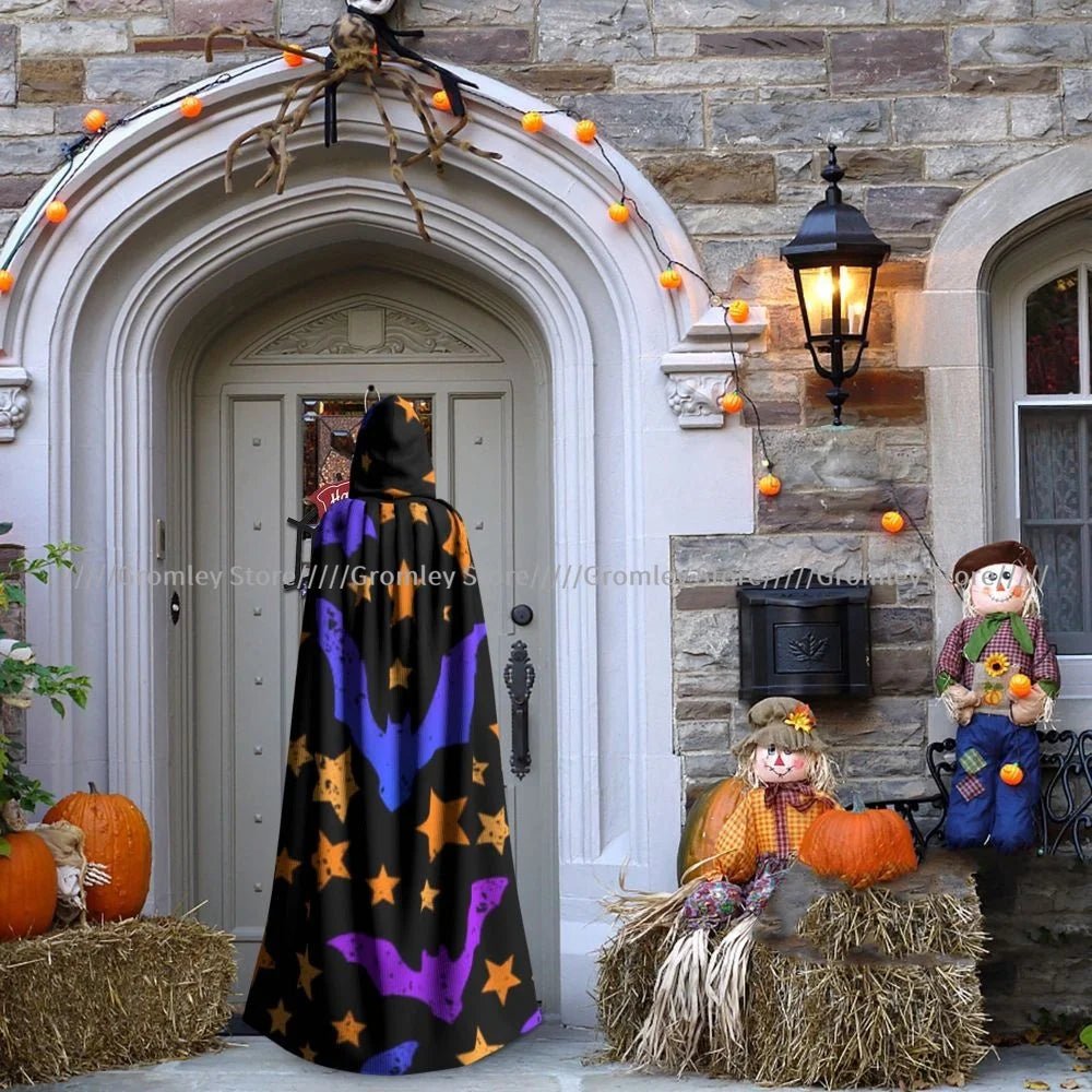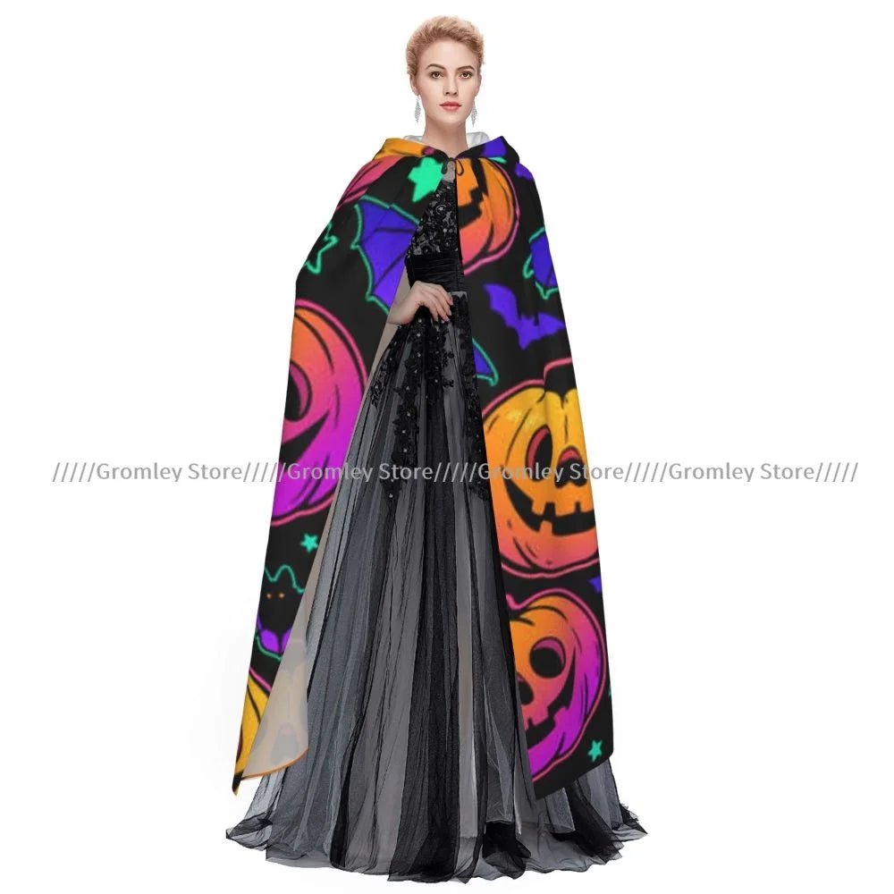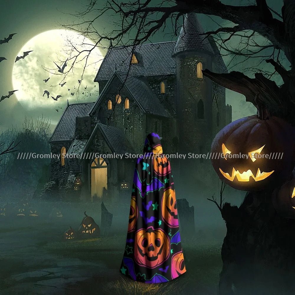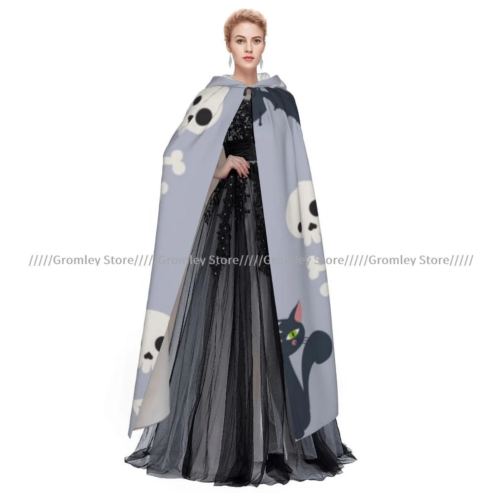 Unisex Halloween Cloak Funny Psychedelic Bats Cape Hooded Medieval Costume Witch Wicca Vampire