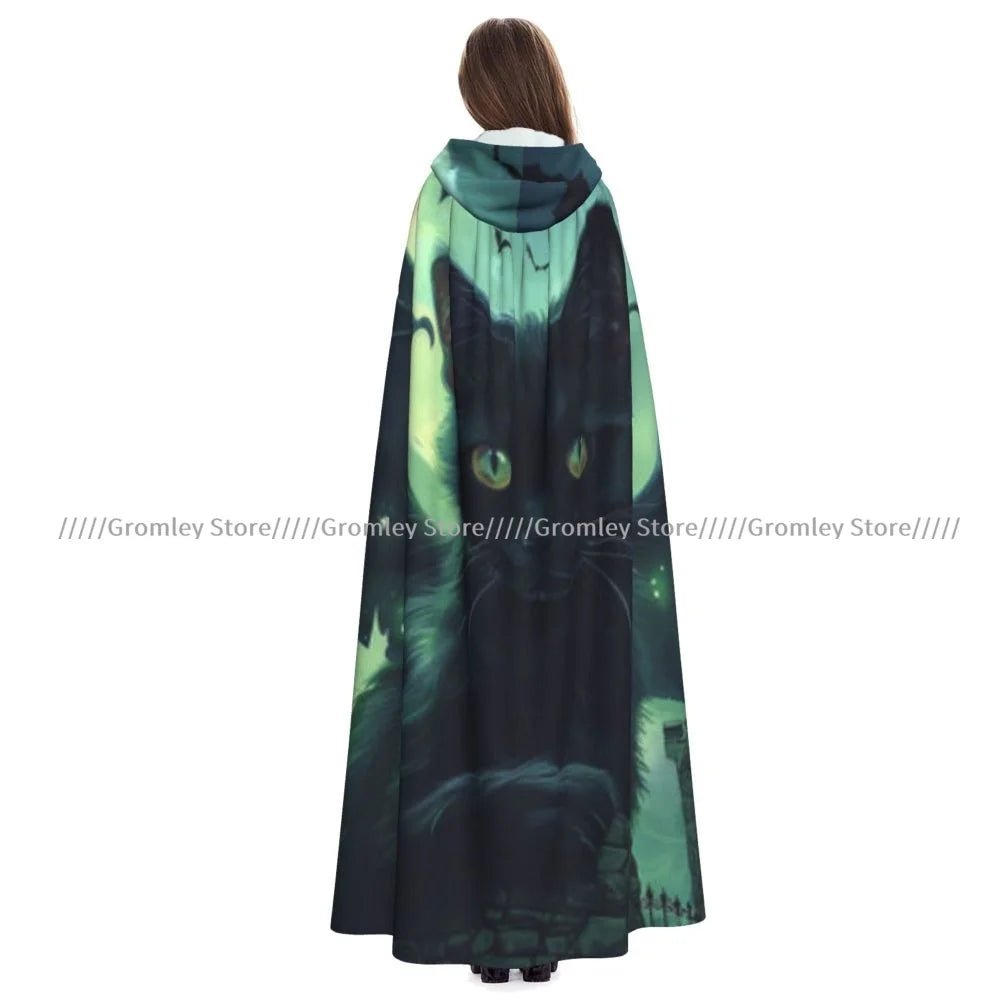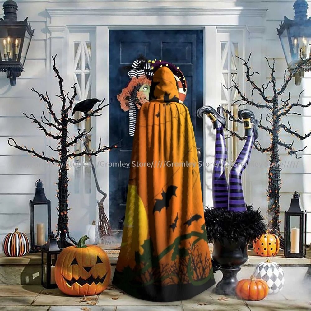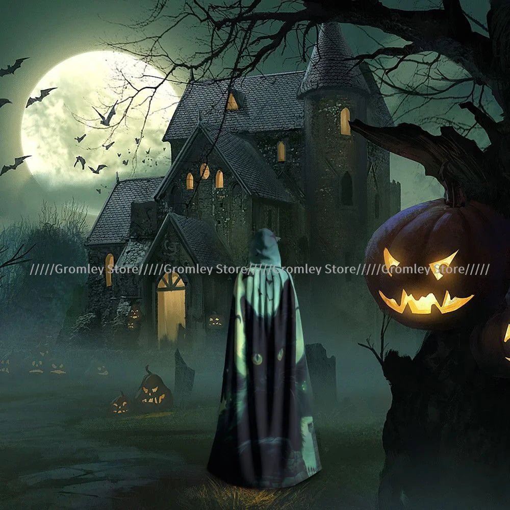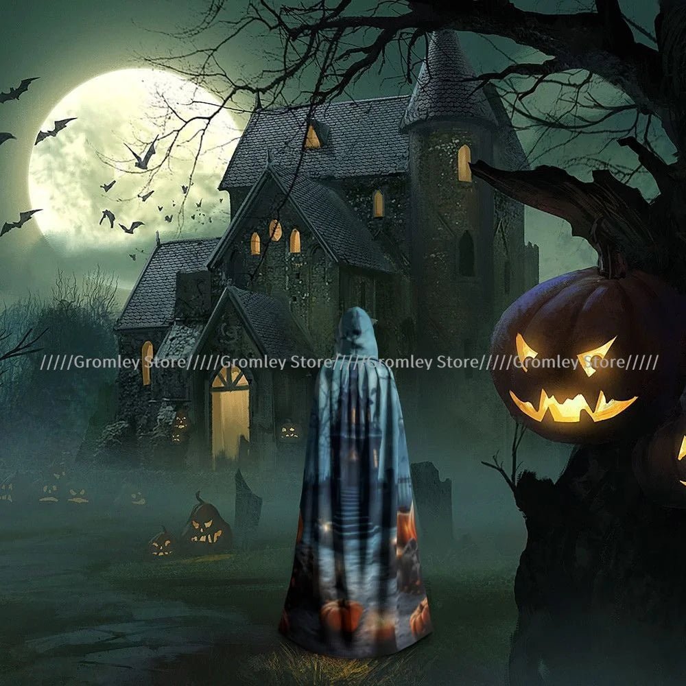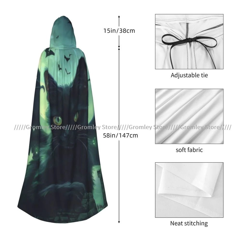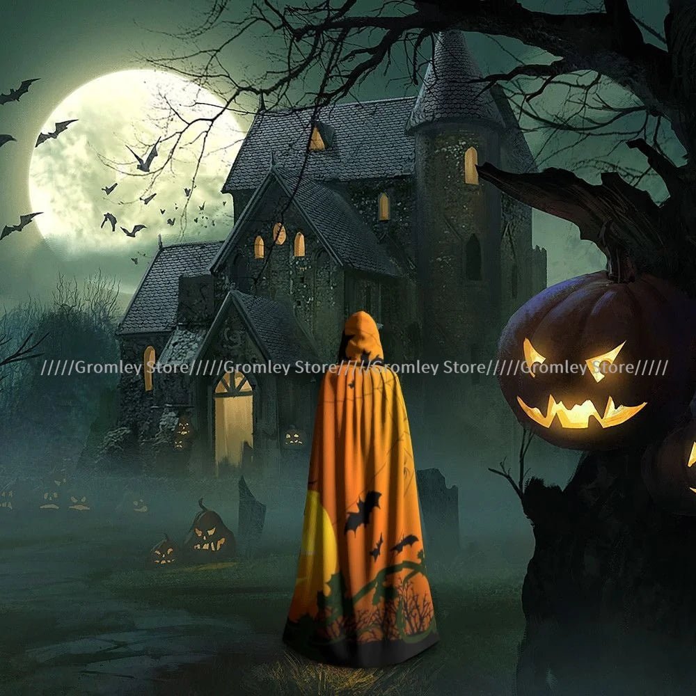 Unisex Halloween Cloak Funny Psychedelic Bats Cape Hooded Medieval Costume Witch Wicca Vampire
