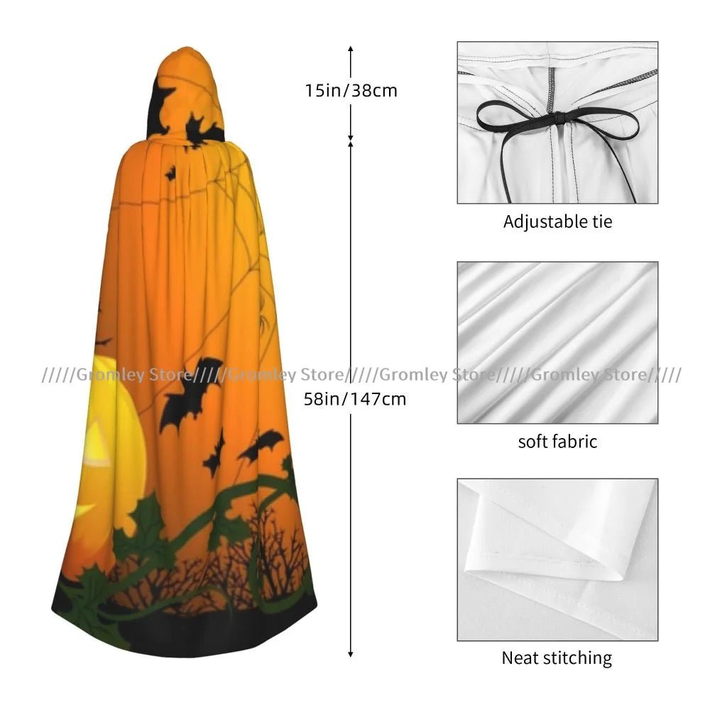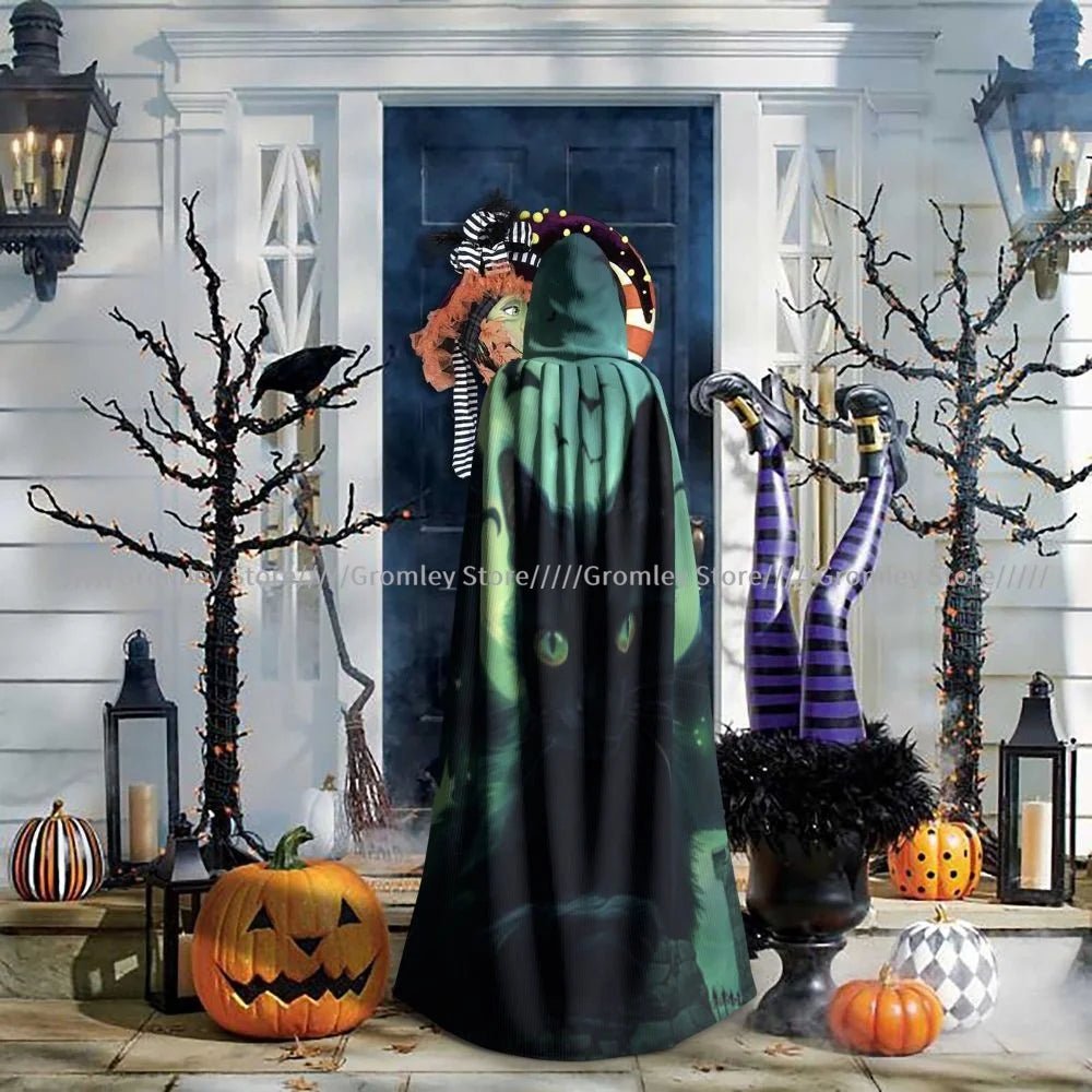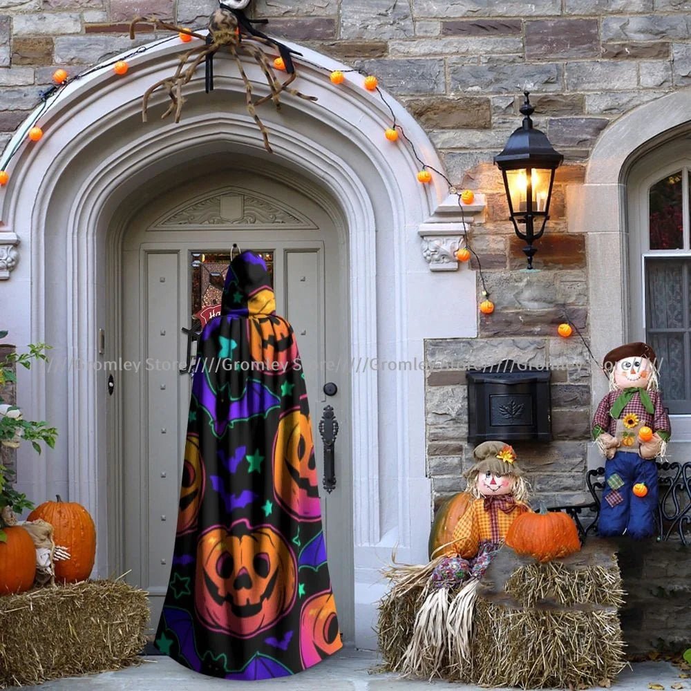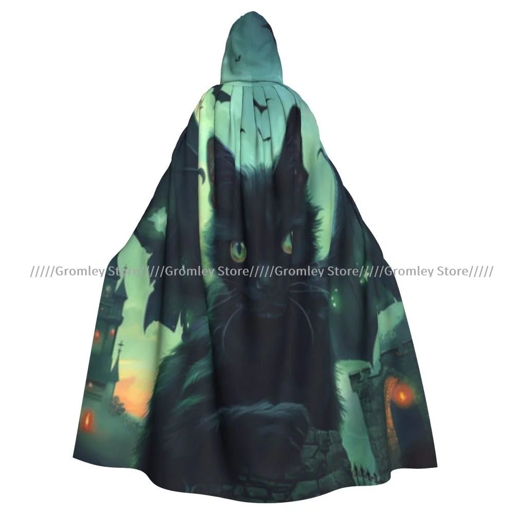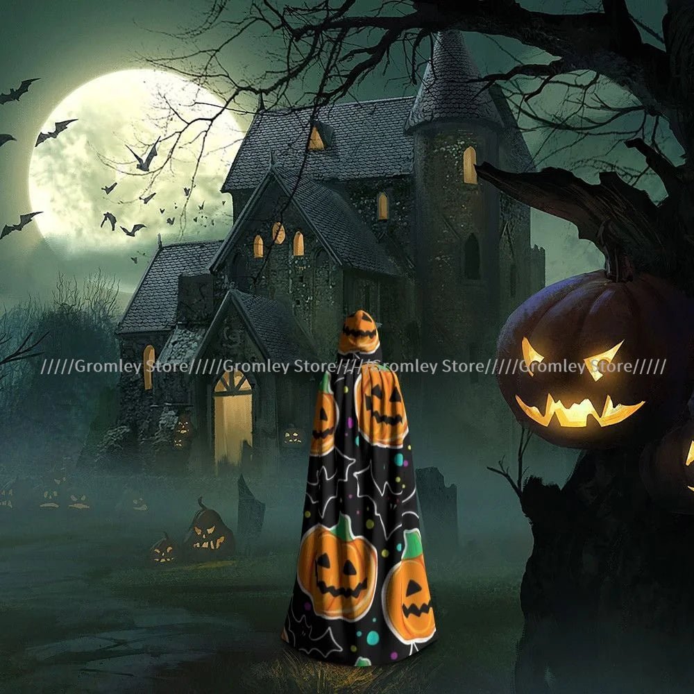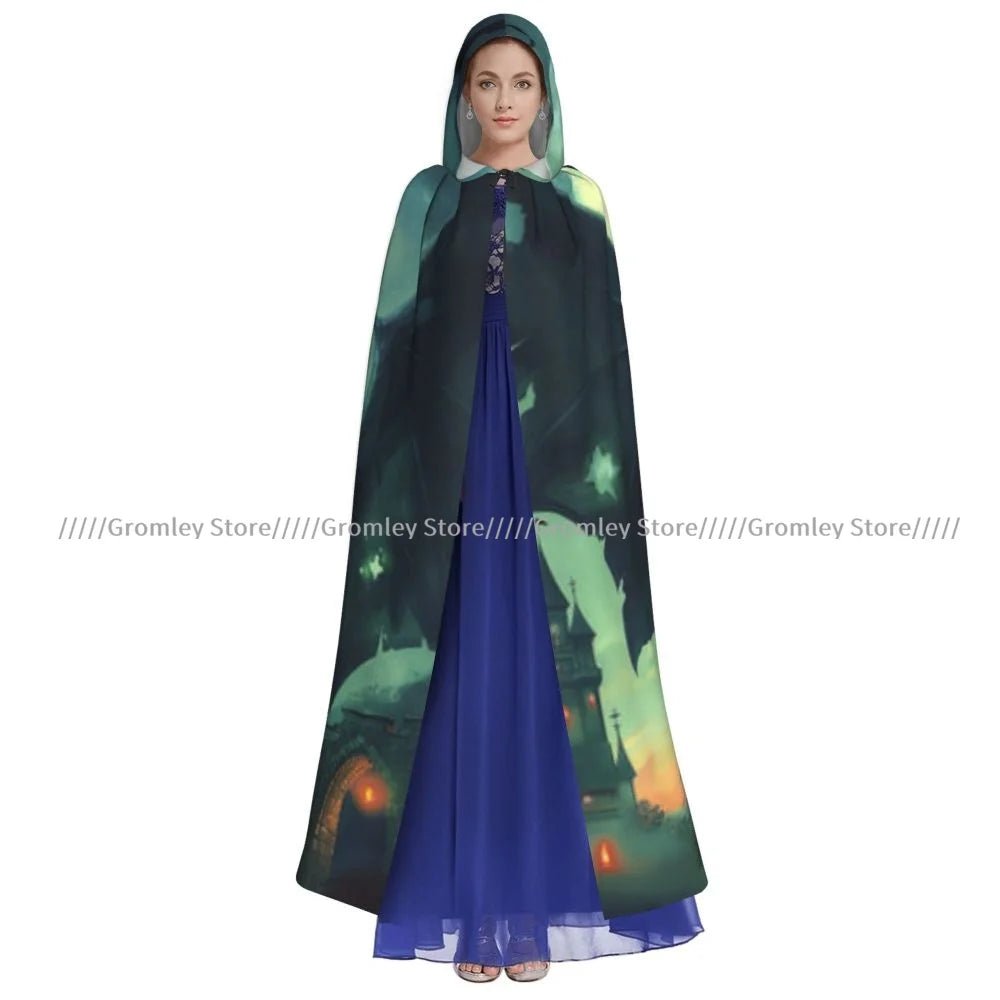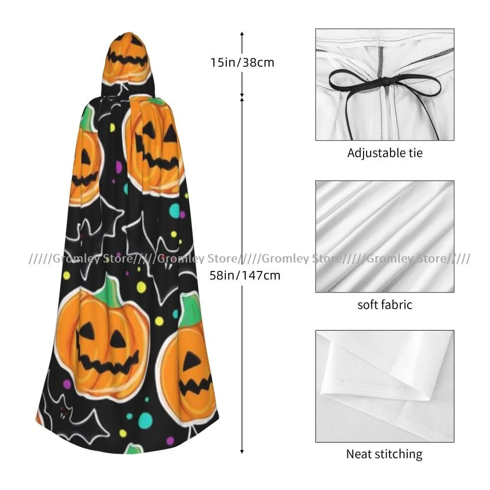 Unisex Halloween Cloak Funny Psychedelic Bats Cape Hooded Medieval Costume Witch Wicca Vampire