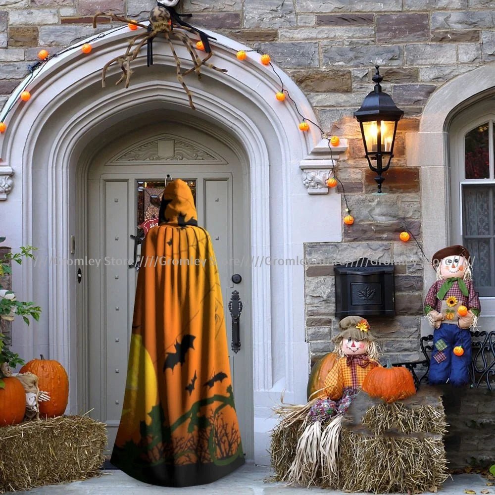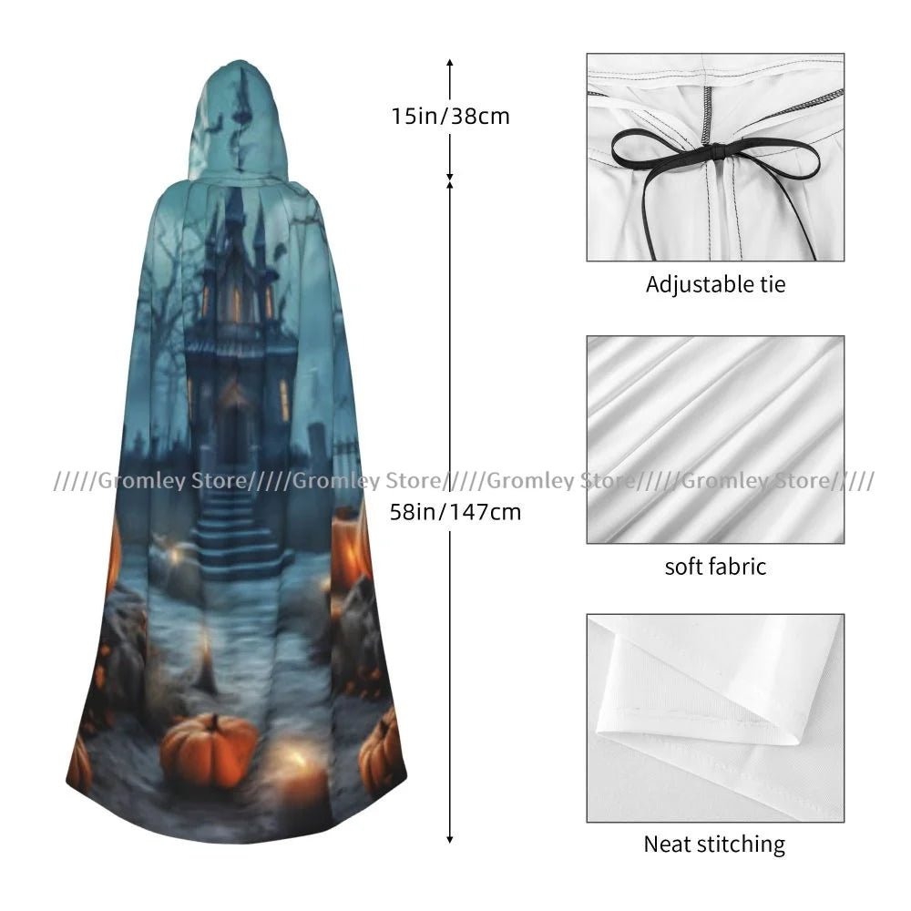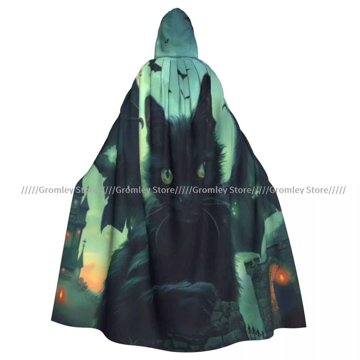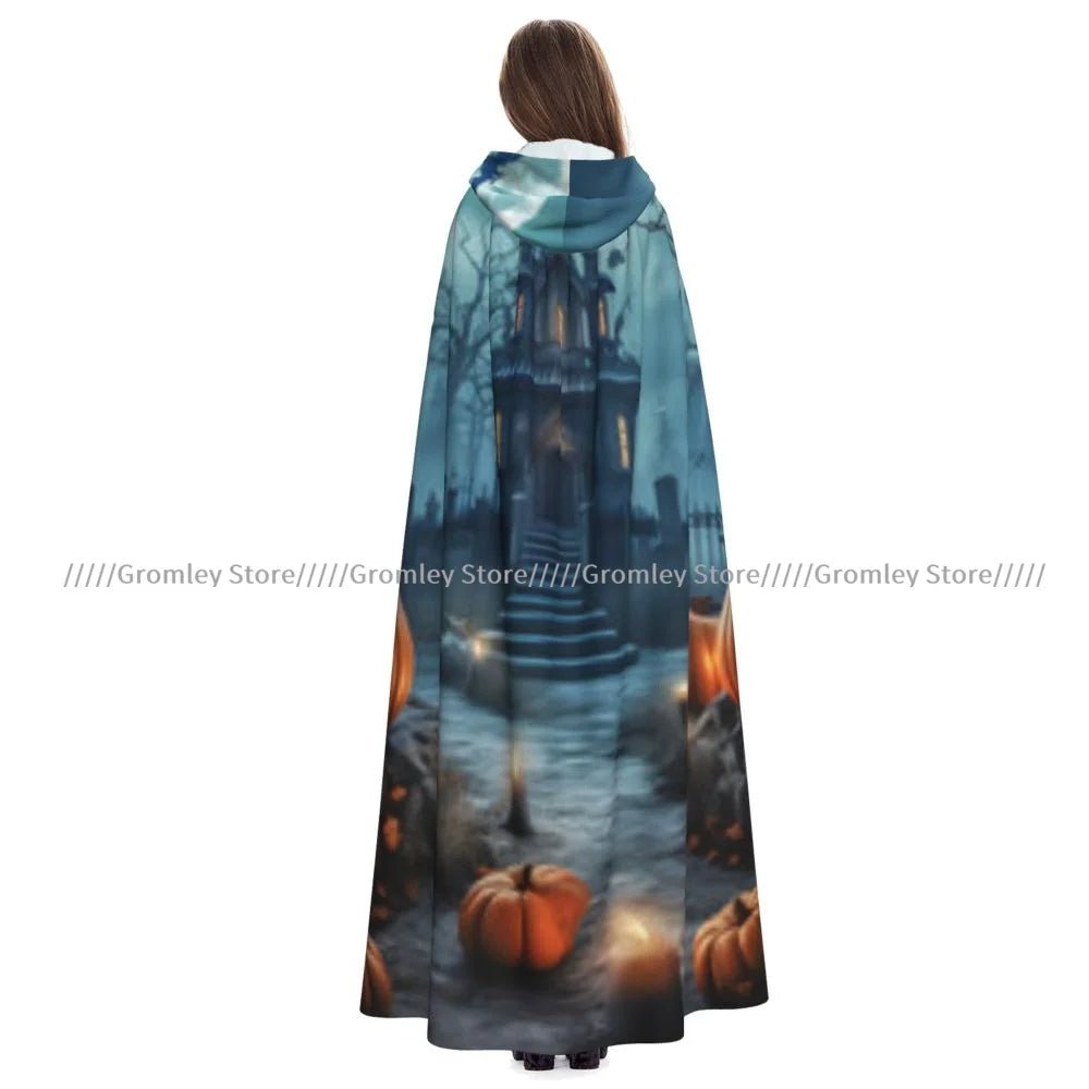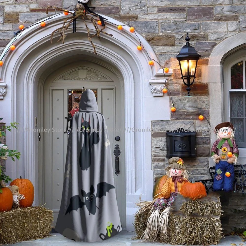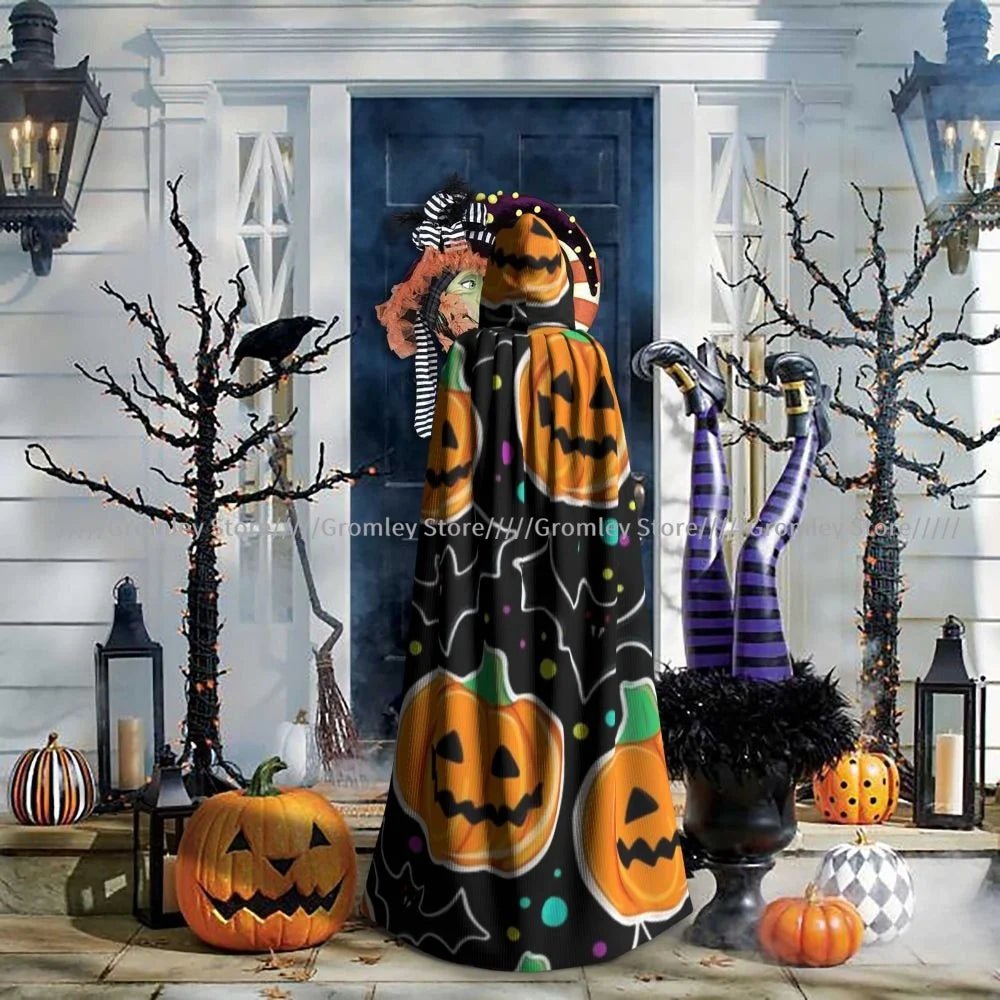 Unisex Halloween Cloak Funny Psychedelic Bats Cape Hooded Medieval Costume Witch Wicca Vampire