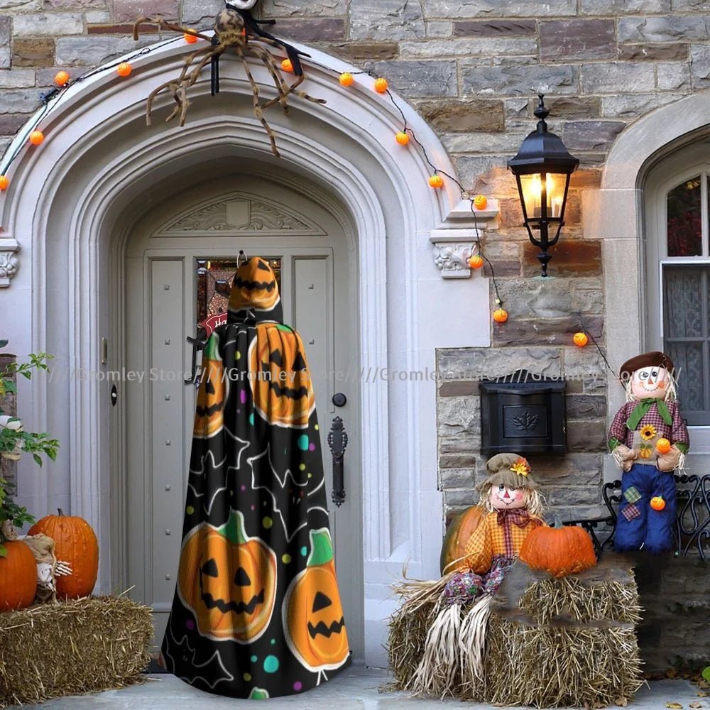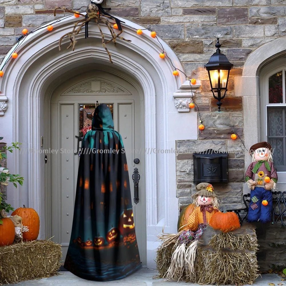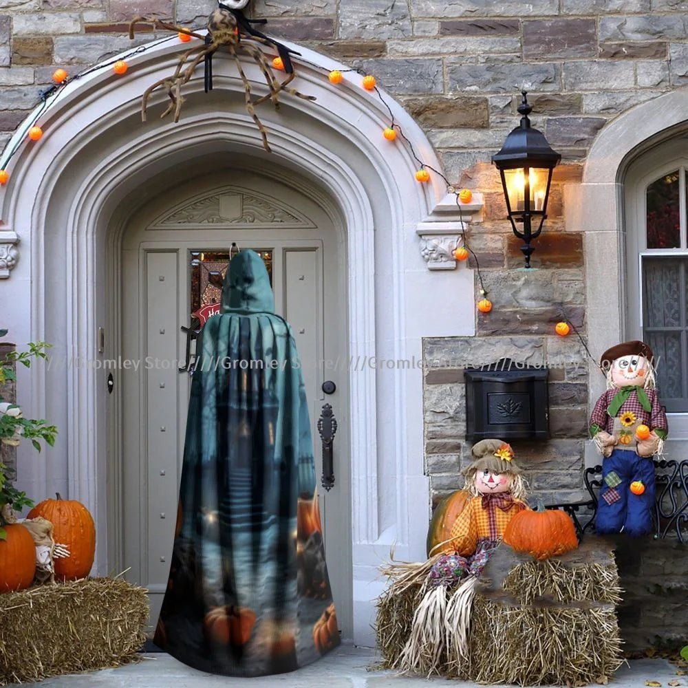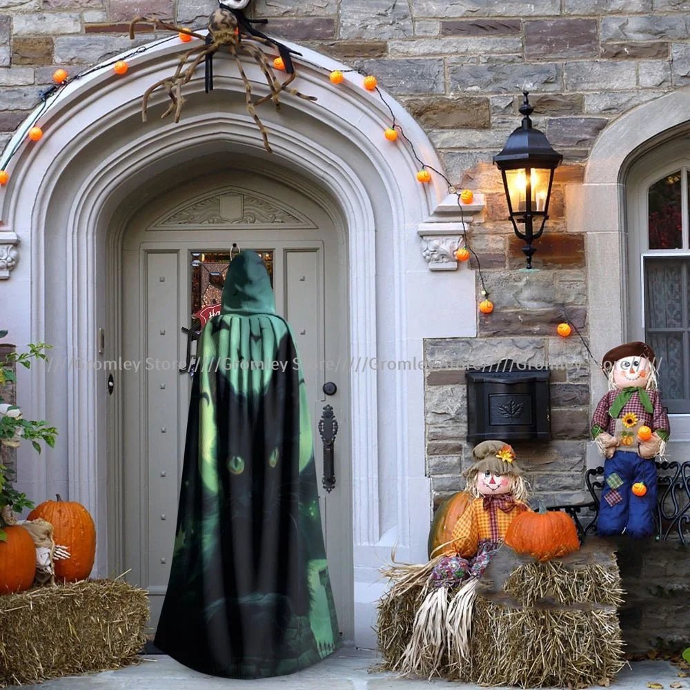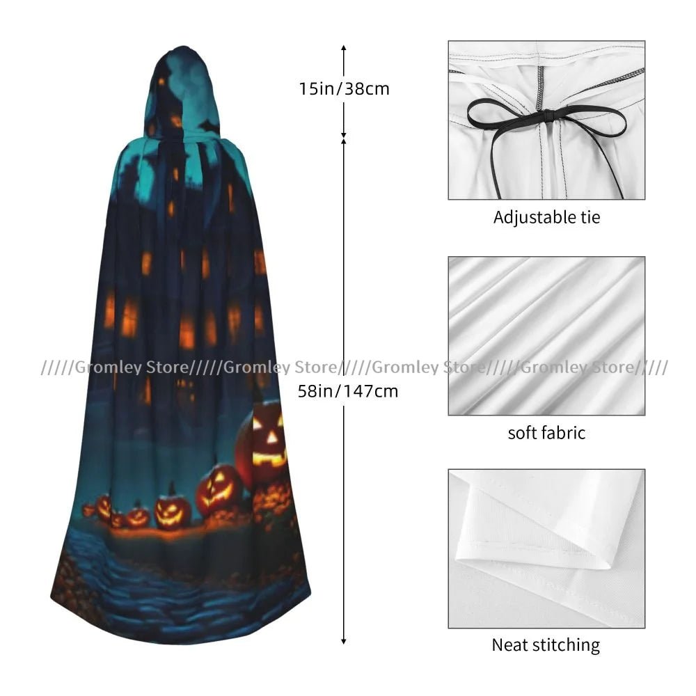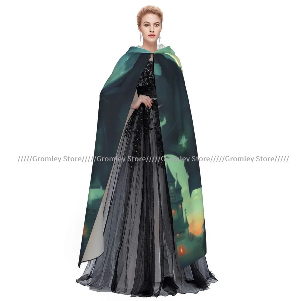 Unisex Halloween Cloak Funny Psychedelic Bats Cape Hooded Medieval Costume Witch Wicca Vampire