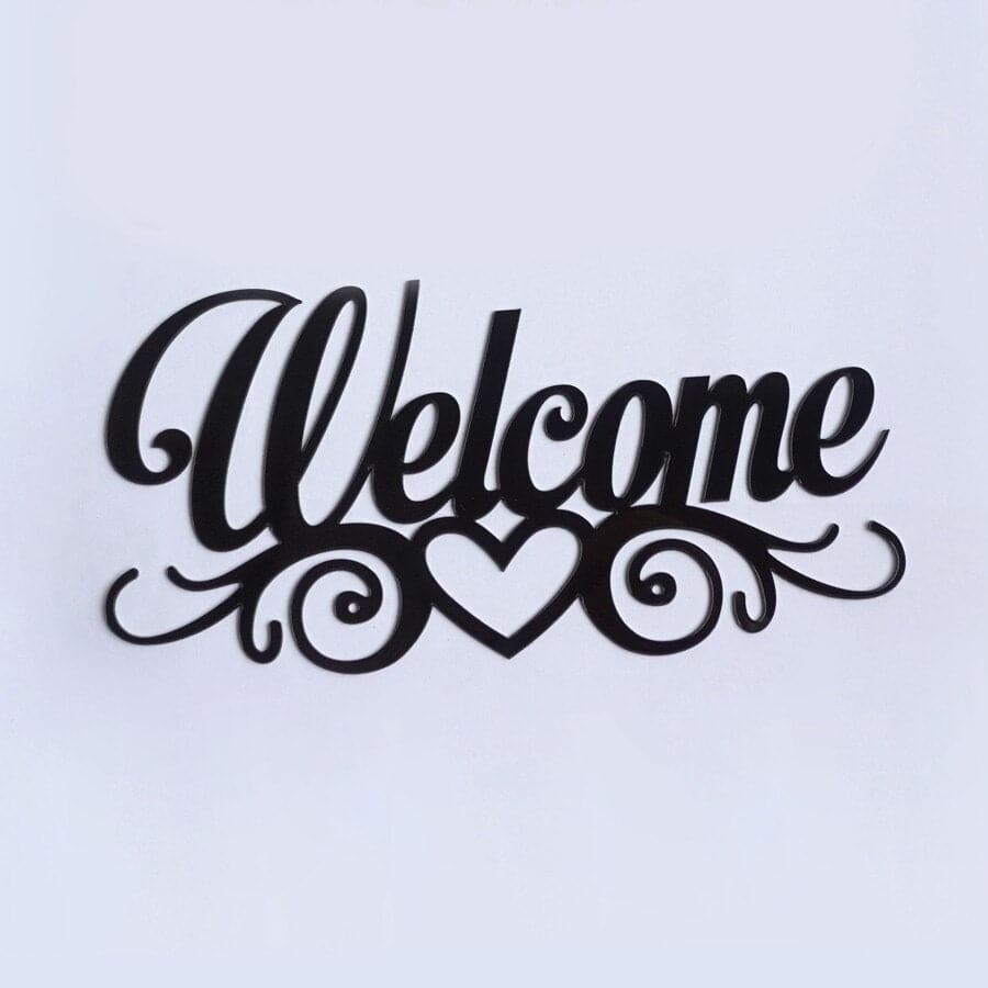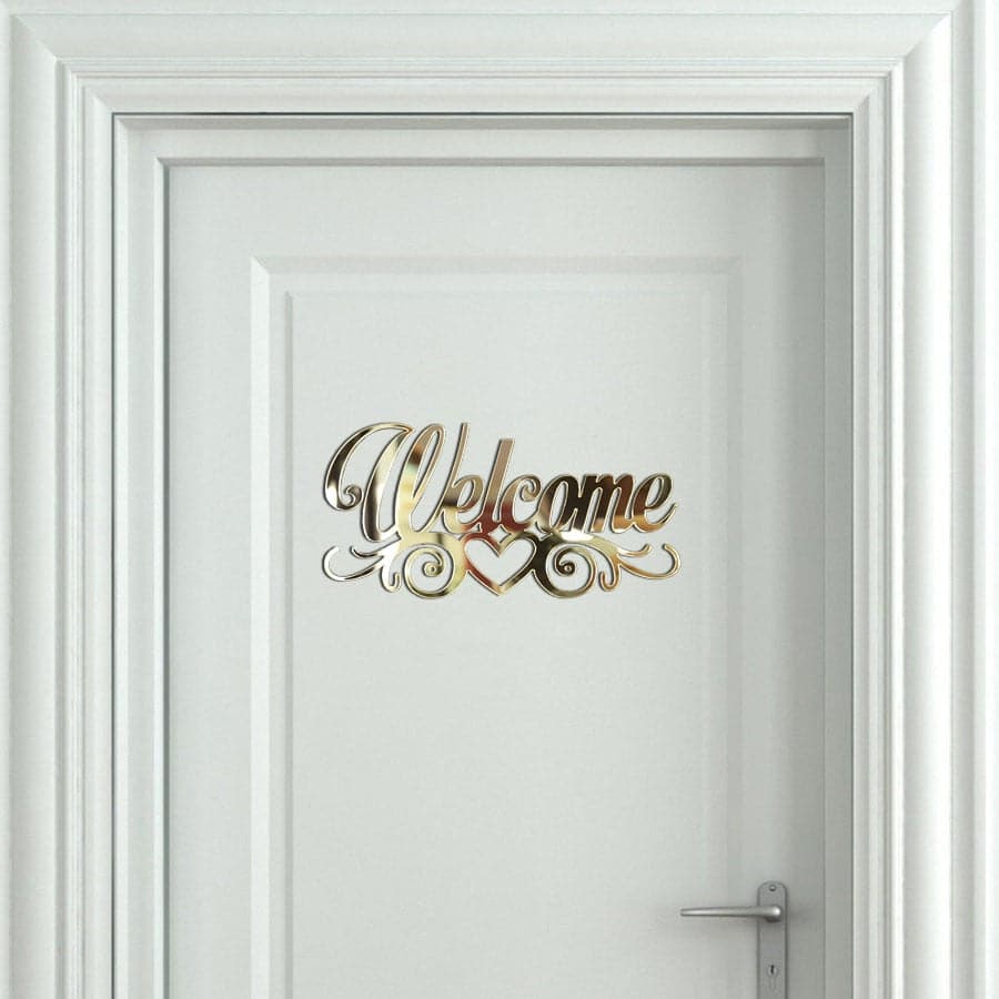 Welcome Sign with Heart Style Family Door Plates Acrylic Mirror Wall Sticker Design with Self-adhesive Glue Home Decor