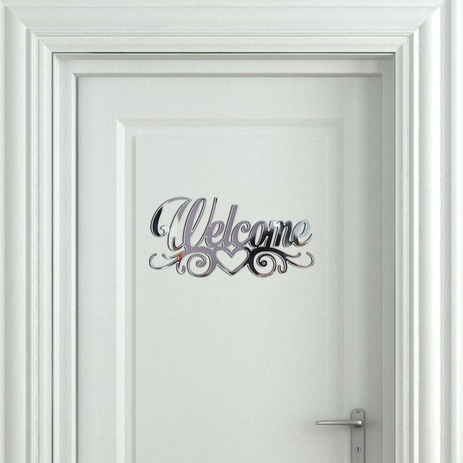 Welcome Sign Acrylic Mirror Wall Sticker: Family Door Plate